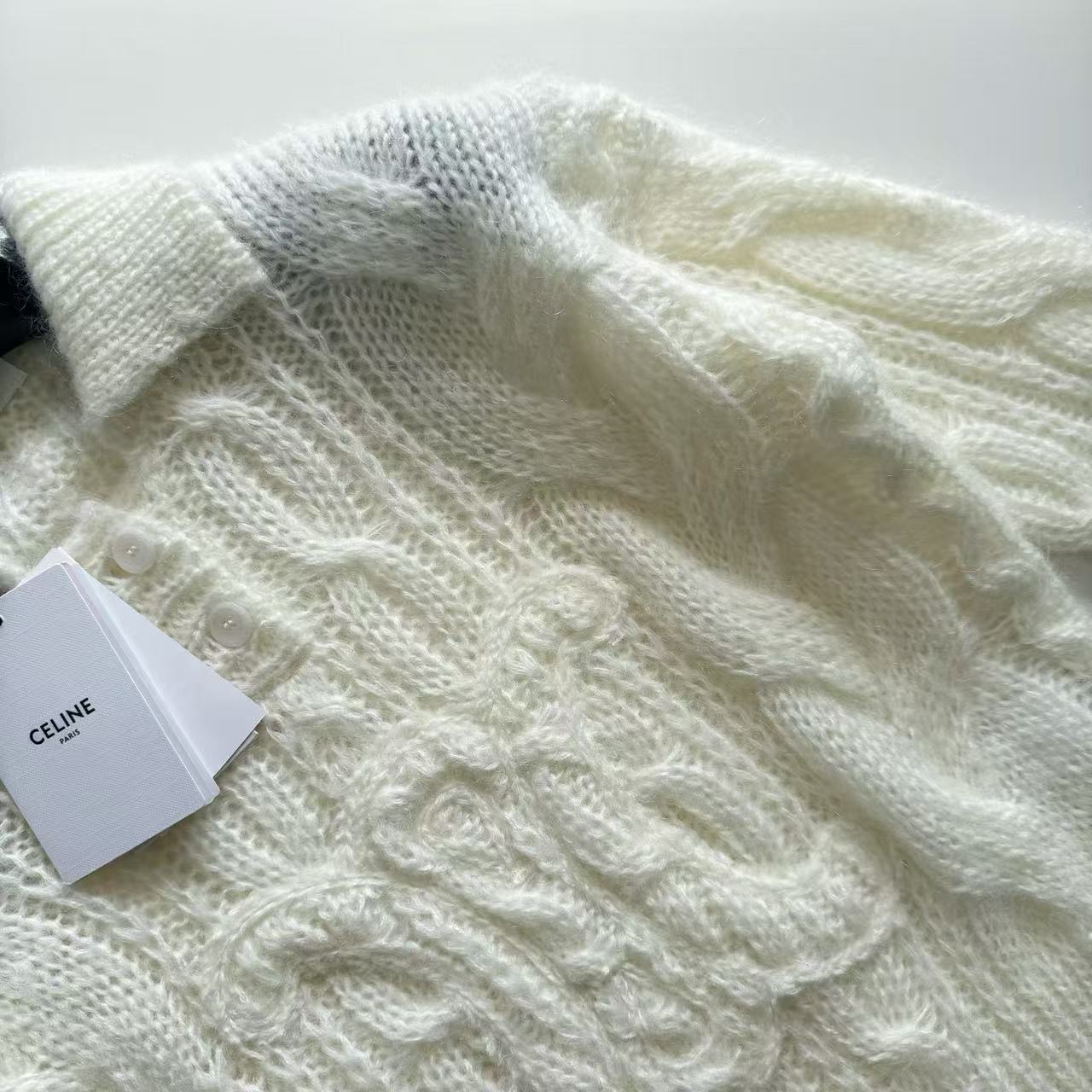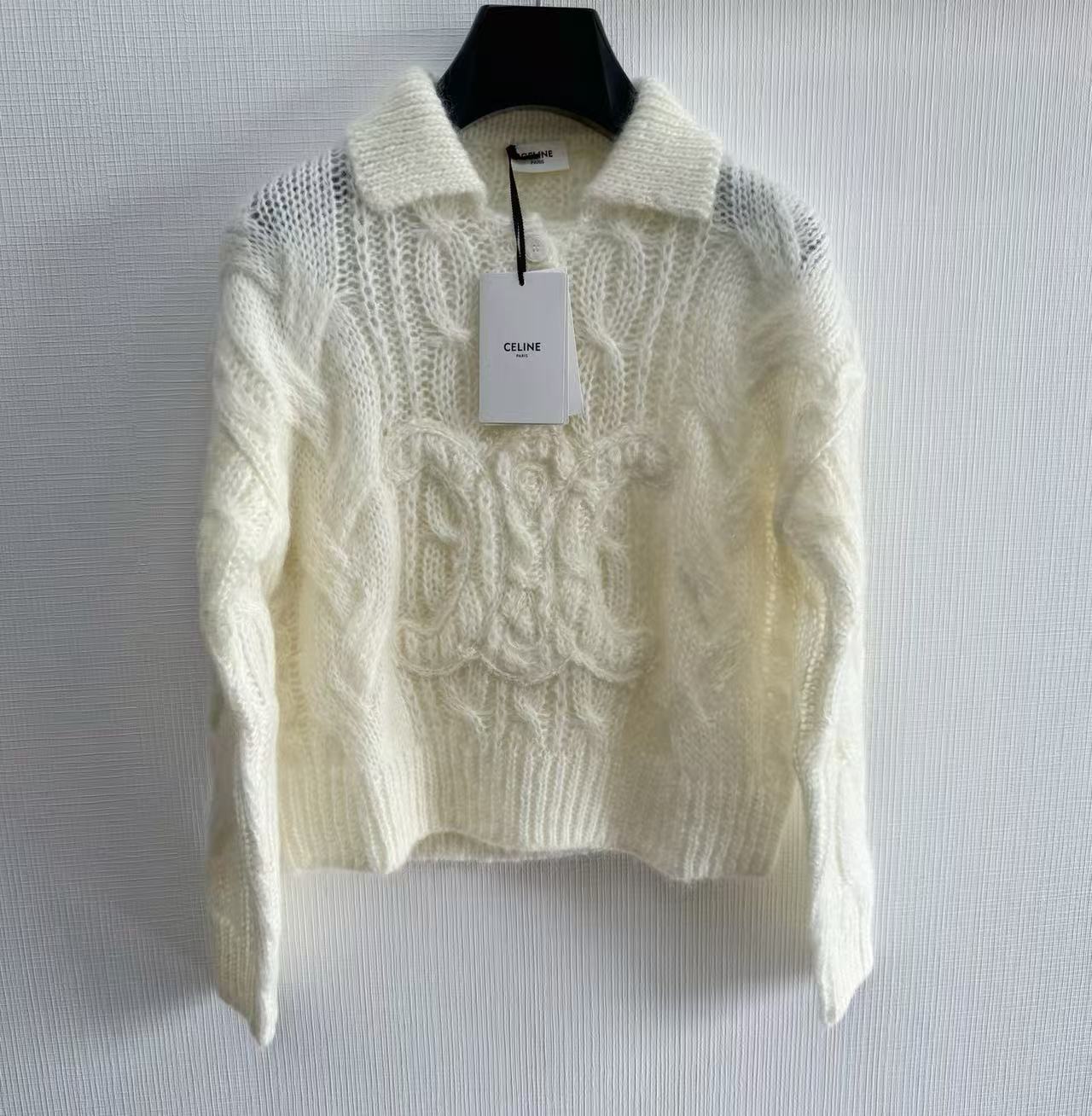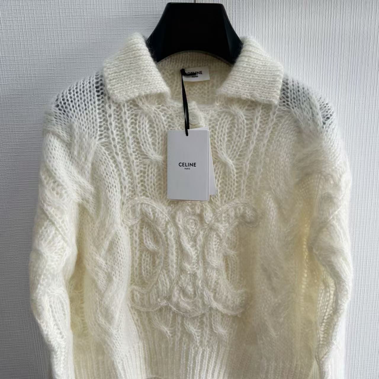 2025秋冬新品 Celine 凱旋門浮雕logo馬海毛翻領針織衫 精品 高仿