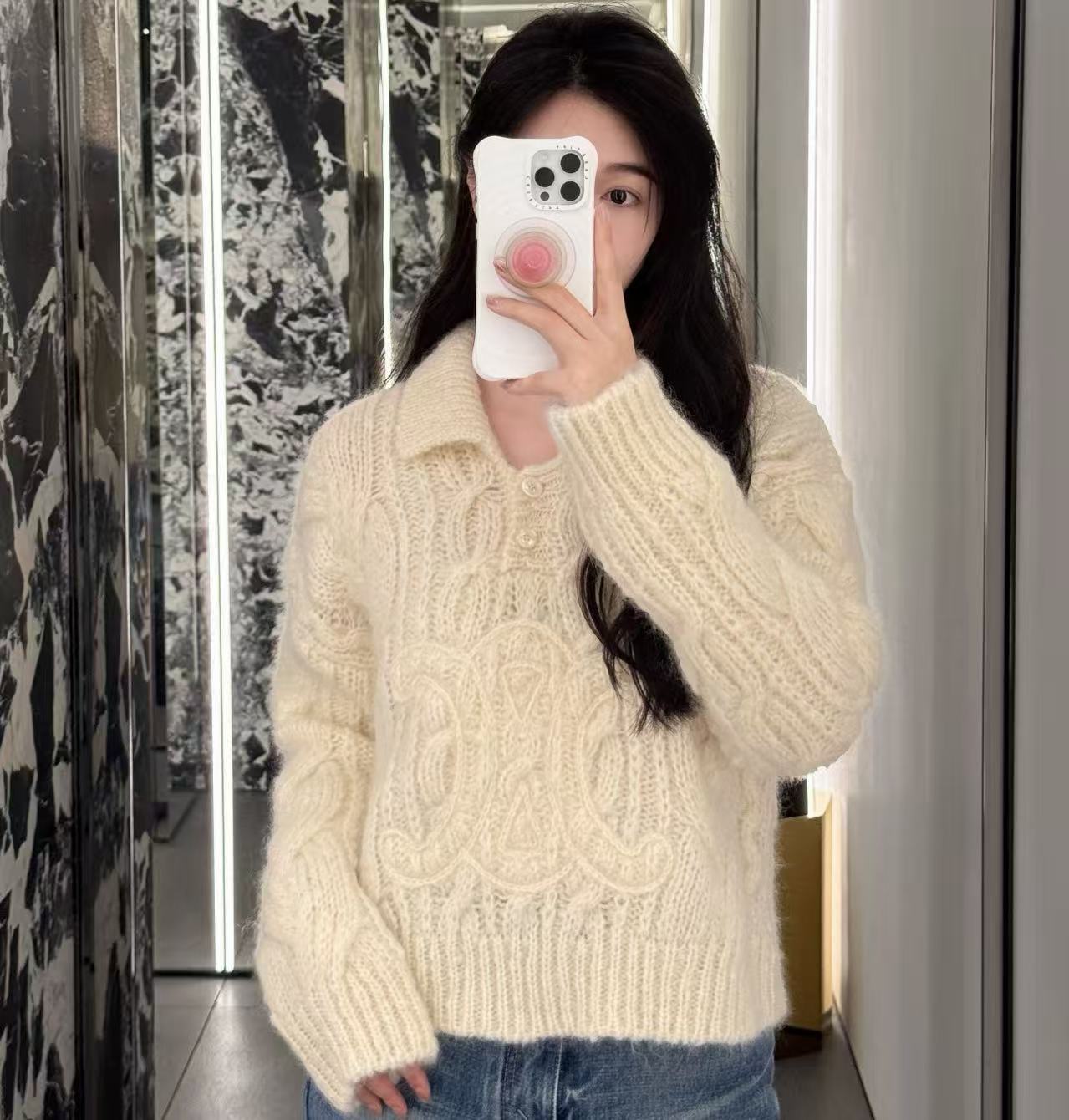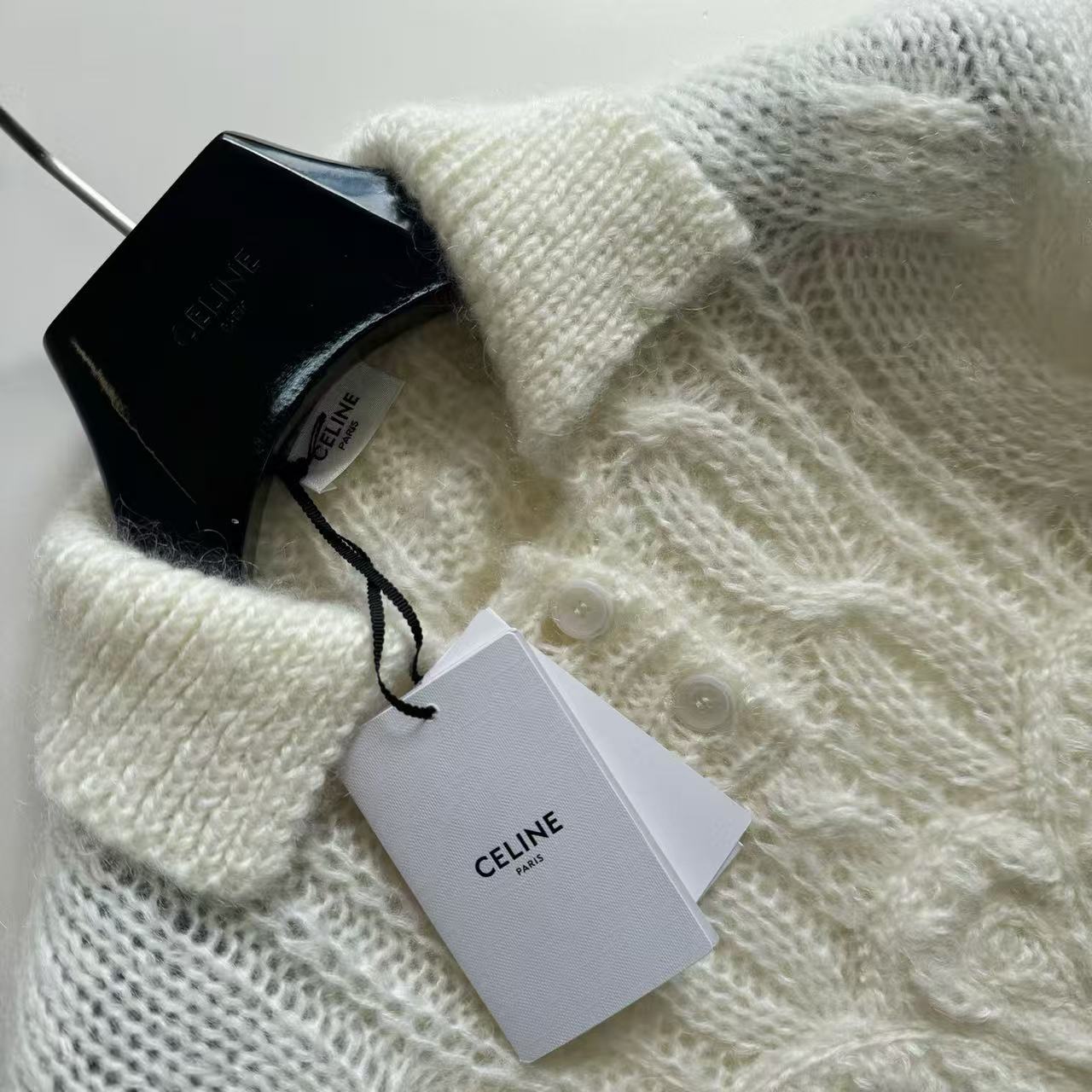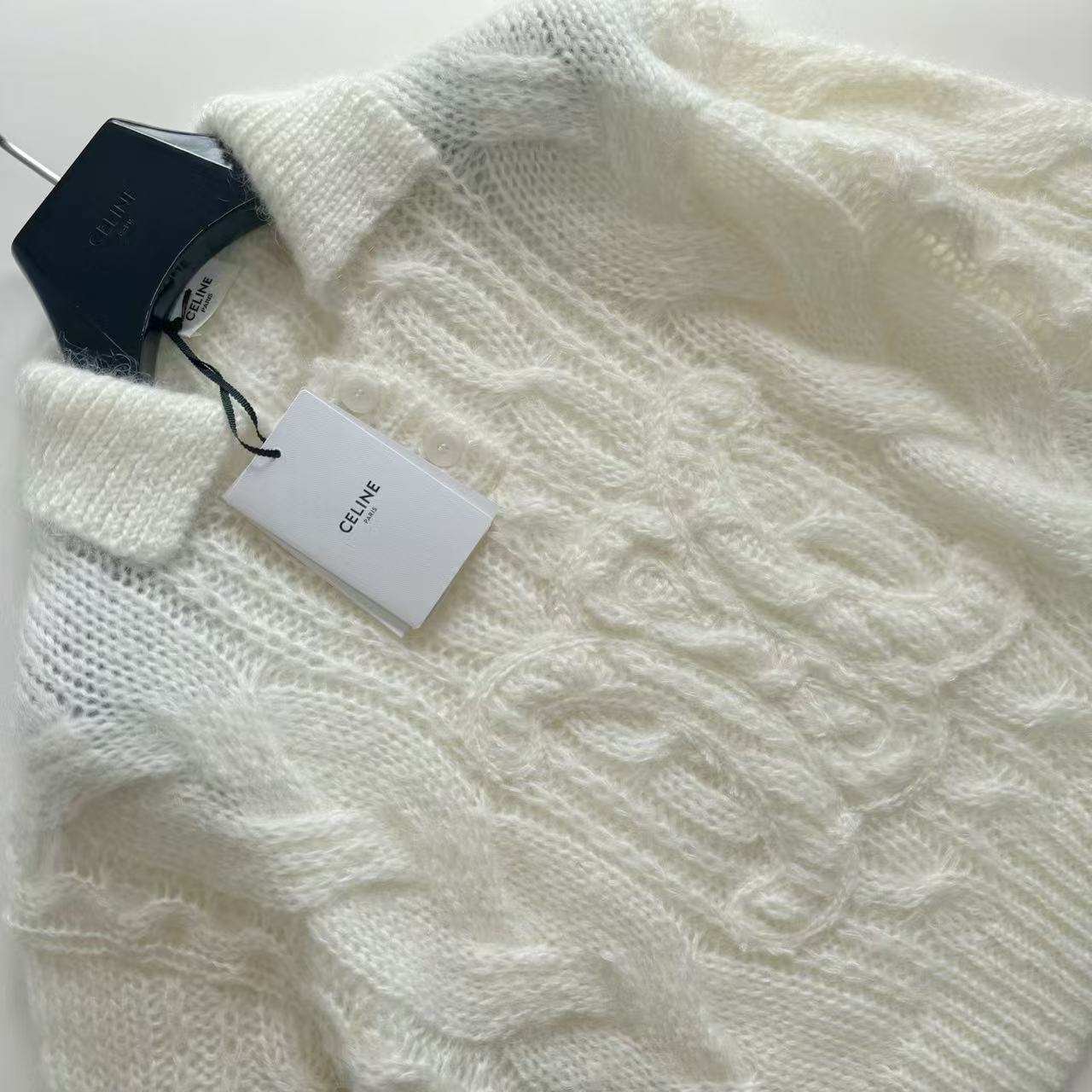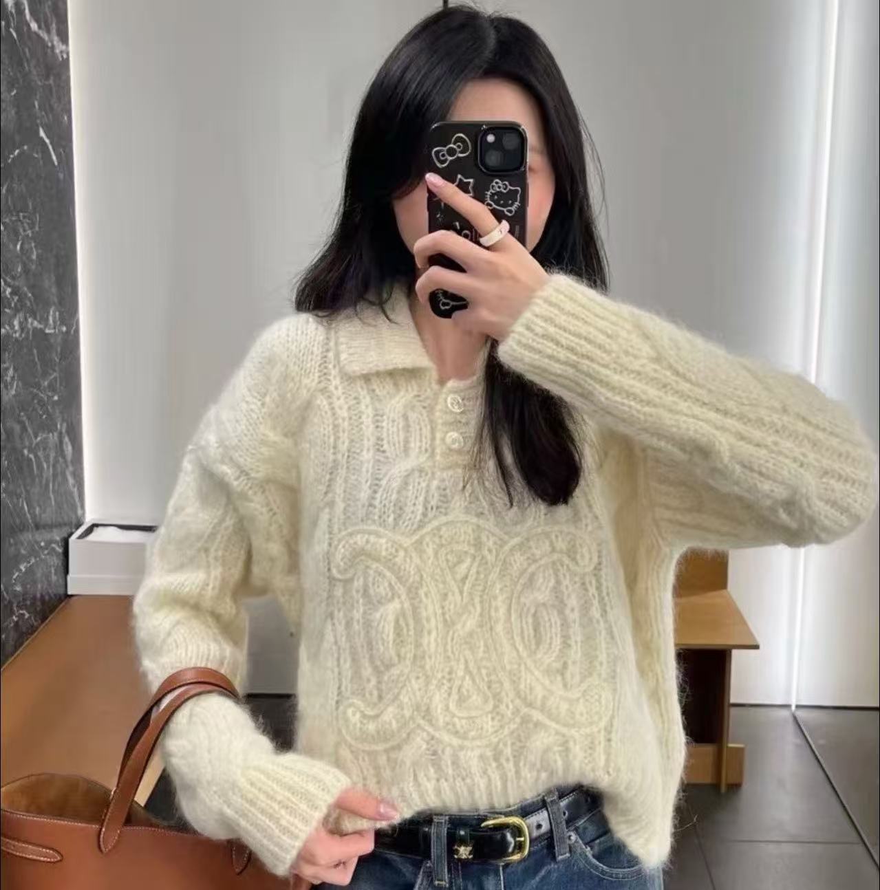 2025秋冬新品 Celine 凱旋門浮雕logo馬海毛翻領針織衫 精品 高仿