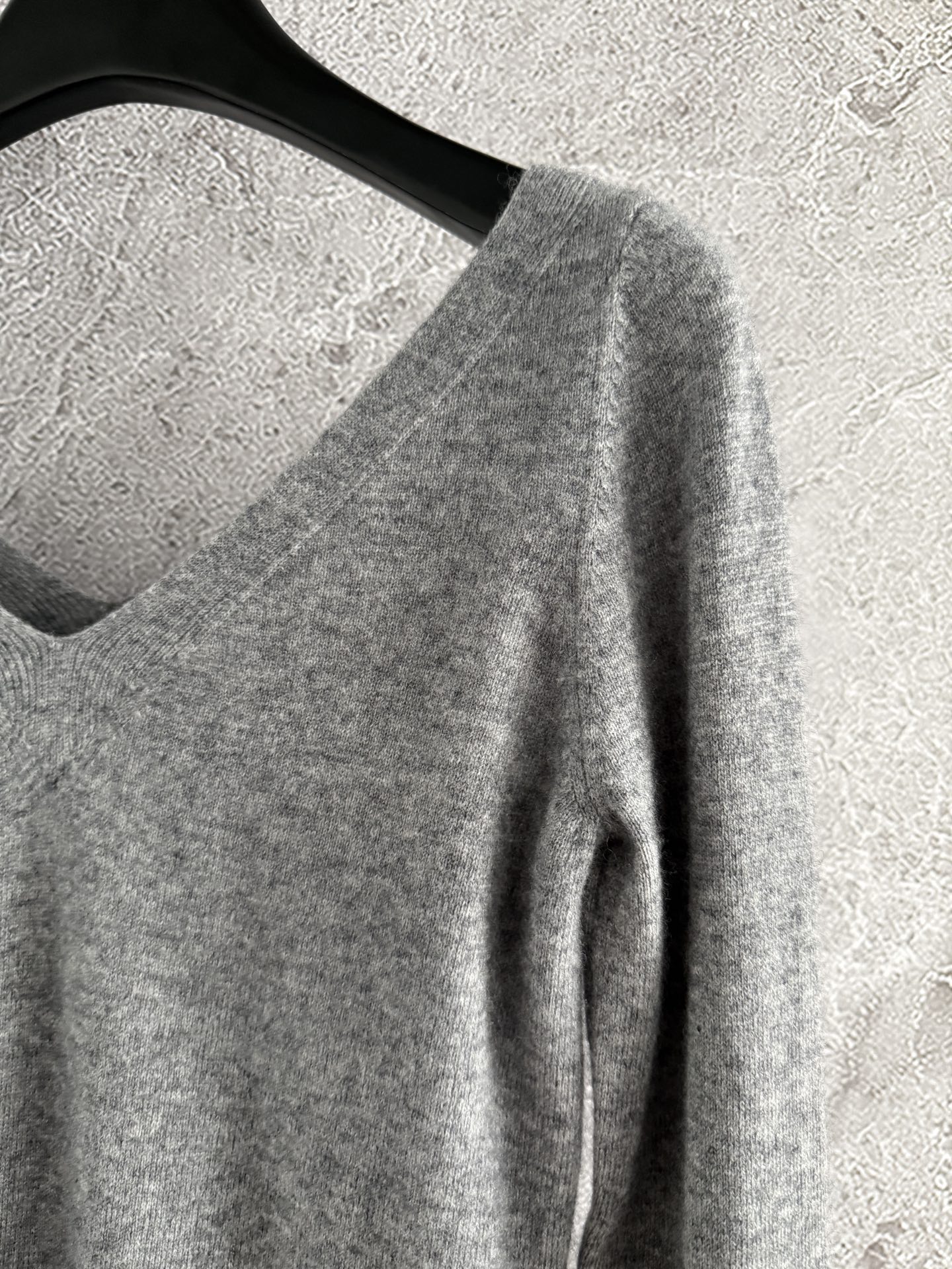 這件灰色領針織衫真的完全屬於「人手必備」的那種單品!簡單卻充滿質感的設計,領口線條巧妙修飾鎖骨,穿起來自帶氣質,完全不挑年齡、不挑風格。