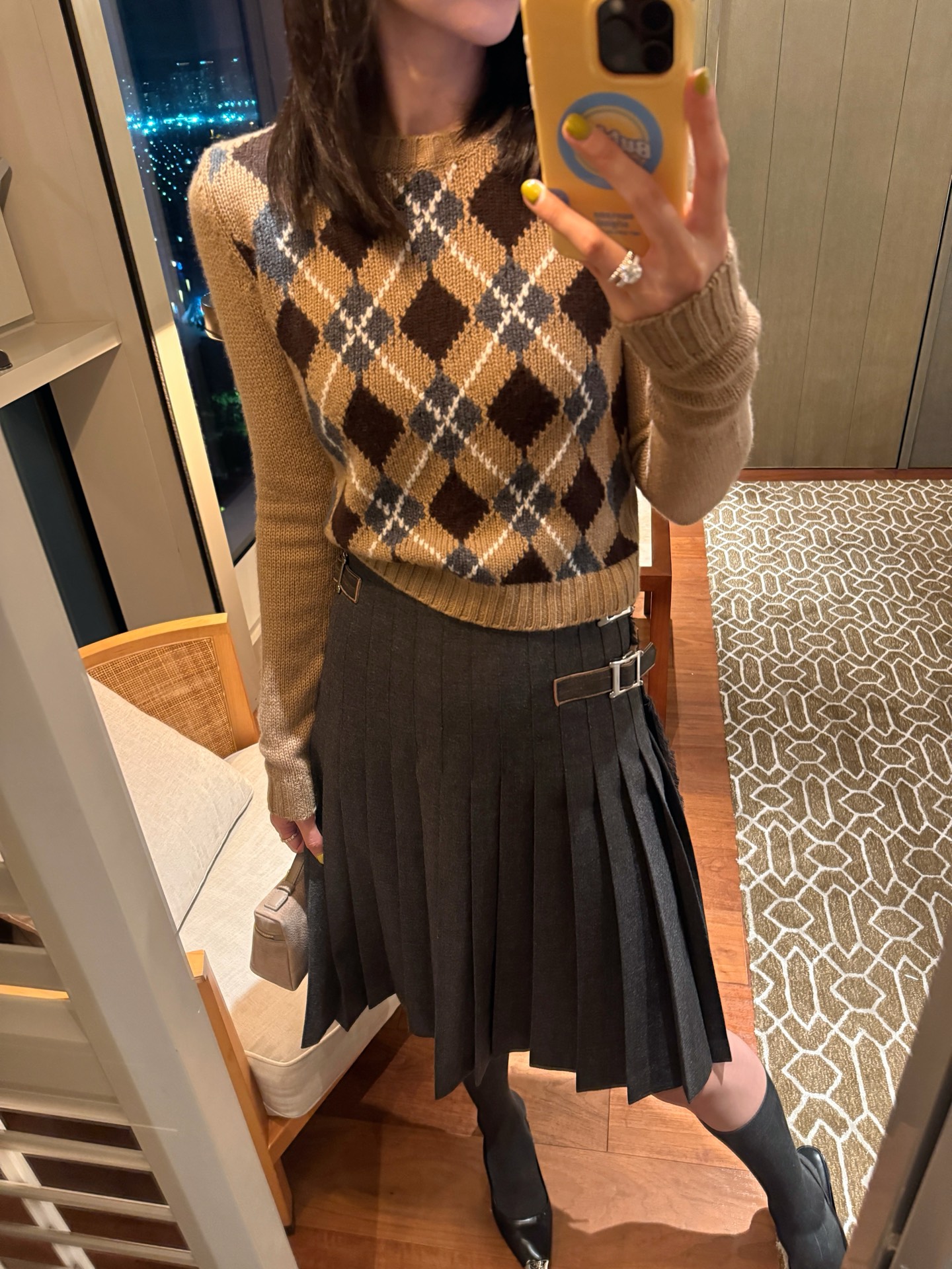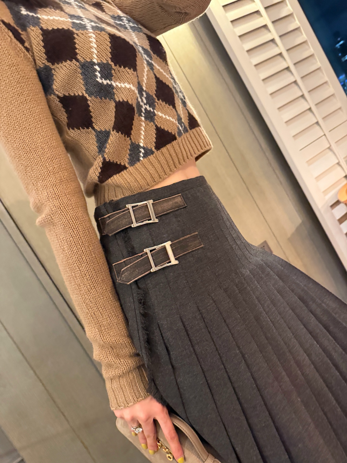 ✔︎ 上半身搭配針織衫或修身高領,展現知性溫柔感。