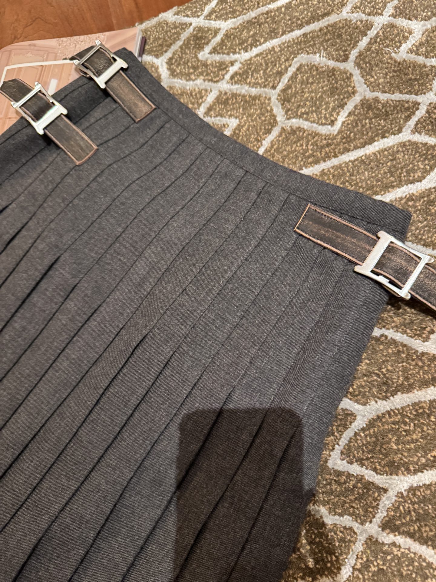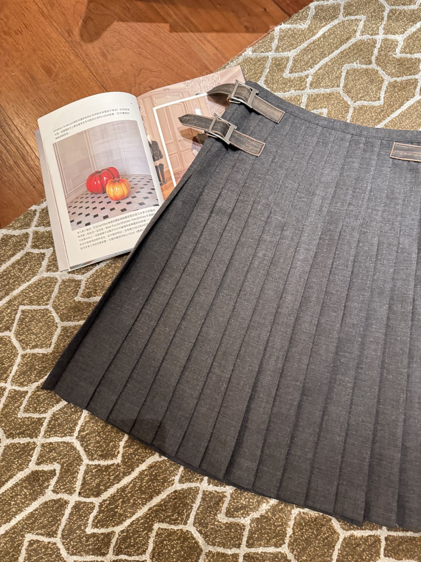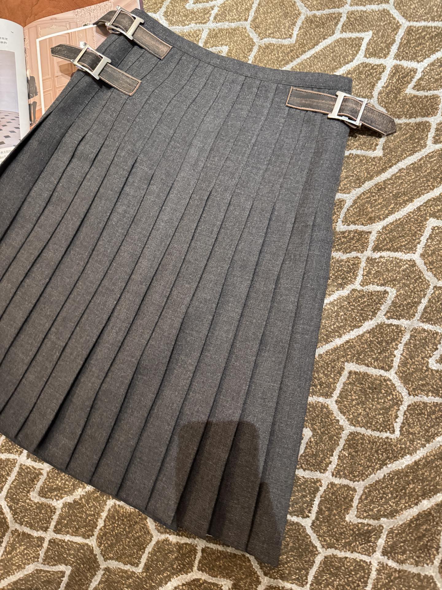 整體版型微A字、層次自然,隨步伐輕輕搖曳時,百褶線條超有節奏感,細節質感拉滿。腰部皮扣設計採用定製的小羊皮做舊處理,低調中又藏著高級氣息,完美平衡了復古與現代。