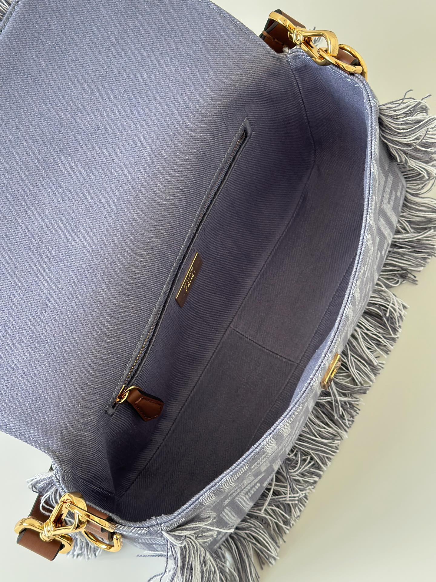 2025秋冬新品 Fendi 流蘇牛仔Baguette法棍包 精品 1:1