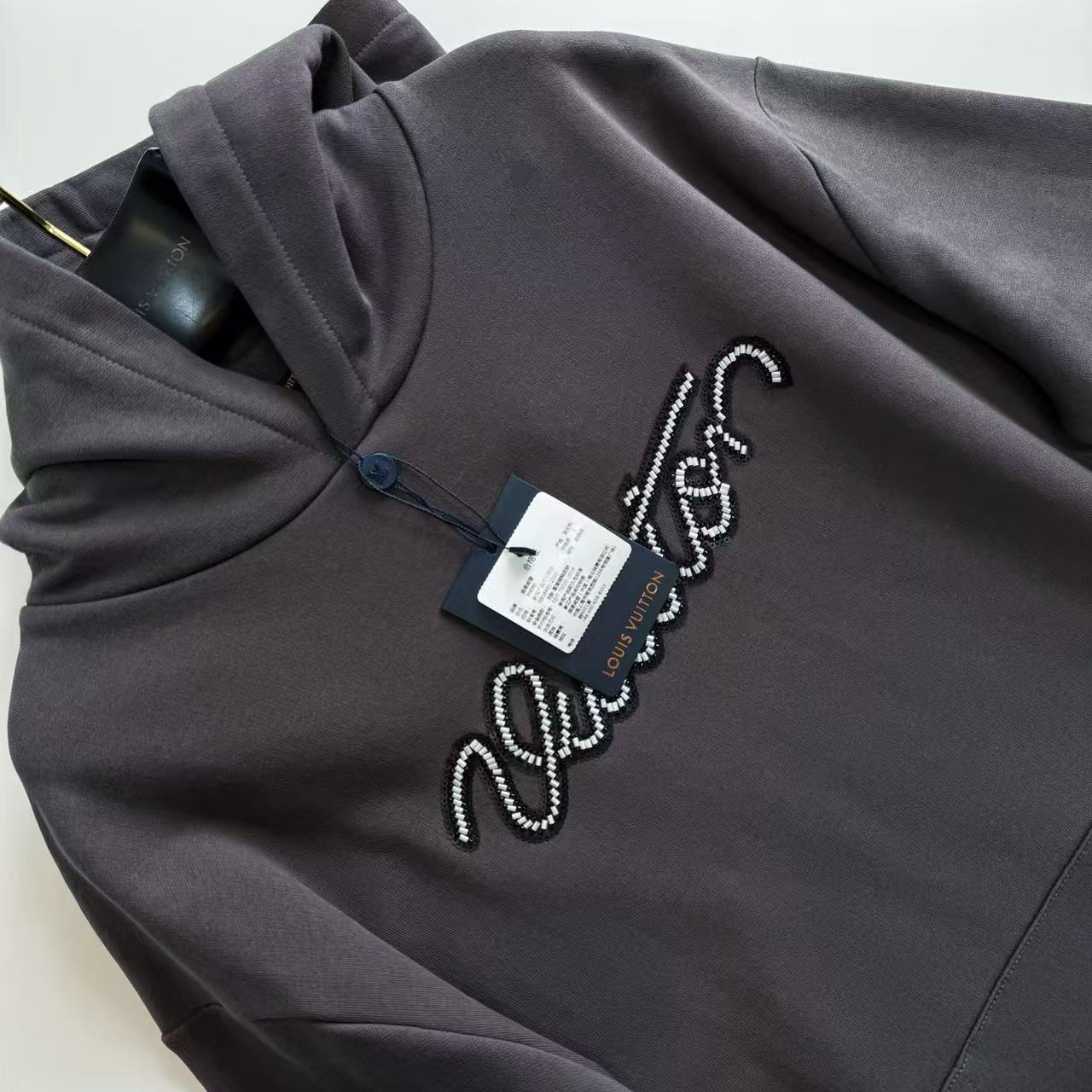 2025秋冬新品 Louis Vuitton 串珠繡手寫字母連帽衛衣 精品 高仿