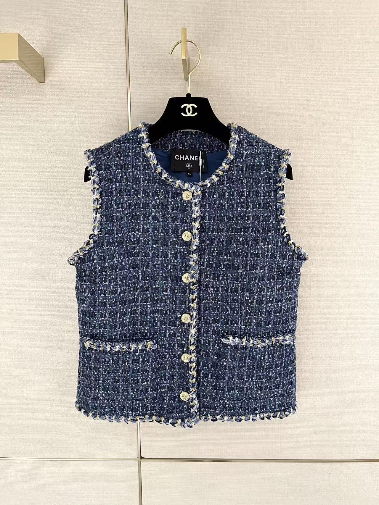 時髦百搭:這件馬甲的剪裁俐落有型,充滿了經典小香風的優雅。無論是內搭襯衫、高領毛衣,或是搭配西裝褲、牛仔褲,都能讓你瞬間提升造型的高級感和時尚度。