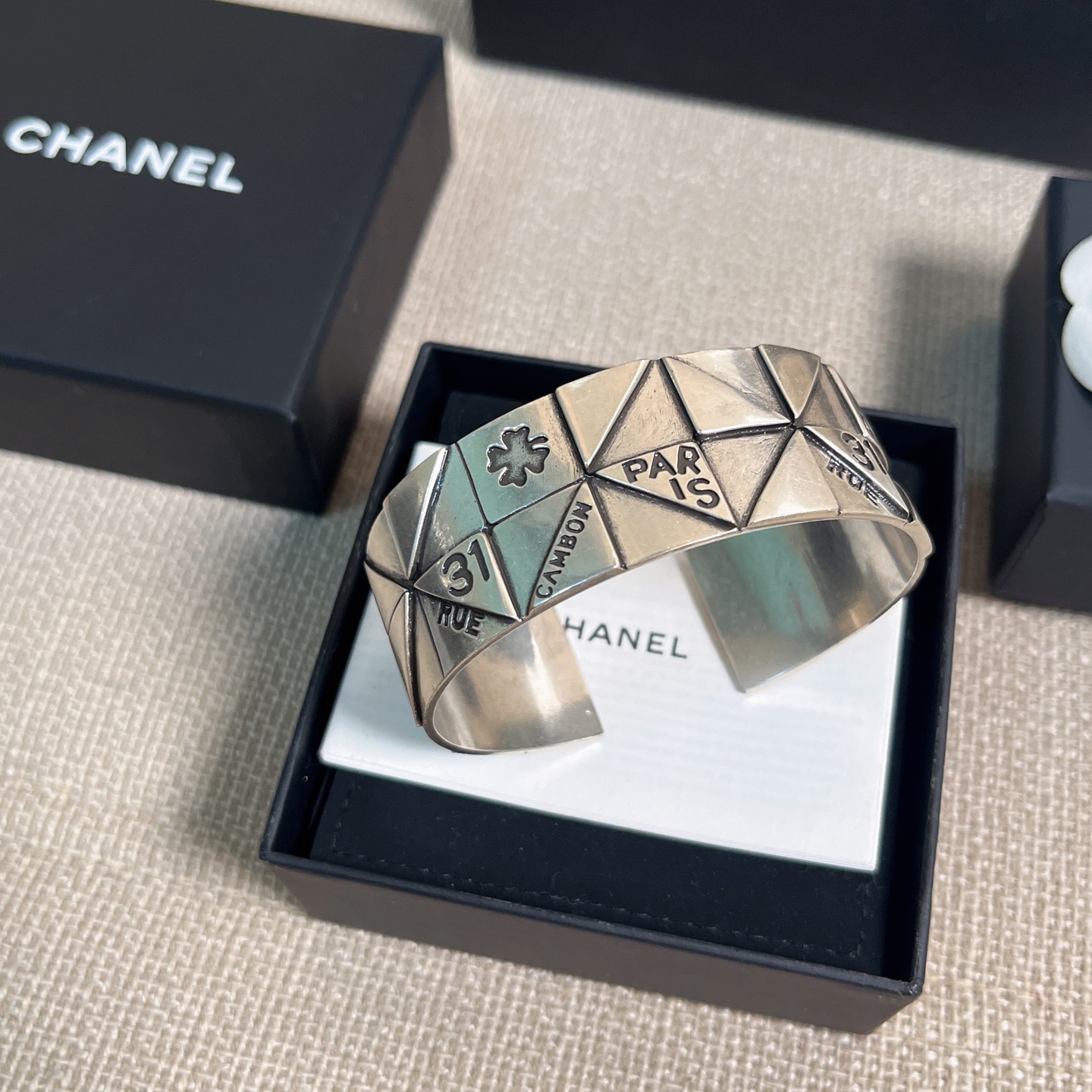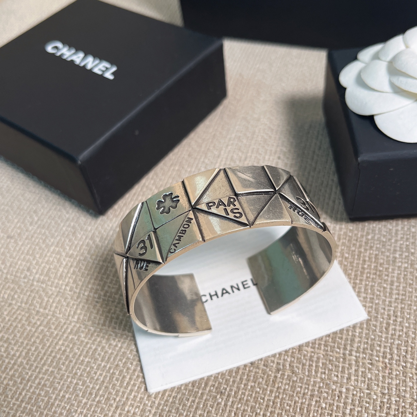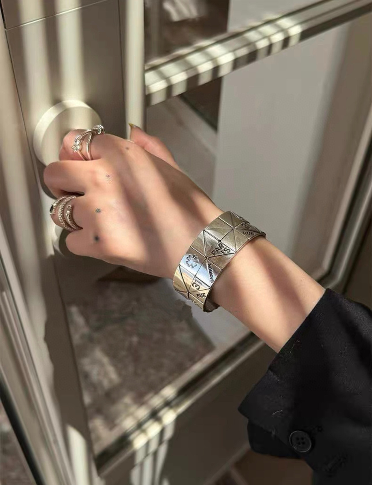 2025秋冬新品 Chanel 做舊方格開口寬手鐲 奢侈品 精品