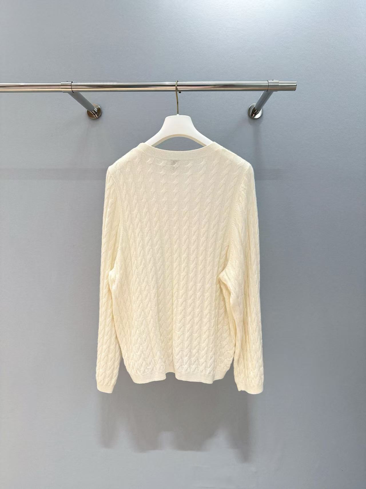 版型經典且比例拿捏精準,無論單穿或內搭都非常實用。圓領設計襯托頸部線條,略微落肩的輪廓增添隨性氛圍,既體面又有鬆弛感。這種風格的復刻使得這件毛衣不僅僅是一個個體,而是高端時尚的代名詞。