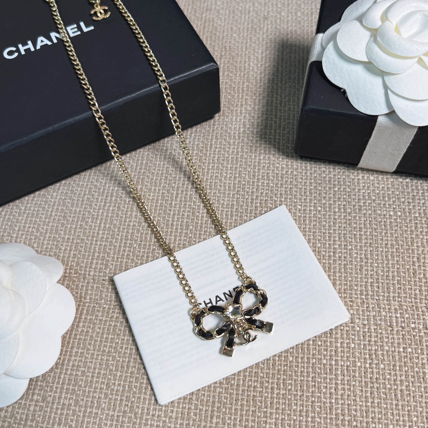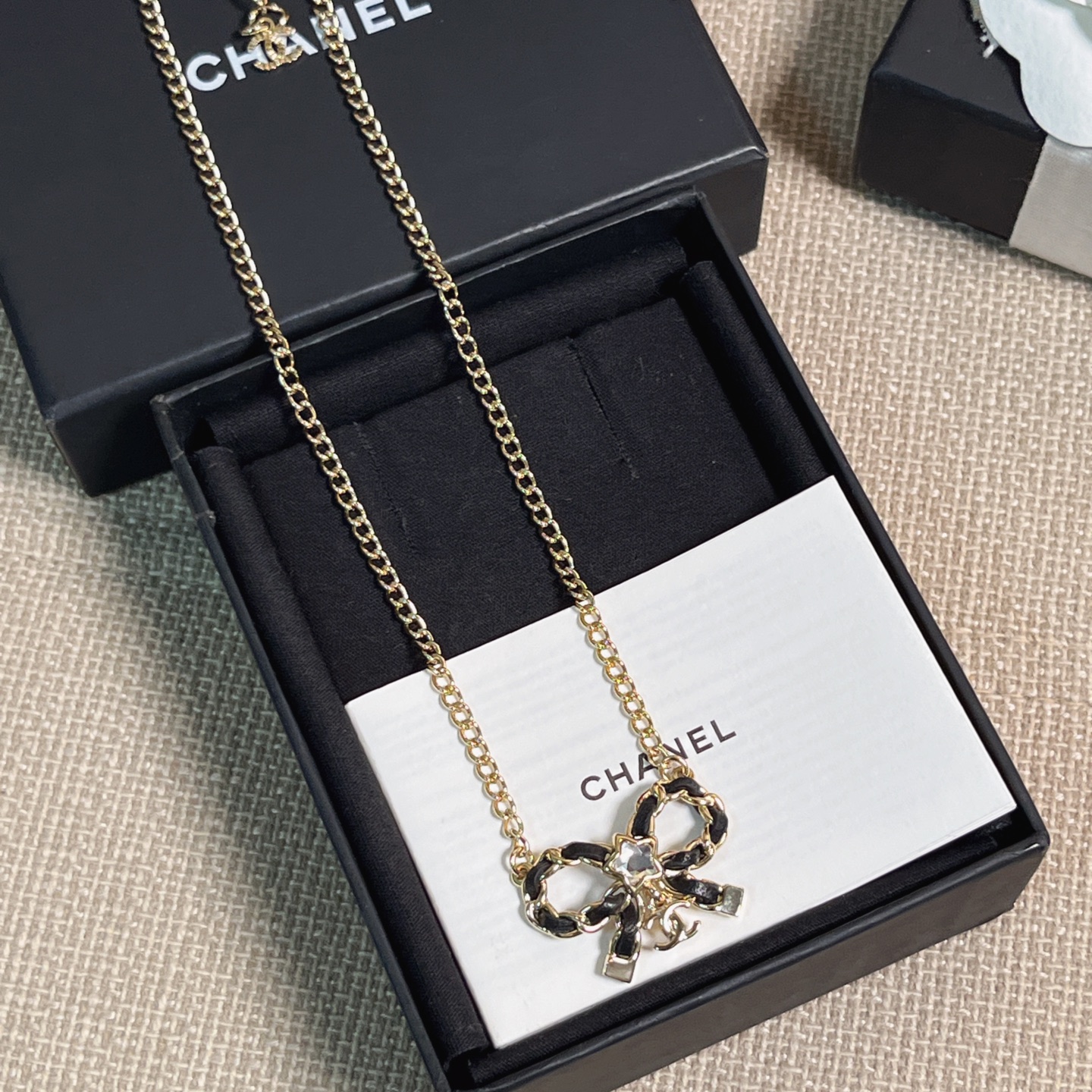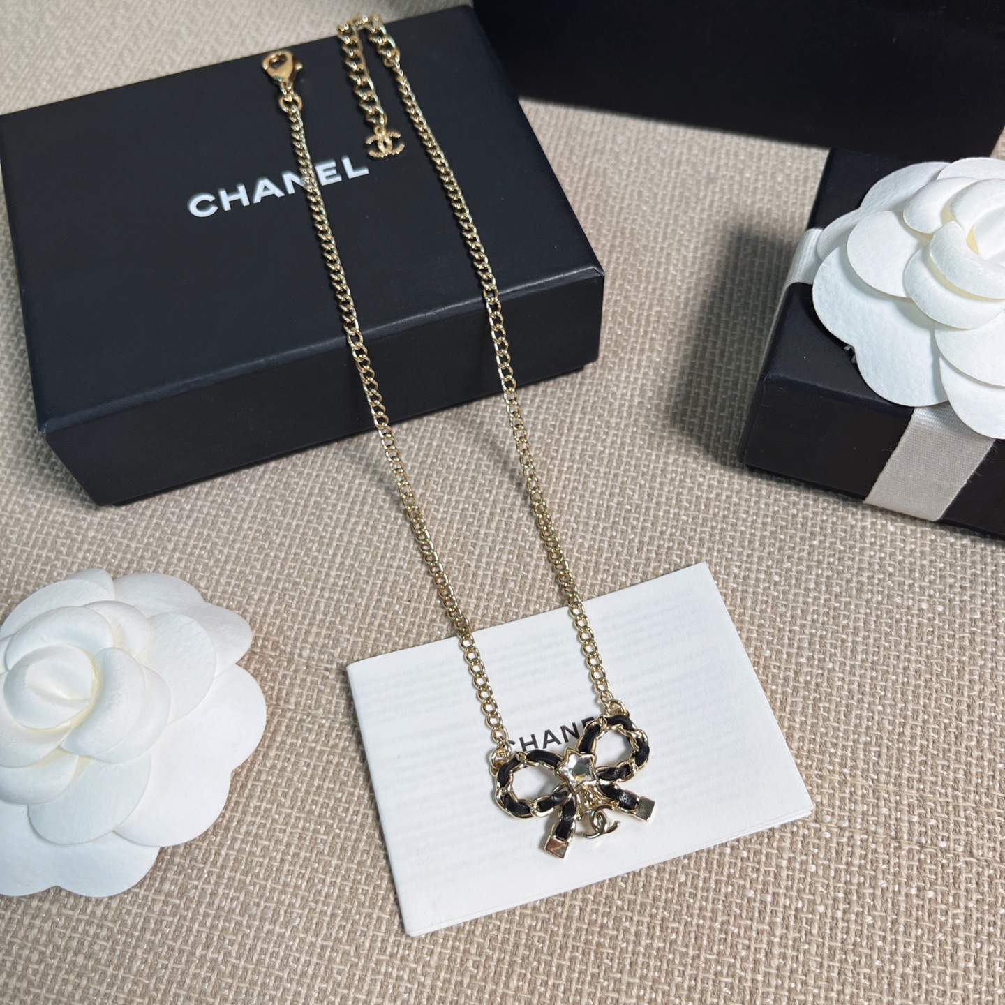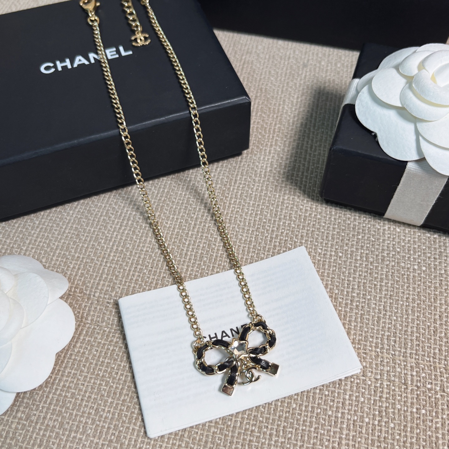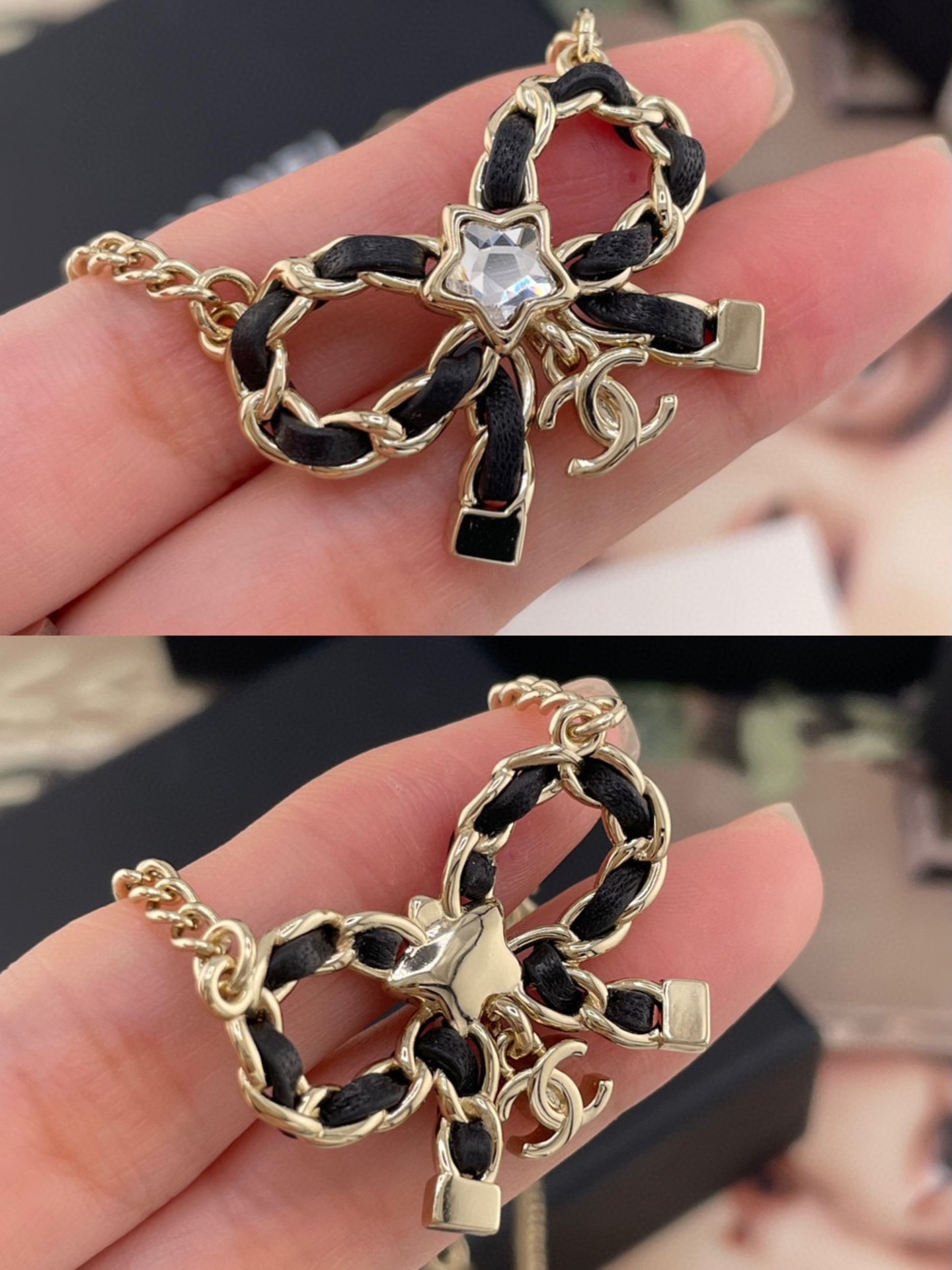 2025秋冬新品 Chanel 星鑽穿皮蝴蝶結項鍊 (奢侈品, 高仿)