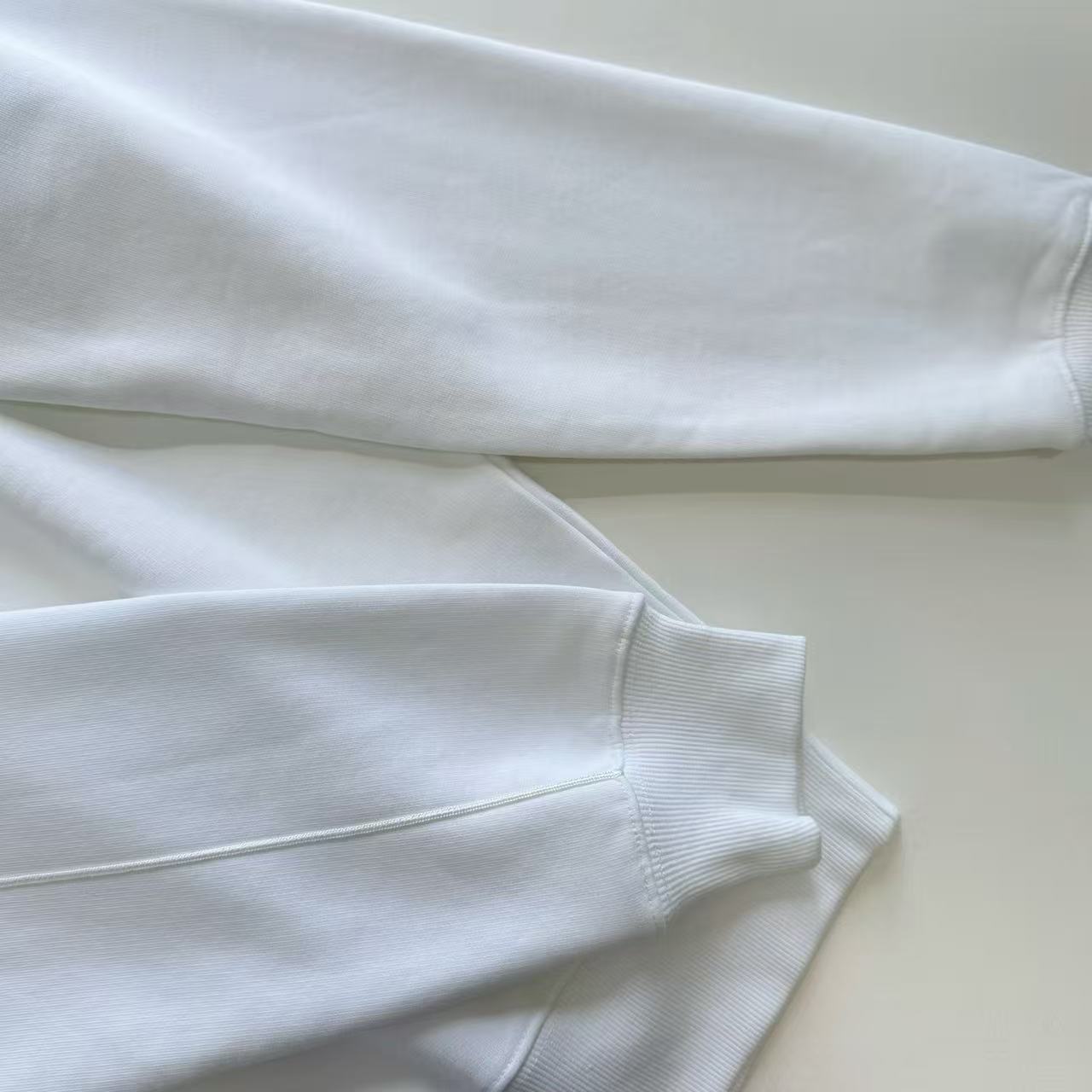 380g 重磅純棉起絨材料,厚度完美,台灣秋冬單穿剛好、冷氣房也不怕冷,摸起來軟絨絨超療癒,版型是經典標準圓領廓形,肩線俐落、下擺微收,不挑身材,男生女生穿都超級好看(我已經幫全家都備好貨了啦)!