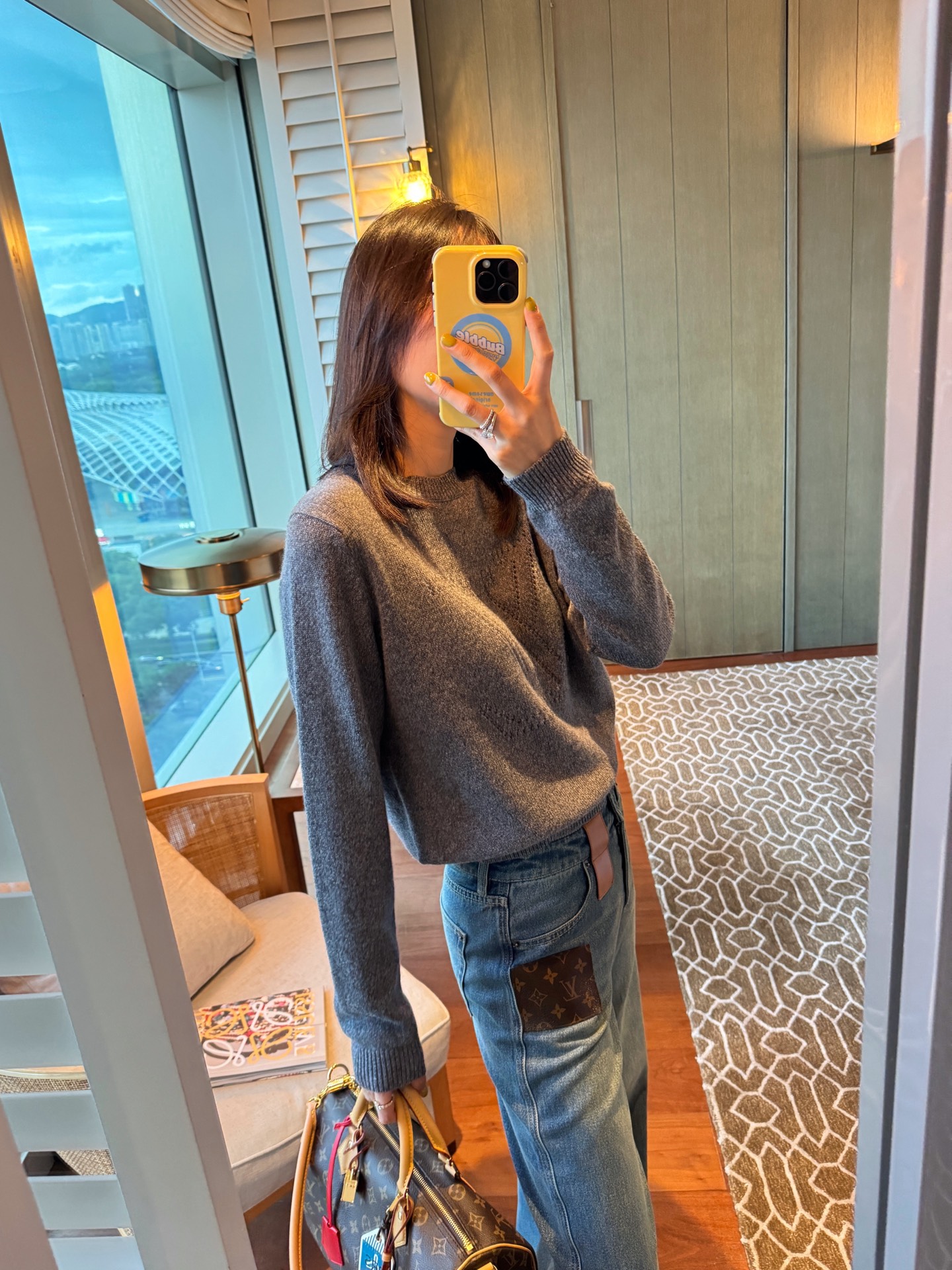 灰色的色調乾淨俐落,低調卻不單調,穿起來整體氛圍非常溫柔又有格調。那種極簡中帶出質感的氣質,是很多奢侈品品牌最擅長的,也是這件毛衣最迷人的地方。