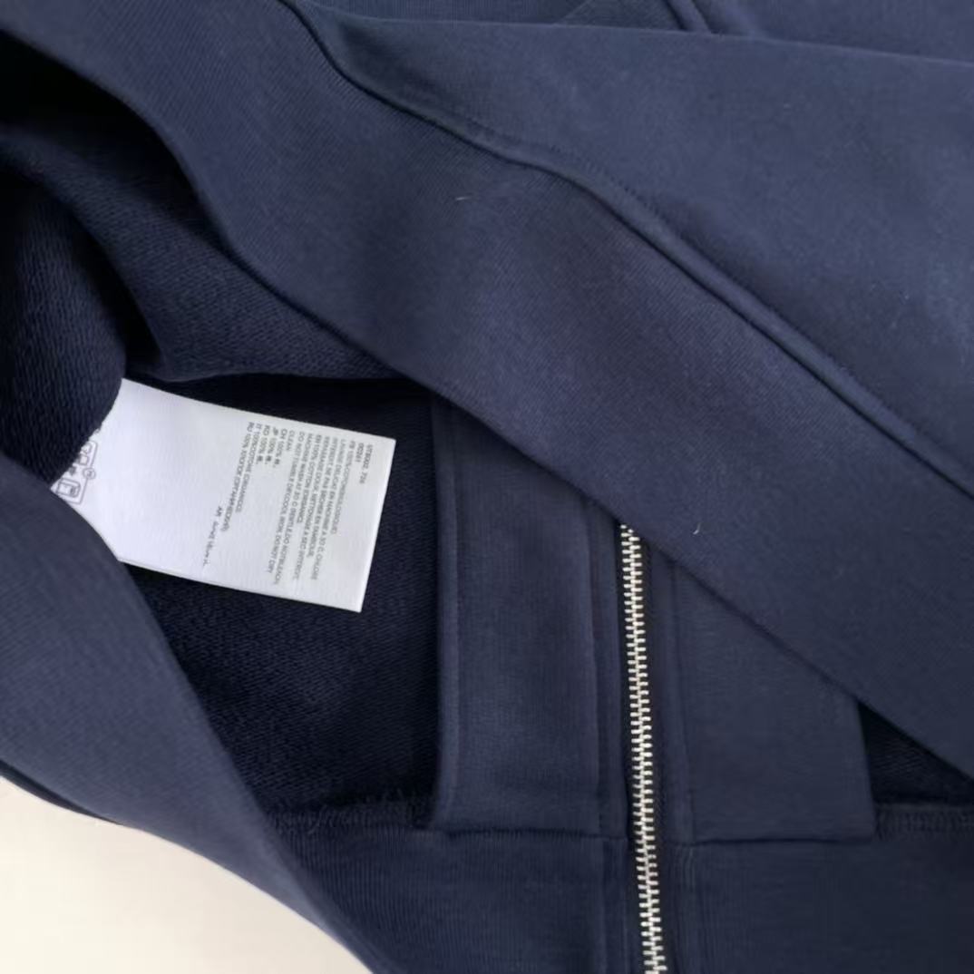 精緻五金:鎳色的金屬拉鍊、金屬抽繩夾和字母雕刻的扣眼,不僅為衛衣增添了一份設計感,也完美展現了品牌的工匠精神。