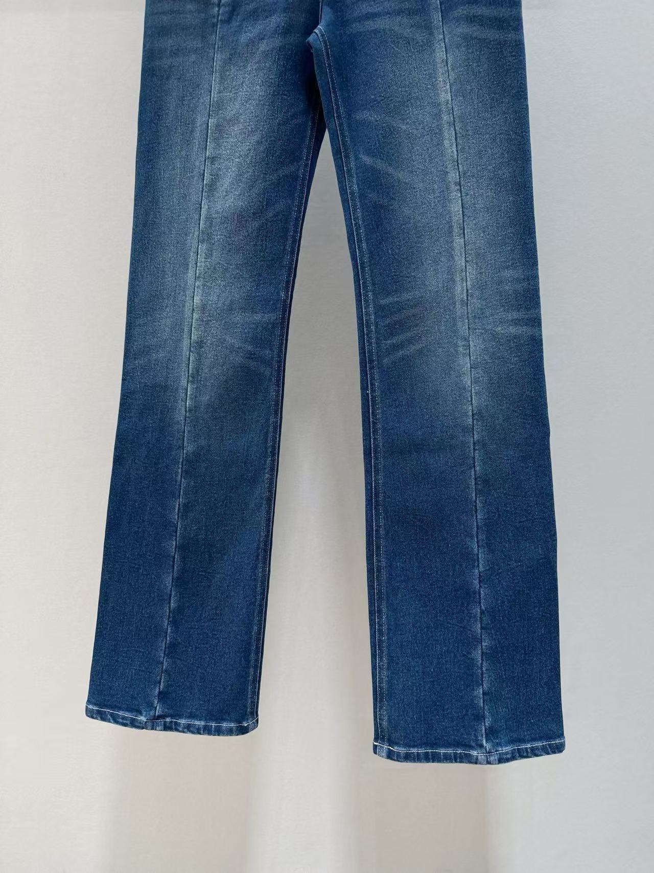 這款牛仔褲一眼就能感受到滿滿的設計感與高級氣場。搭配經典藍色水洗丹寧材質打造,復古色澤自然又耐看。版型選用高腰直筒剪裁,完美修飾腿型比例,顯瘦又拉長線條,上身效果俐落乾淨。