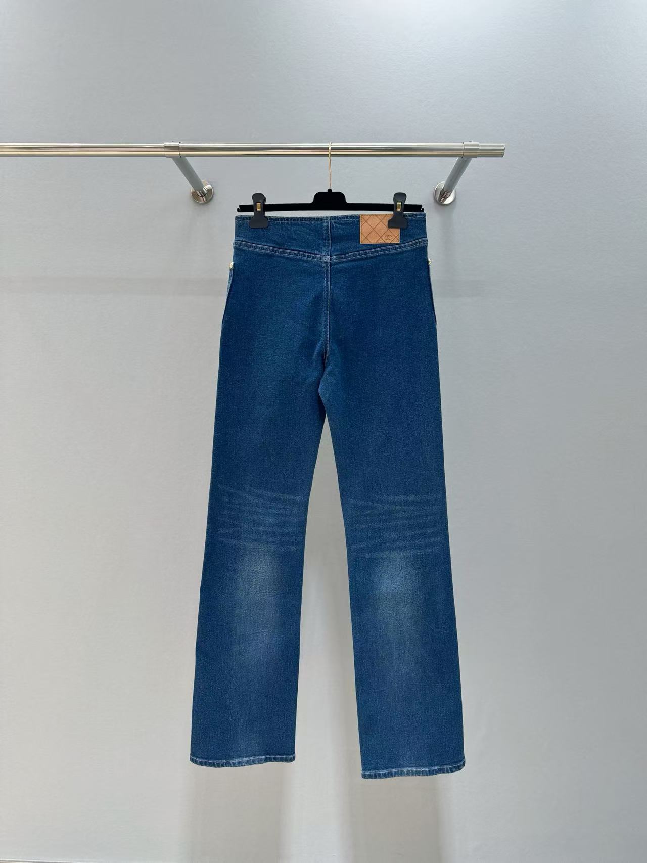 這款解構風高腰牛仔褲,靈感仿佛源自兩條牛仔褲的拼接重組,腰間特別設計了雙口袋造型,外露縫線一路延伸至褲腳,細節滿分。搭配復古金屬釦與立體剪裁,低調中透出奢華質感。腰部內襯印有高品質品牌 logo 印花,辨識度高且極具收藏價值。