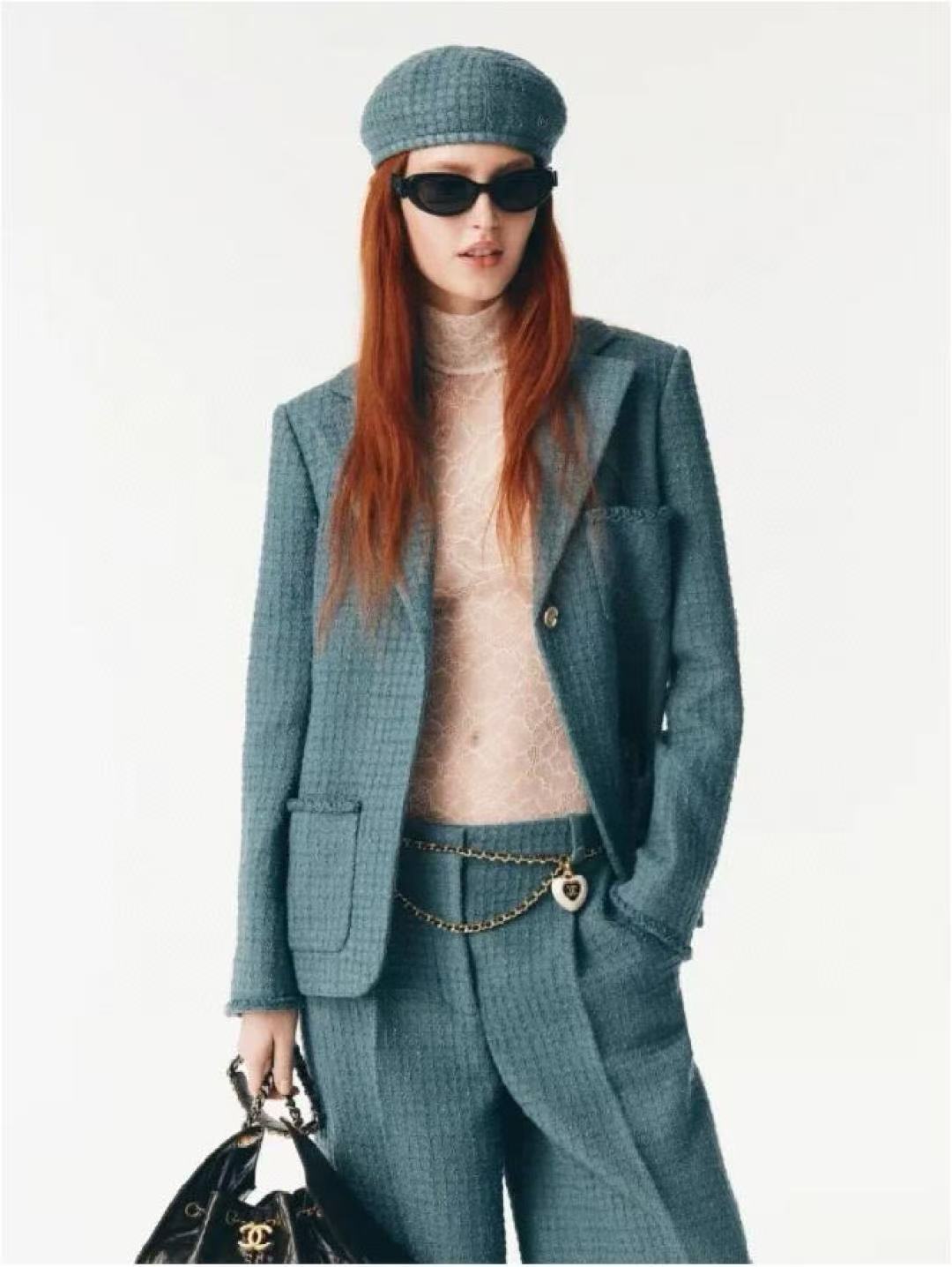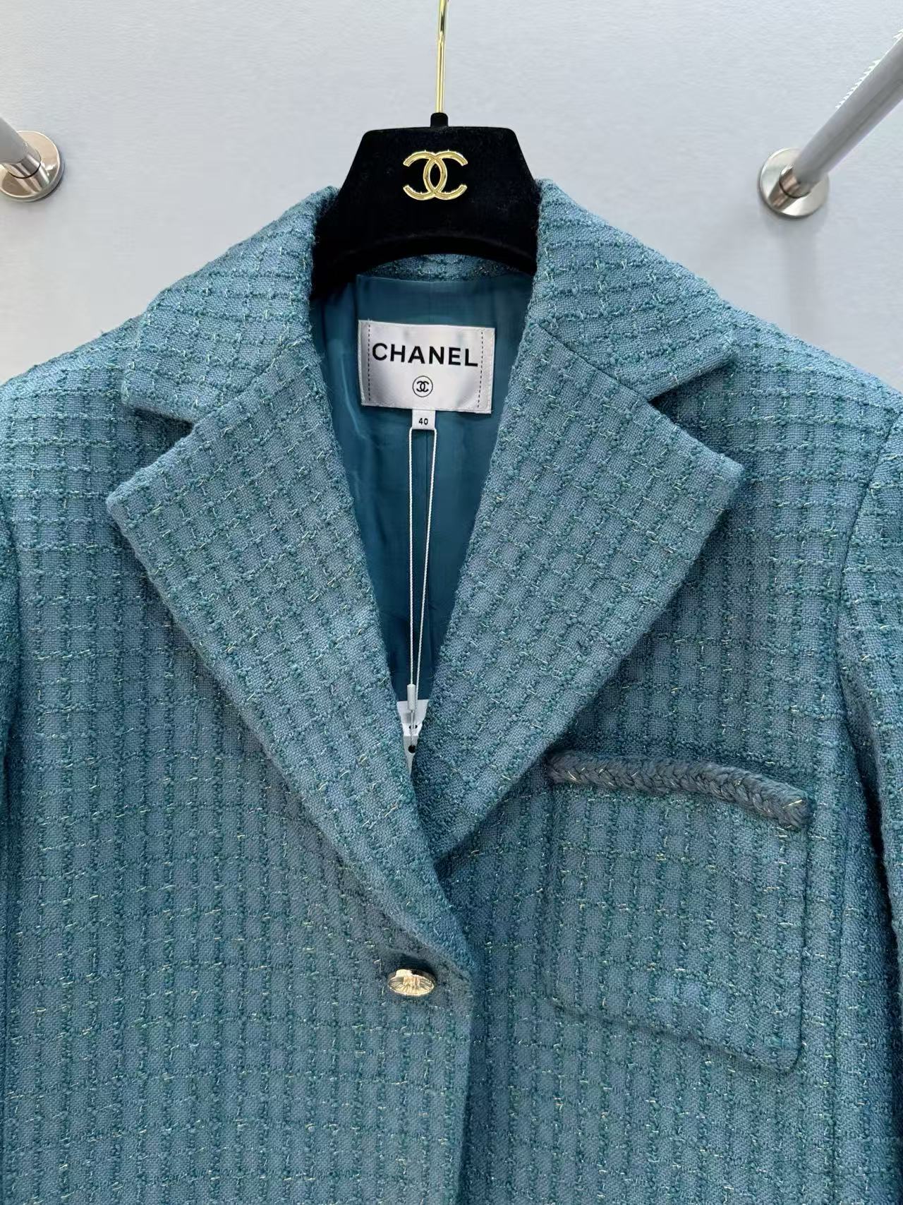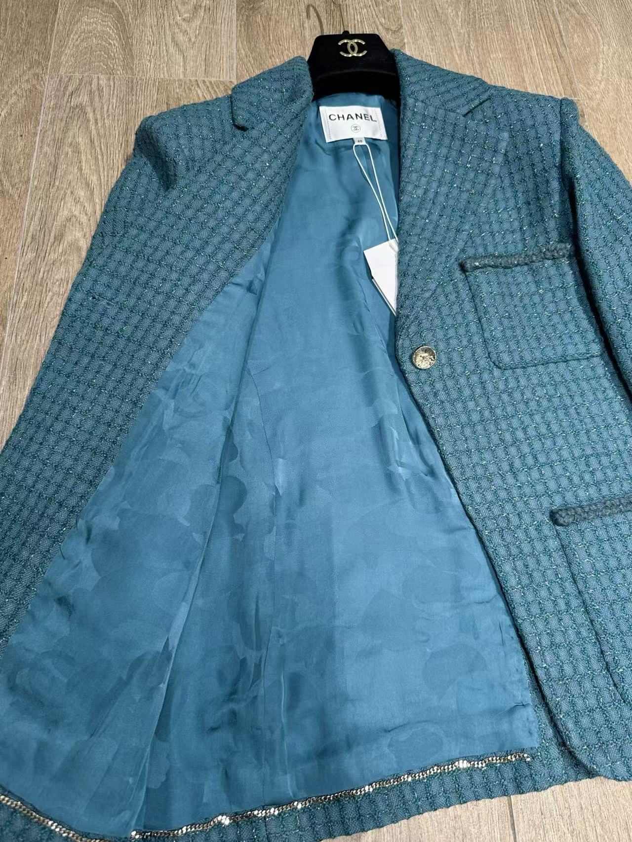 2025早秋 Chanel 復古肌理孔雀綠西裝外套 精品 精工
