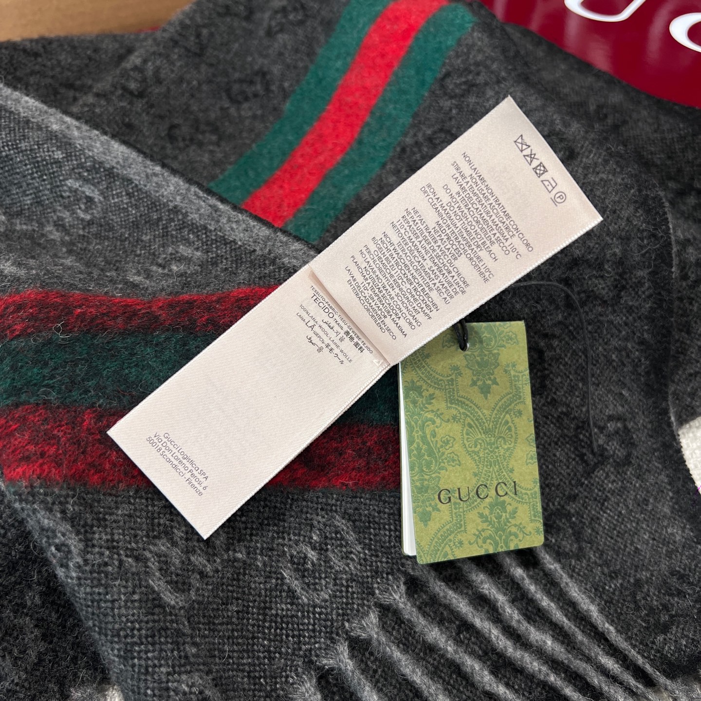 最吸睛的細節在於圍巾一側的紅綠織帶裝飾,低調中藏著滿滿品牌靈魂,搭配任何外套都能瞬間提升造型層次。不論是日常通勤還是出國旅行,都能輕鬆駕馭。