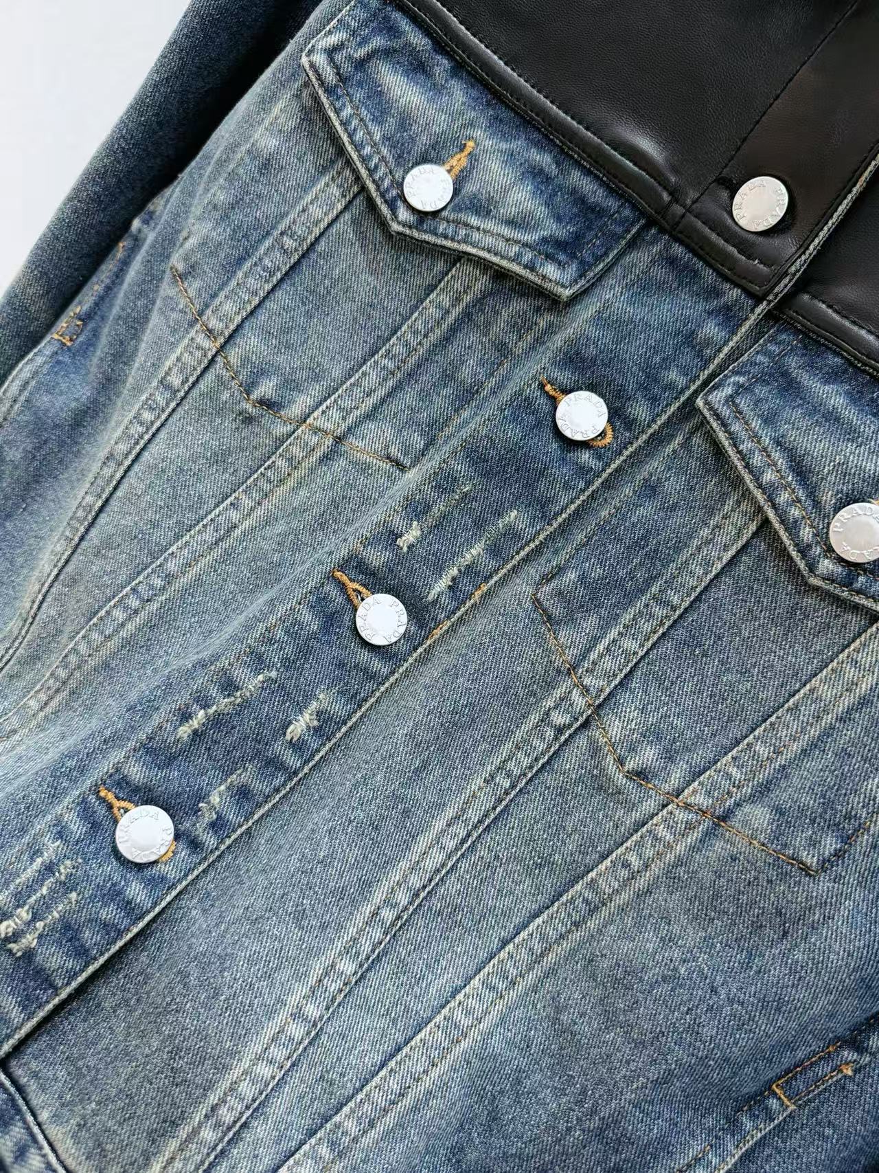 牛仔部分經過舊化洗水工藝處理,色澤層次自然,展現出獨特的復古韻味。
