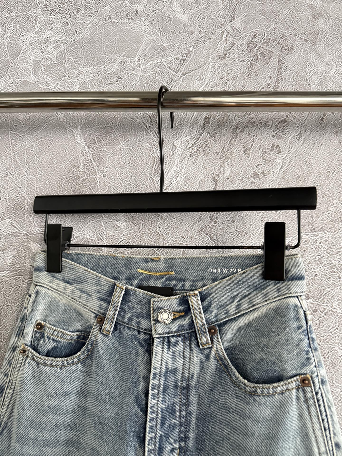 2025秋冬新品 YSL 淺藍高腰牛仔褲 精品 高仿