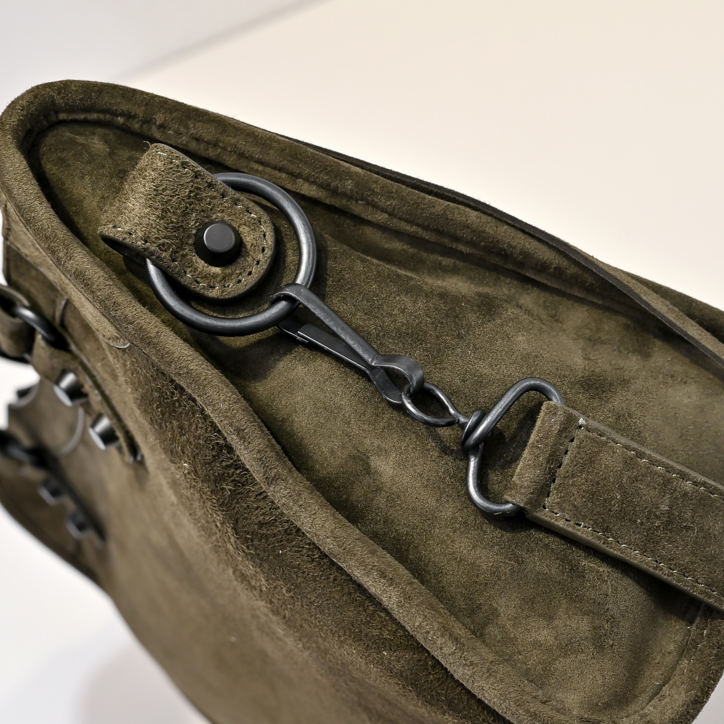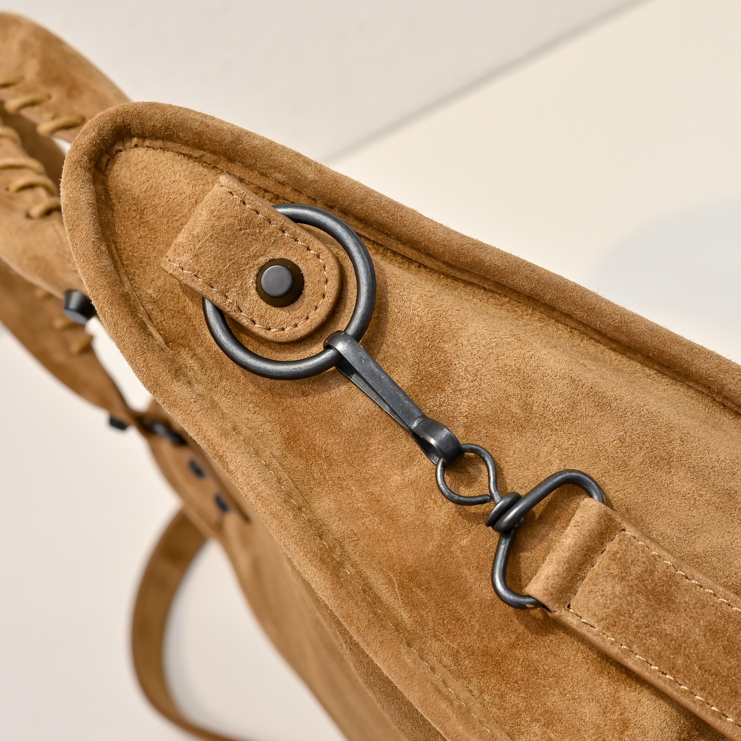 材質介紹|義大利進口麂皮,這款包採用的高仿材質,手感細膩柔軟,質感高級。麂皮的表面帶有自然霧面光澤,讓整體包型更顯復古氛圍,同時也保有BLCG一貫的酷帥感。
