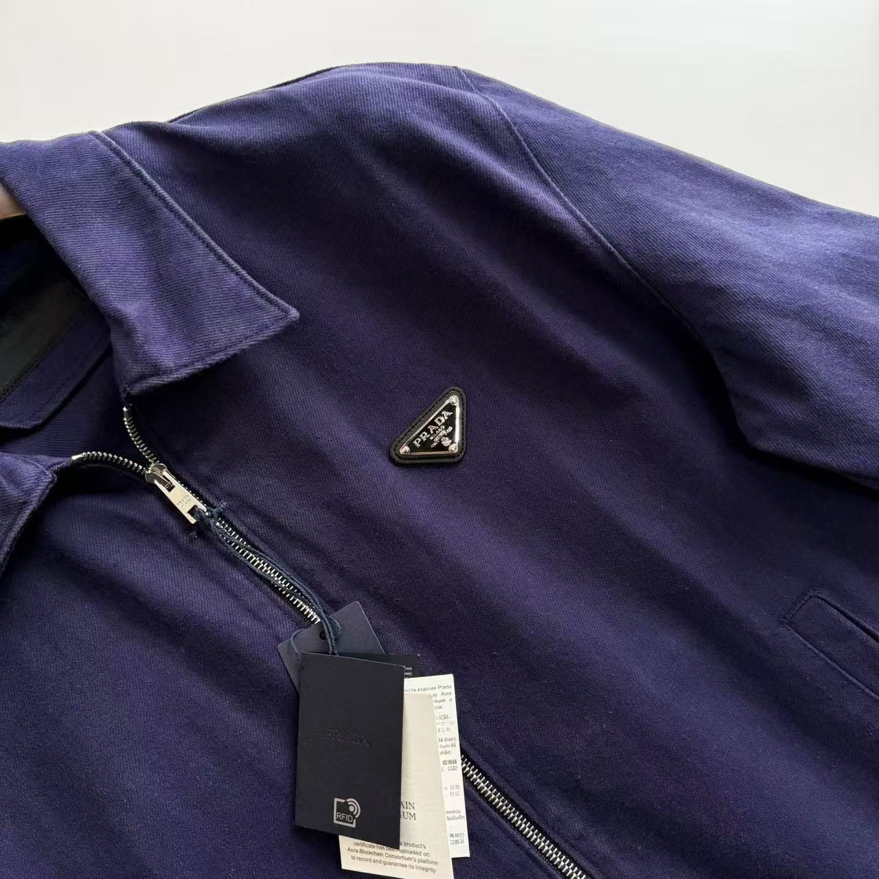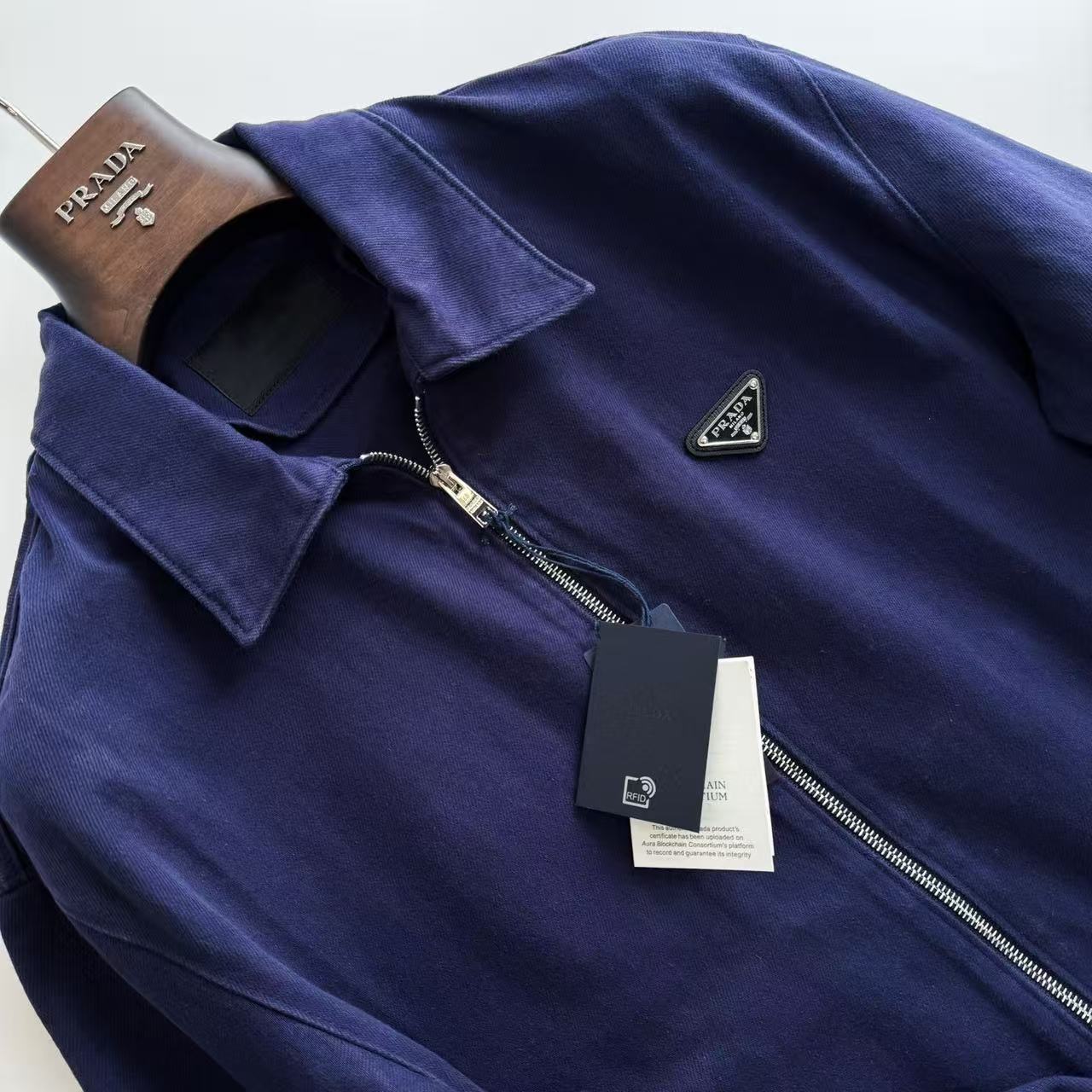 2025早秋新品 Prada 三角標做舊牛仔翻領外套 精品 精工