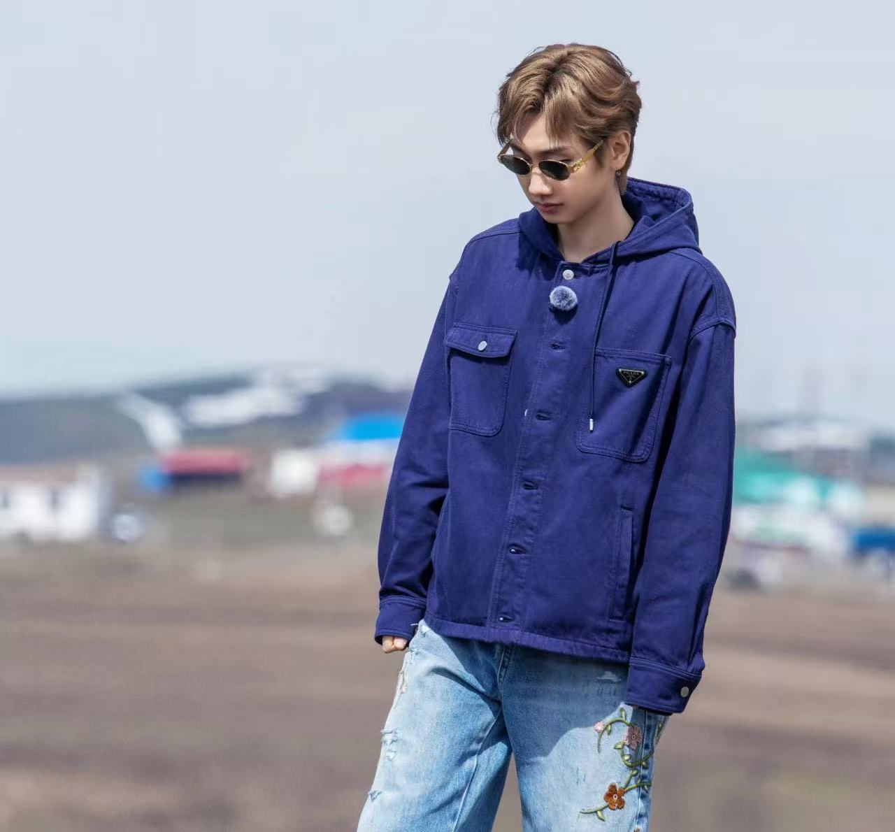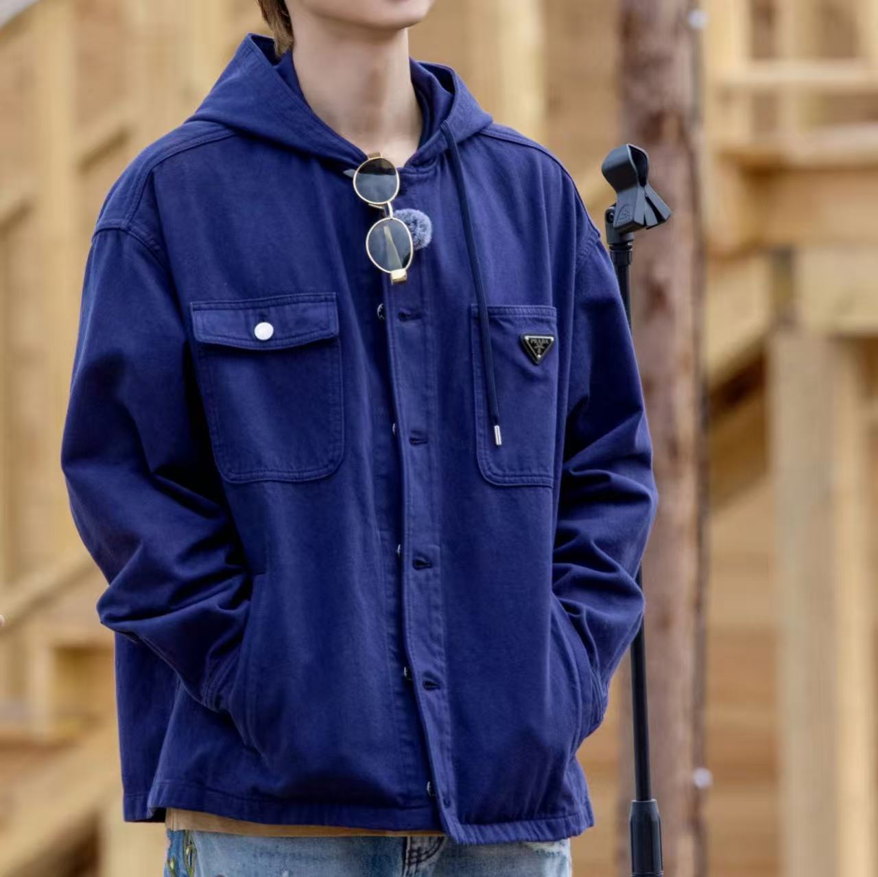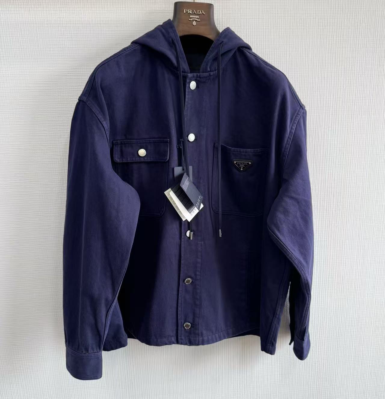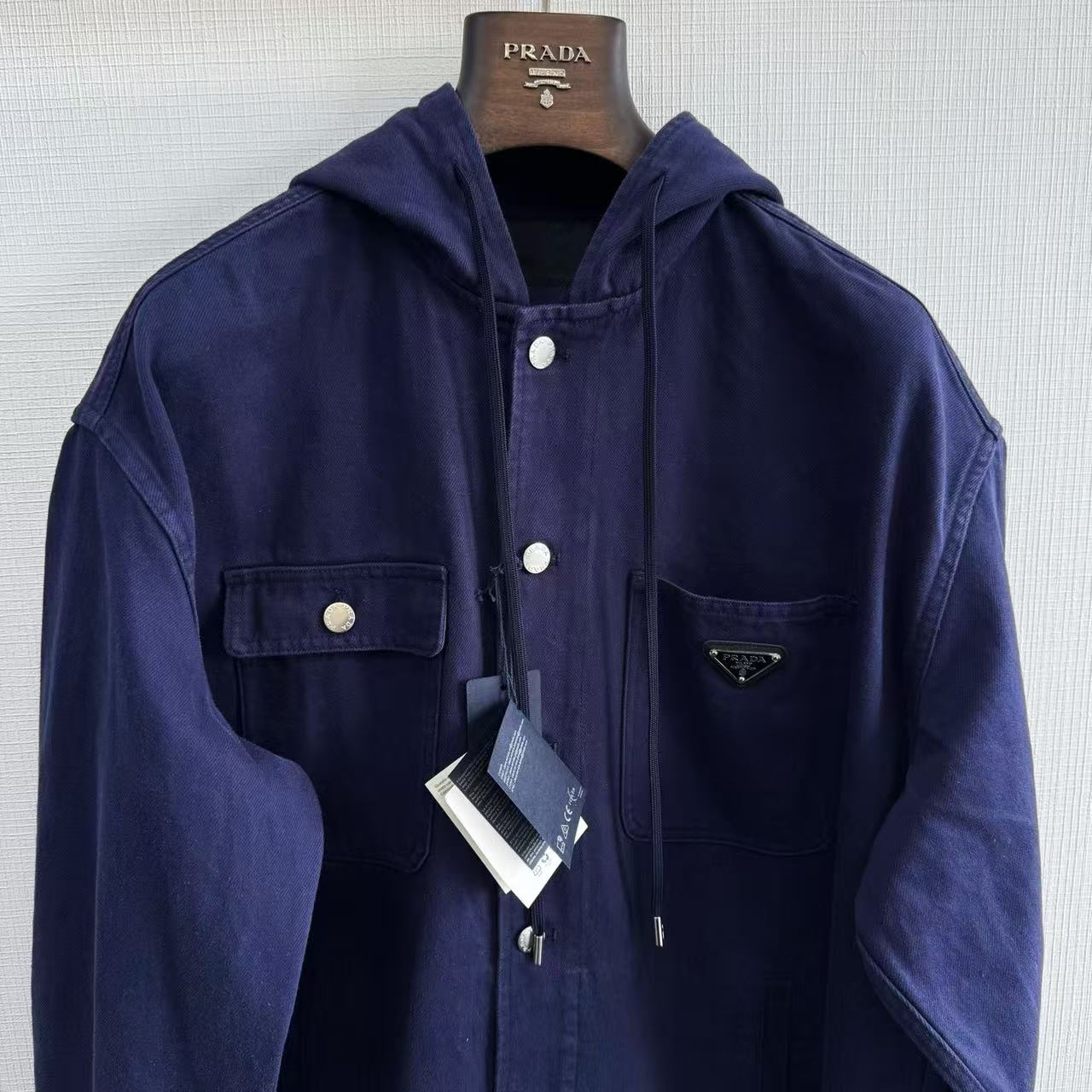 2025早秋新品 Prada 三角標做舊連帽牛仔夾克 精品 高仿