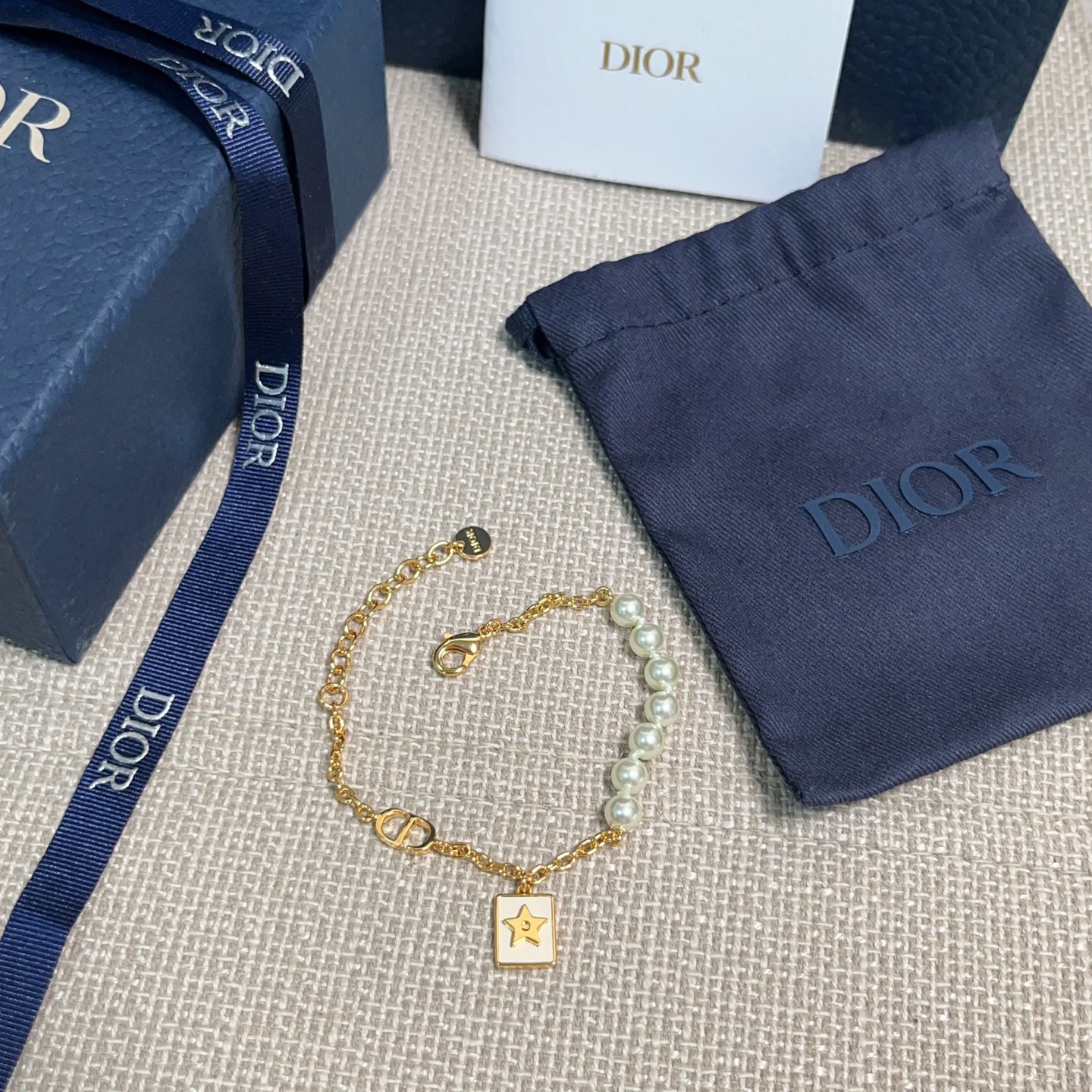 2025春夏新品 Dior 小白方牌珍珠手鍊 复刻 精品
