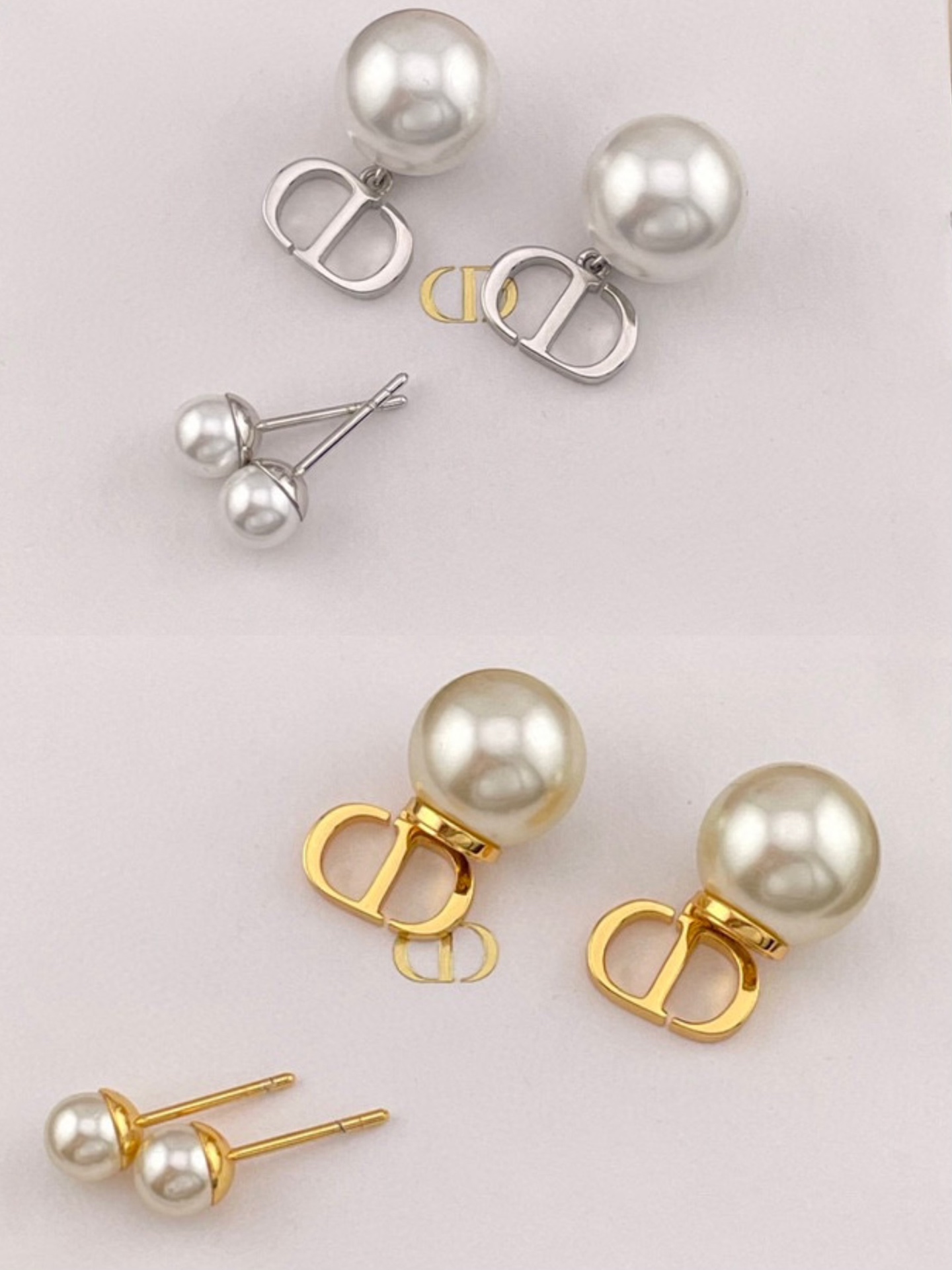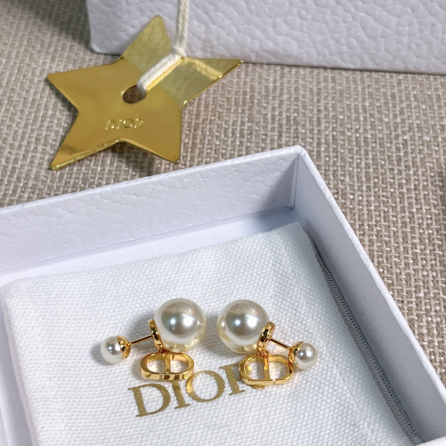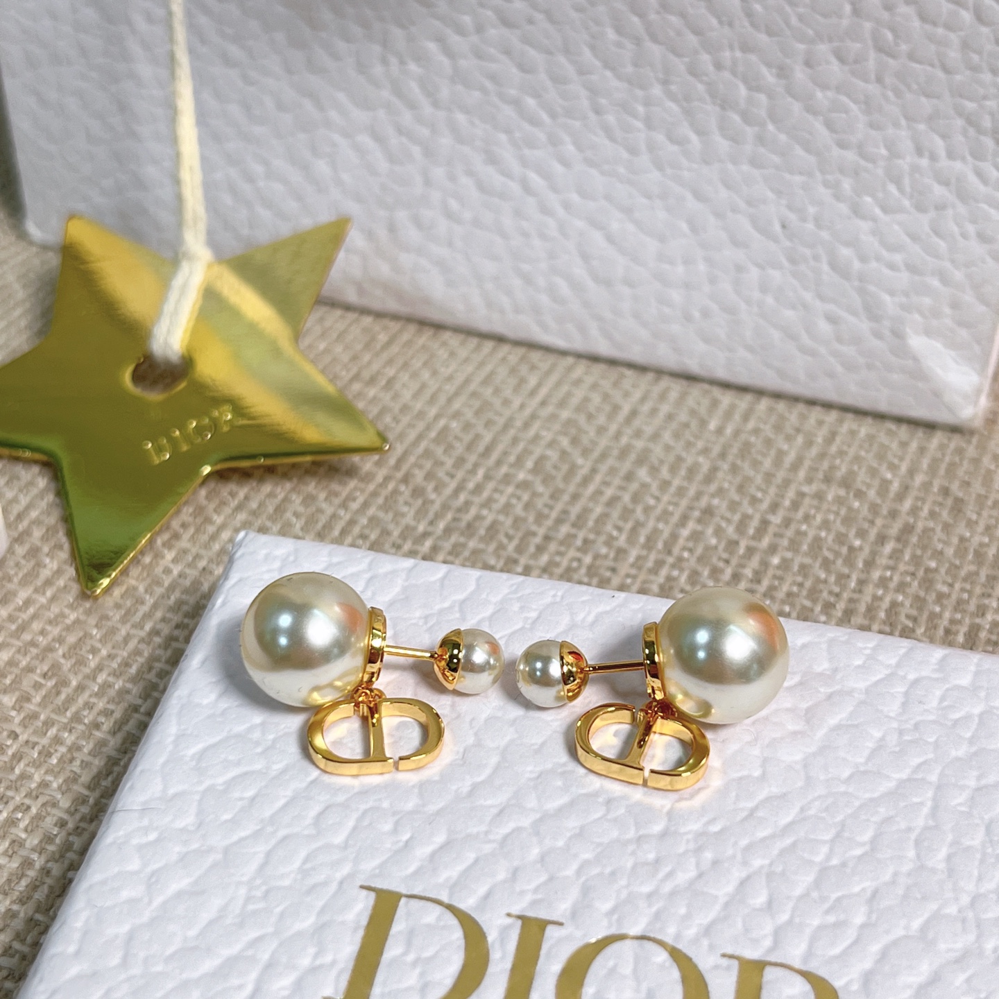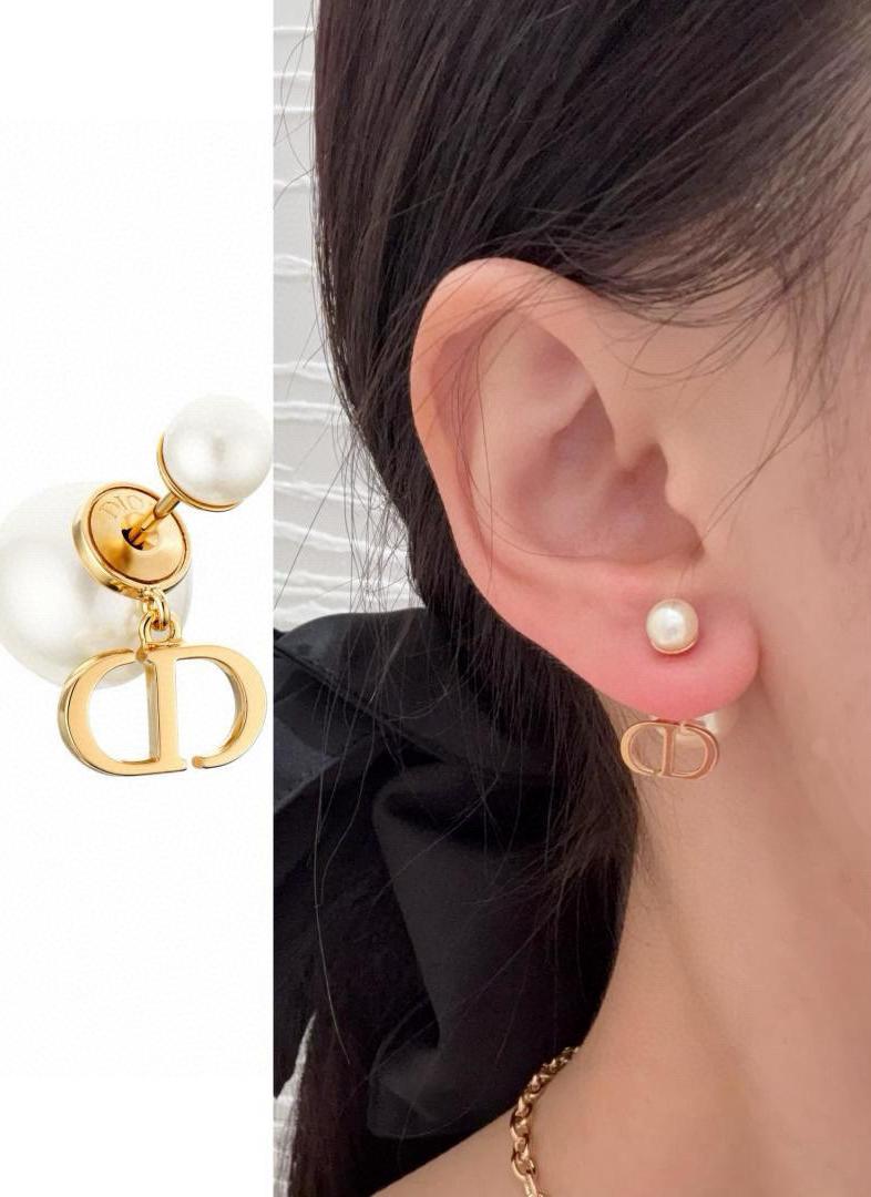 2025秋冬新品 Dior 無鑽小CD雙珠耳環 精品 高仿