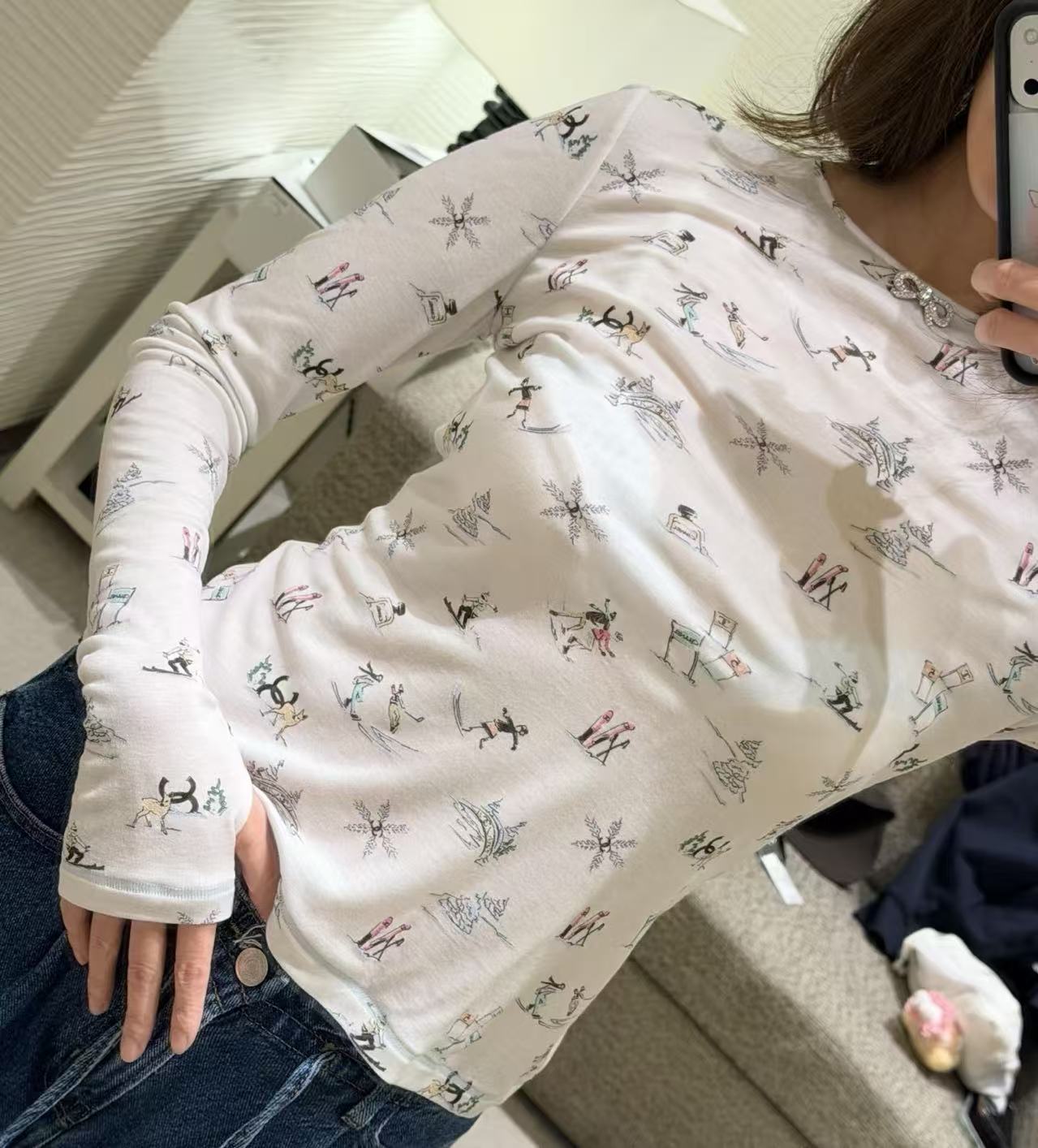 ・刺繡還原:胸前雙C立體繡+袖口織標,位置、密度、繡線粗細全部1:1,讓人驚嘆於這種復刻工藝的精細程度
