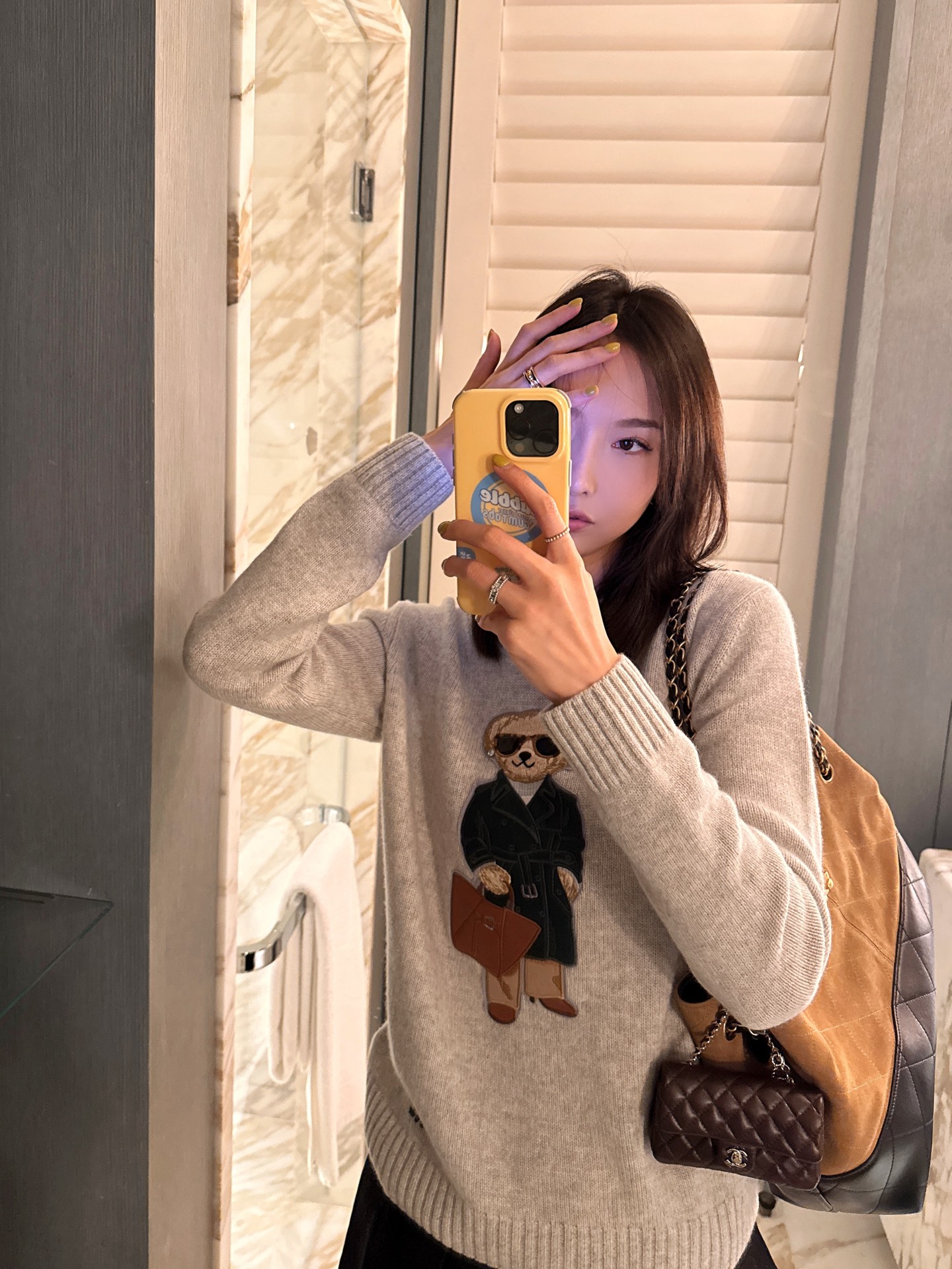 紫標系列最新款來了!這件灰色小熊針織衫真的太可愛、太有質感了。