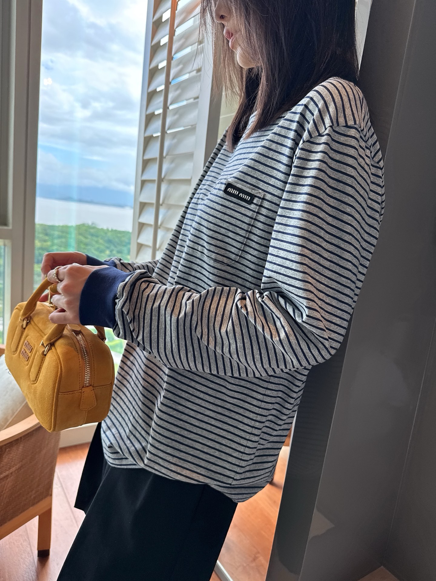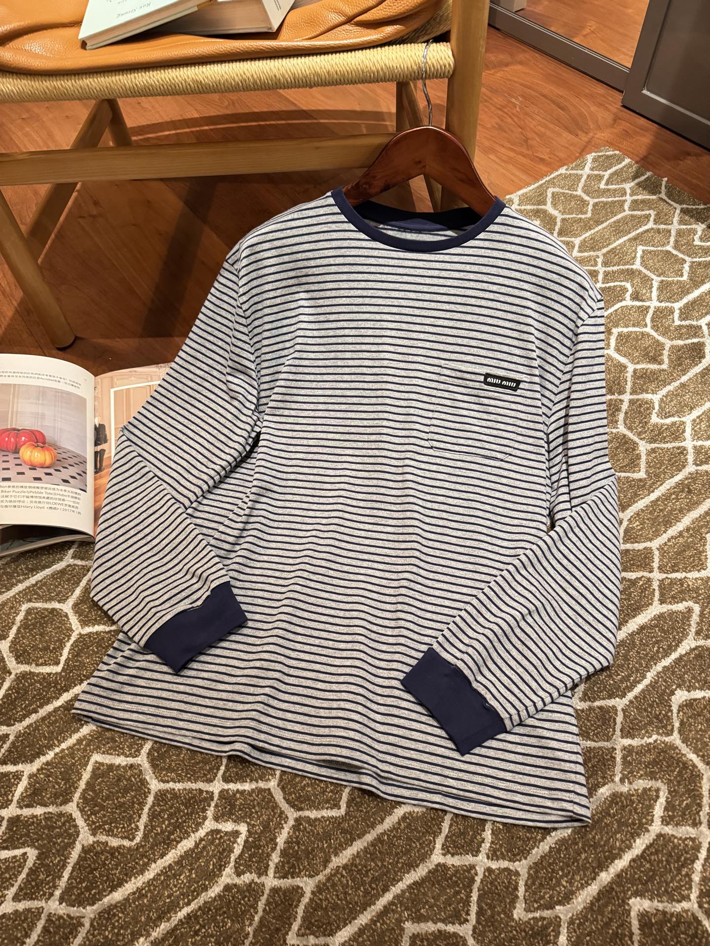 2025秋冬新品 MIU MIU 藍灰色限定款條紋長袖 精品 時尚