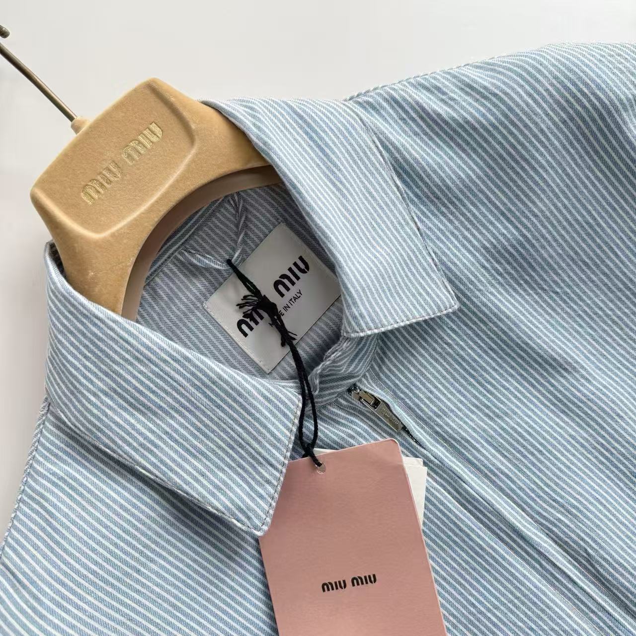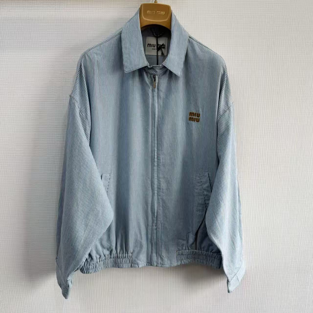 2025早秋新品 MIU MIU 豎條紋翻領夾克 精品 時尚