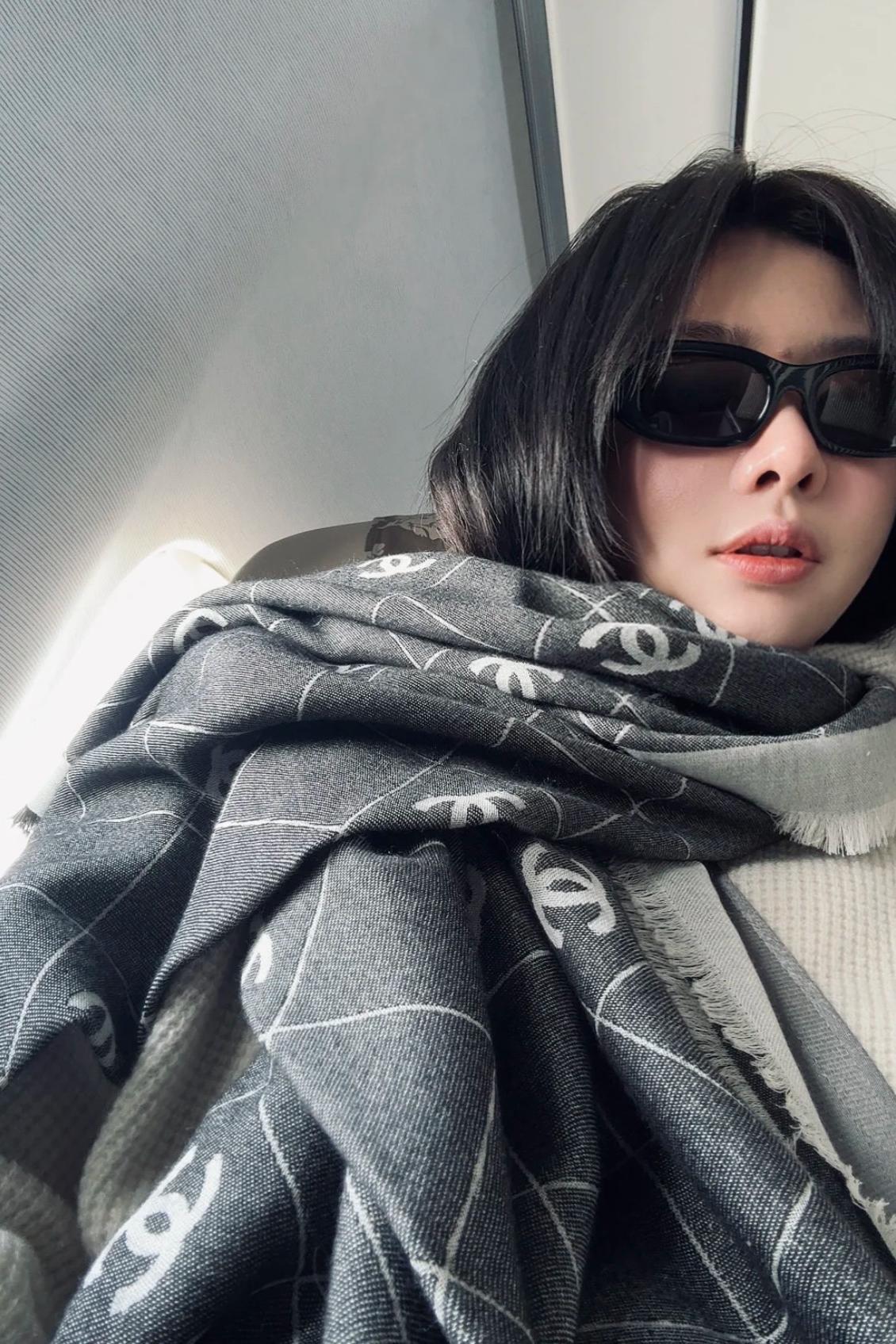 2025秋冬新品 Chanel 25p 牛仔雙層提花菱格字母圍巾 精品 精工