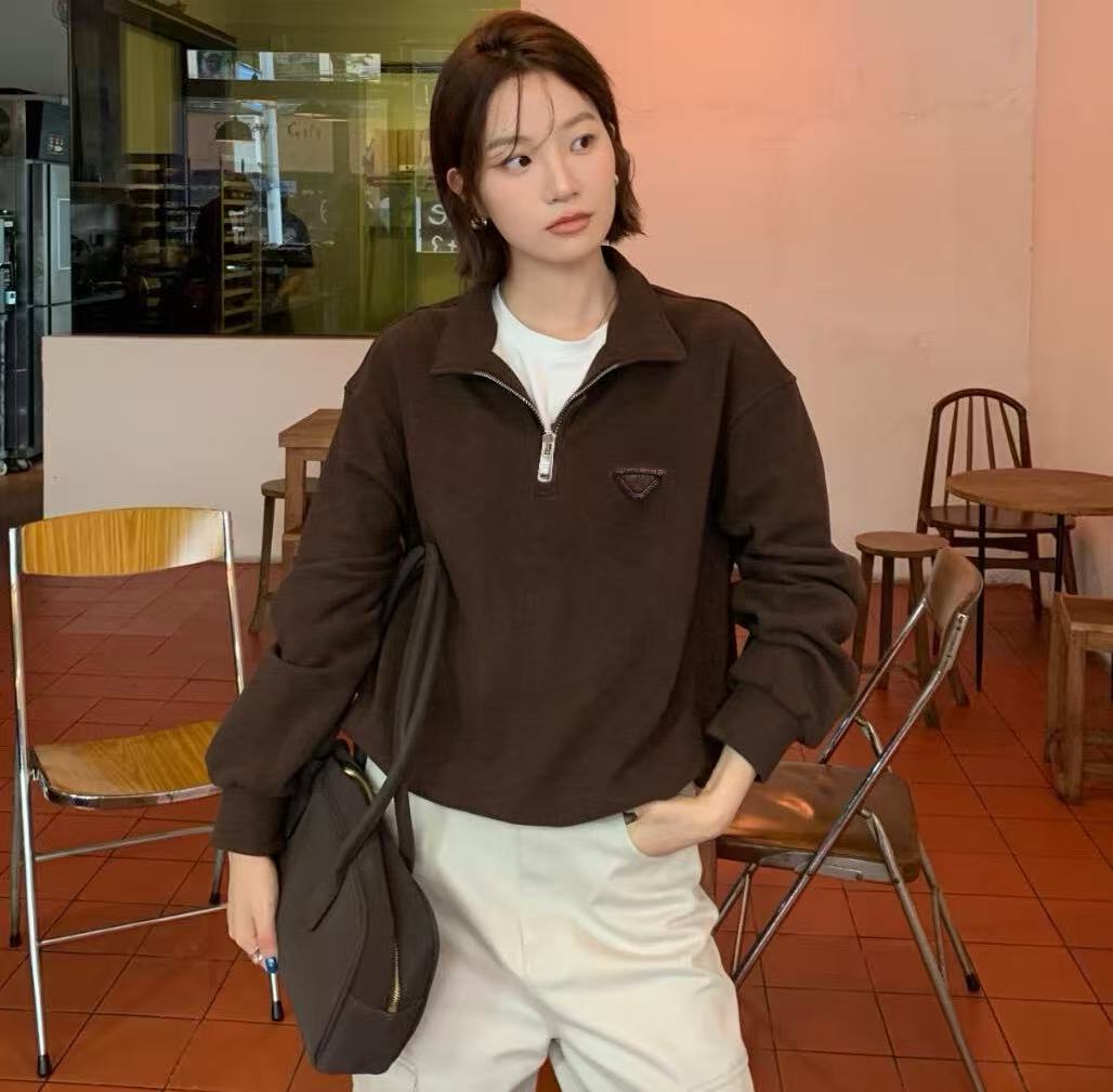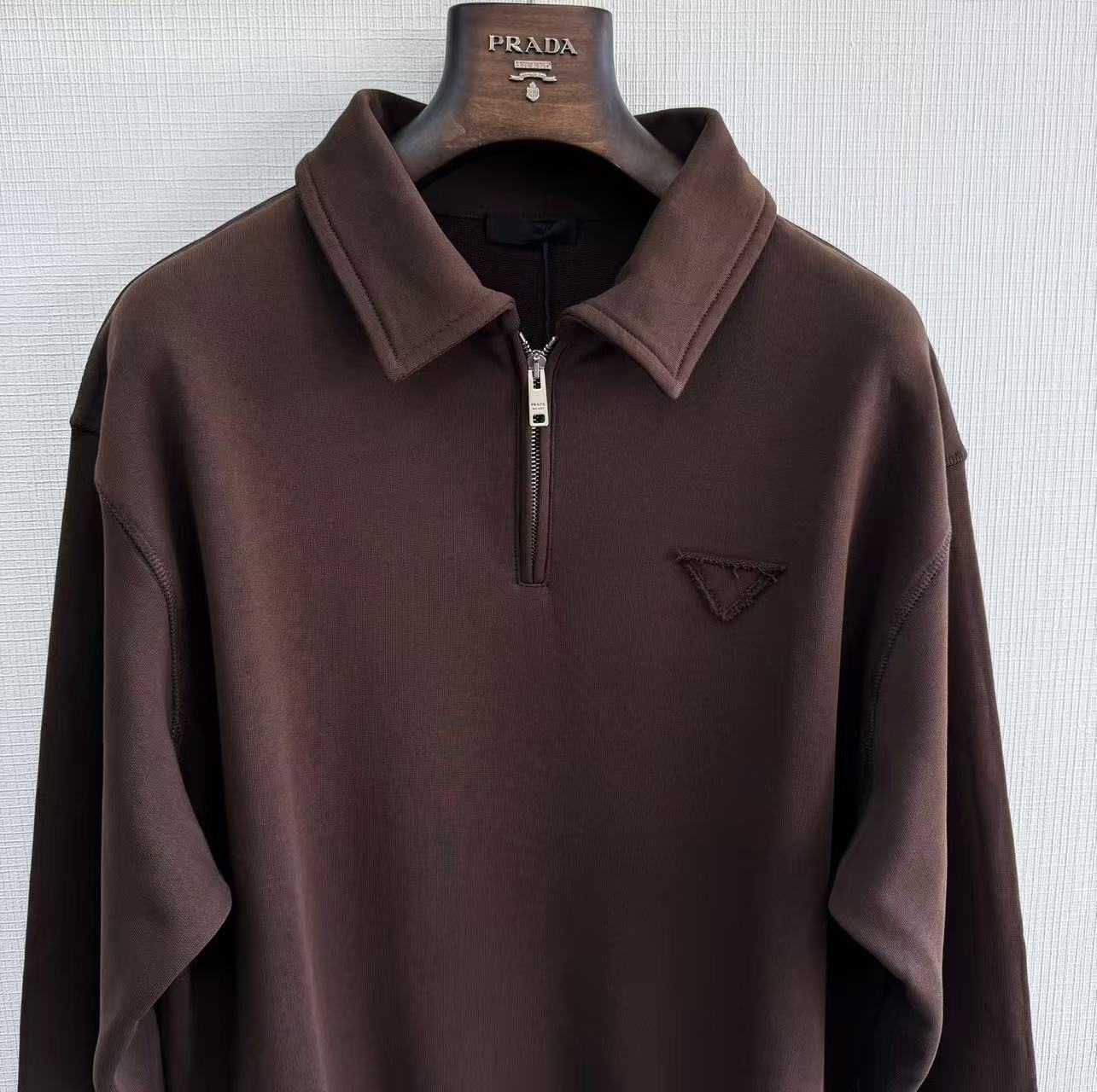 2025早秋新品 Prada 三角徽標半拉鍊翻領衛衣 精品 高仿