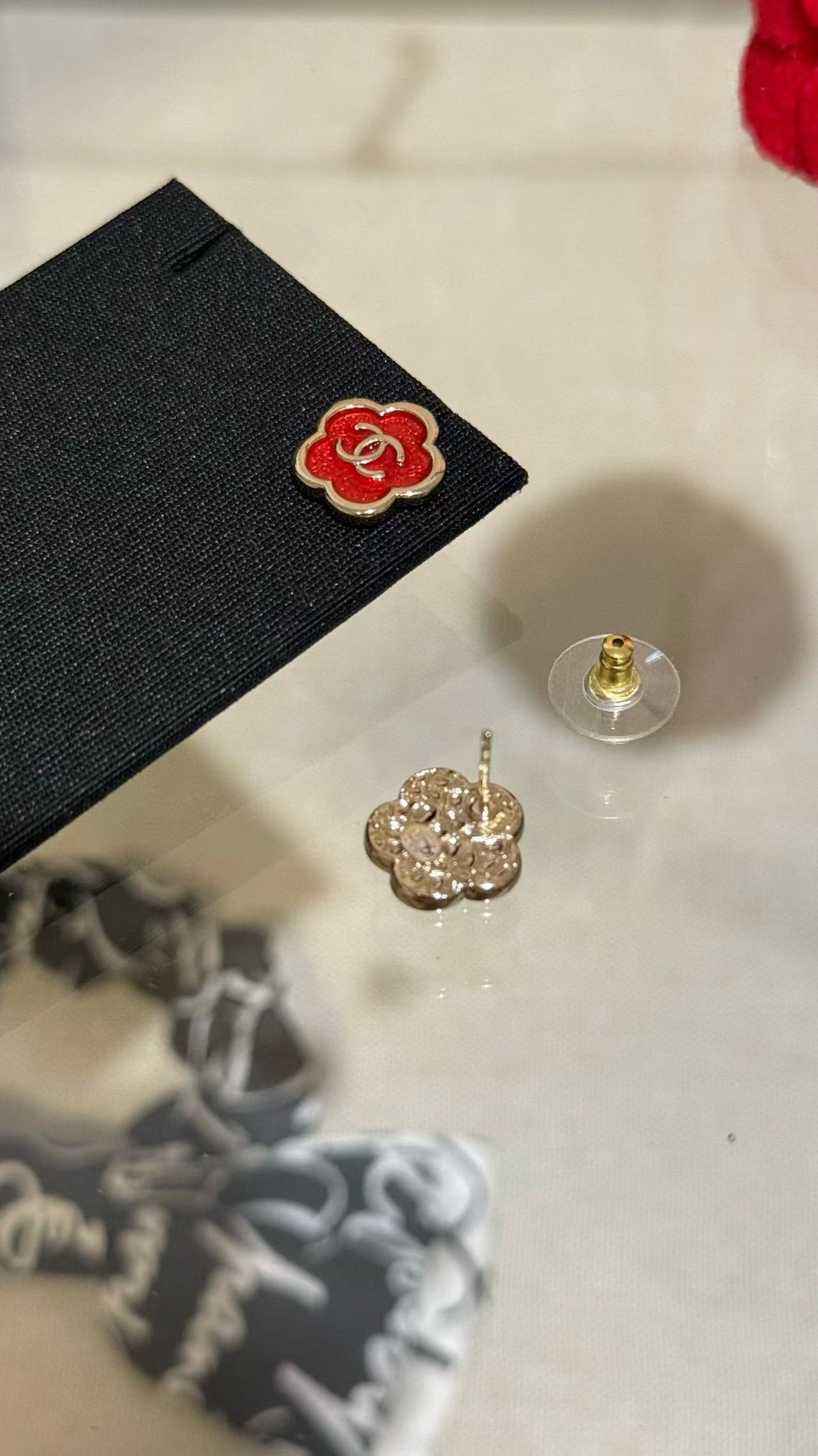 2025早秋 Chanel 红色珐琅滴釉山茶花复刻耳环