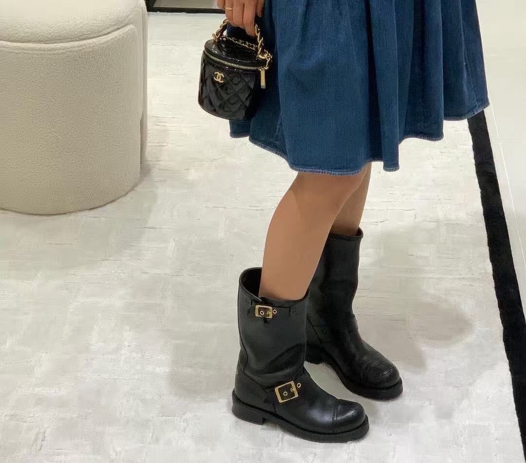 2025早秋新品 Chanel   Vintage中古黑金騎士靴 精工 精品