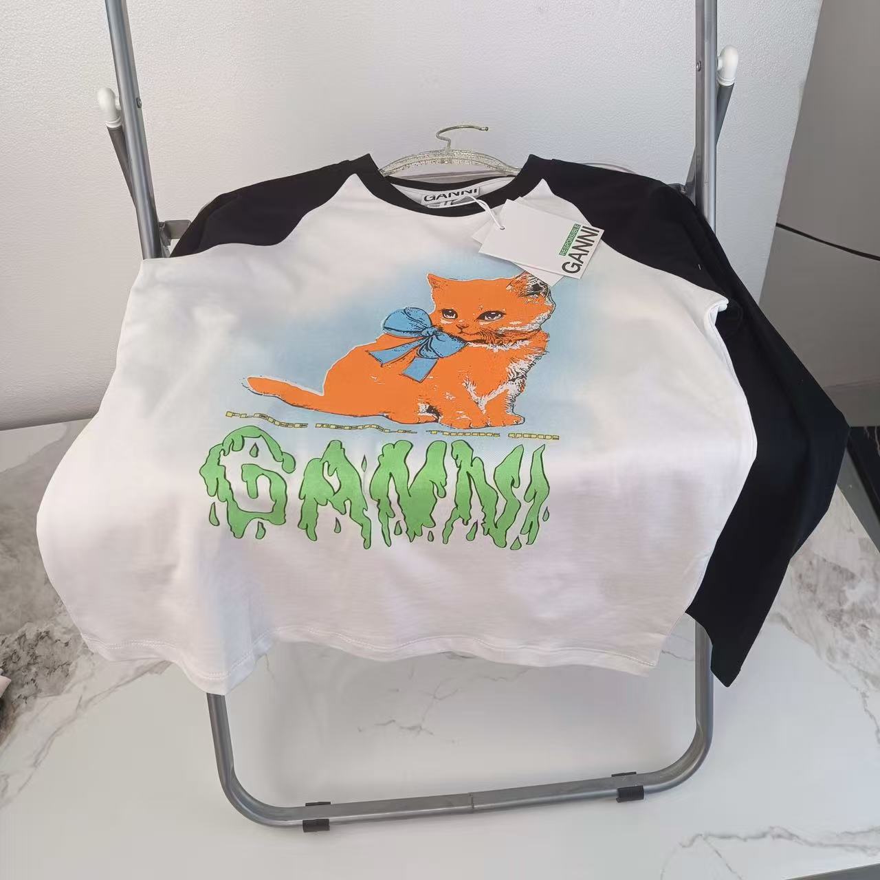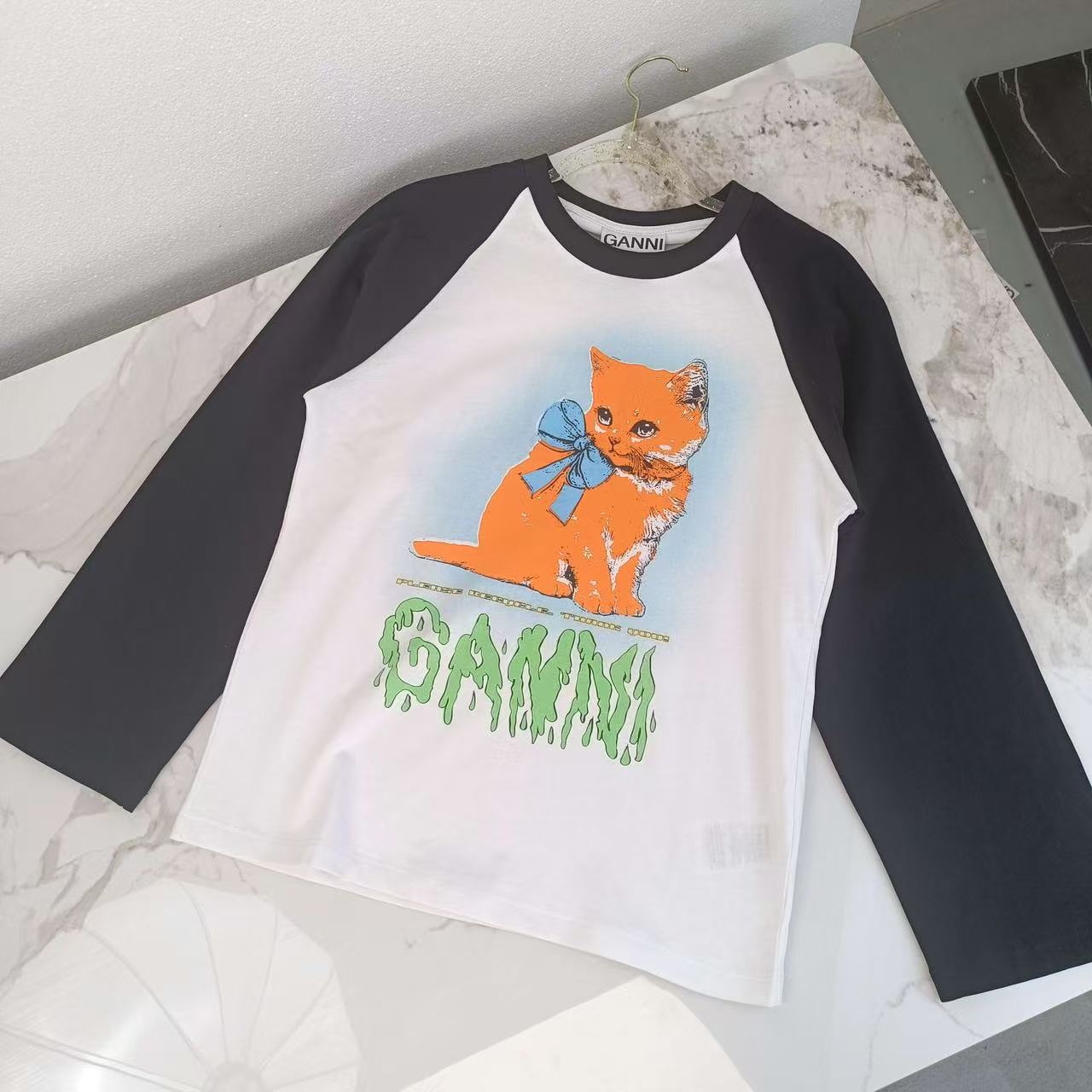 2025早秋新品 Ganni家 貓咪圖案拼色長袖