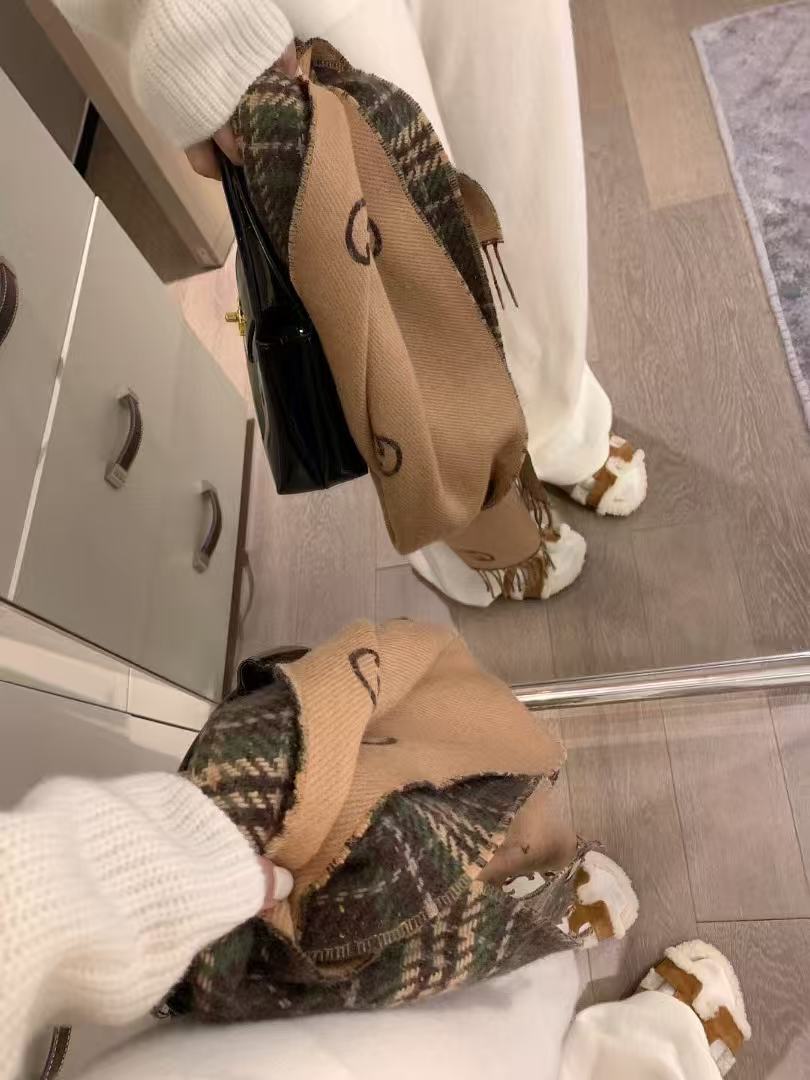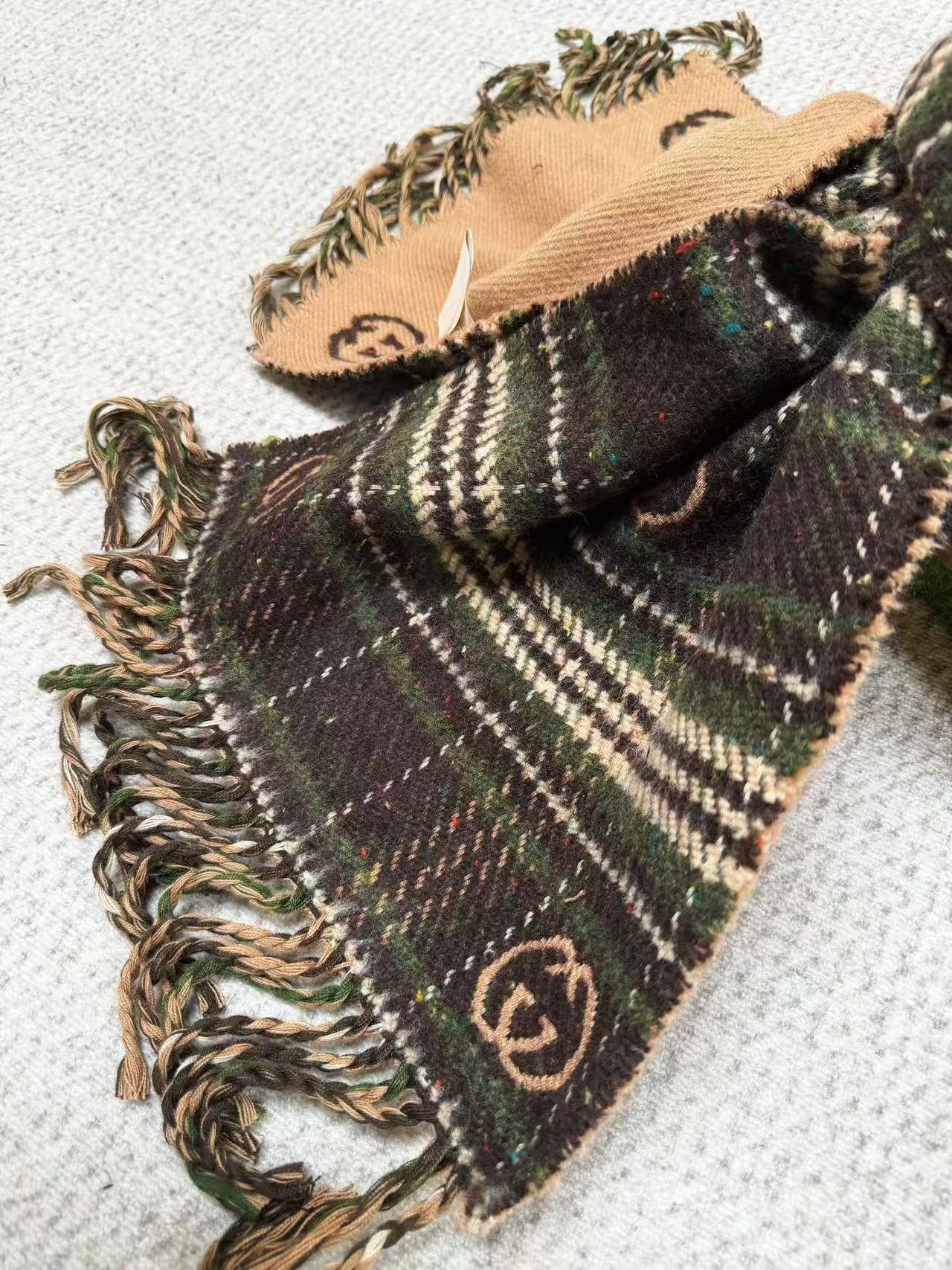 正面是超美復古綠格紋,帶一點點彩色紗線閃爍,低調又高級;反面是經典駝色提花雙G,而且G是彩色的!正反都好看,隨手一搭就是貴氣滿滿,根本不撞款!