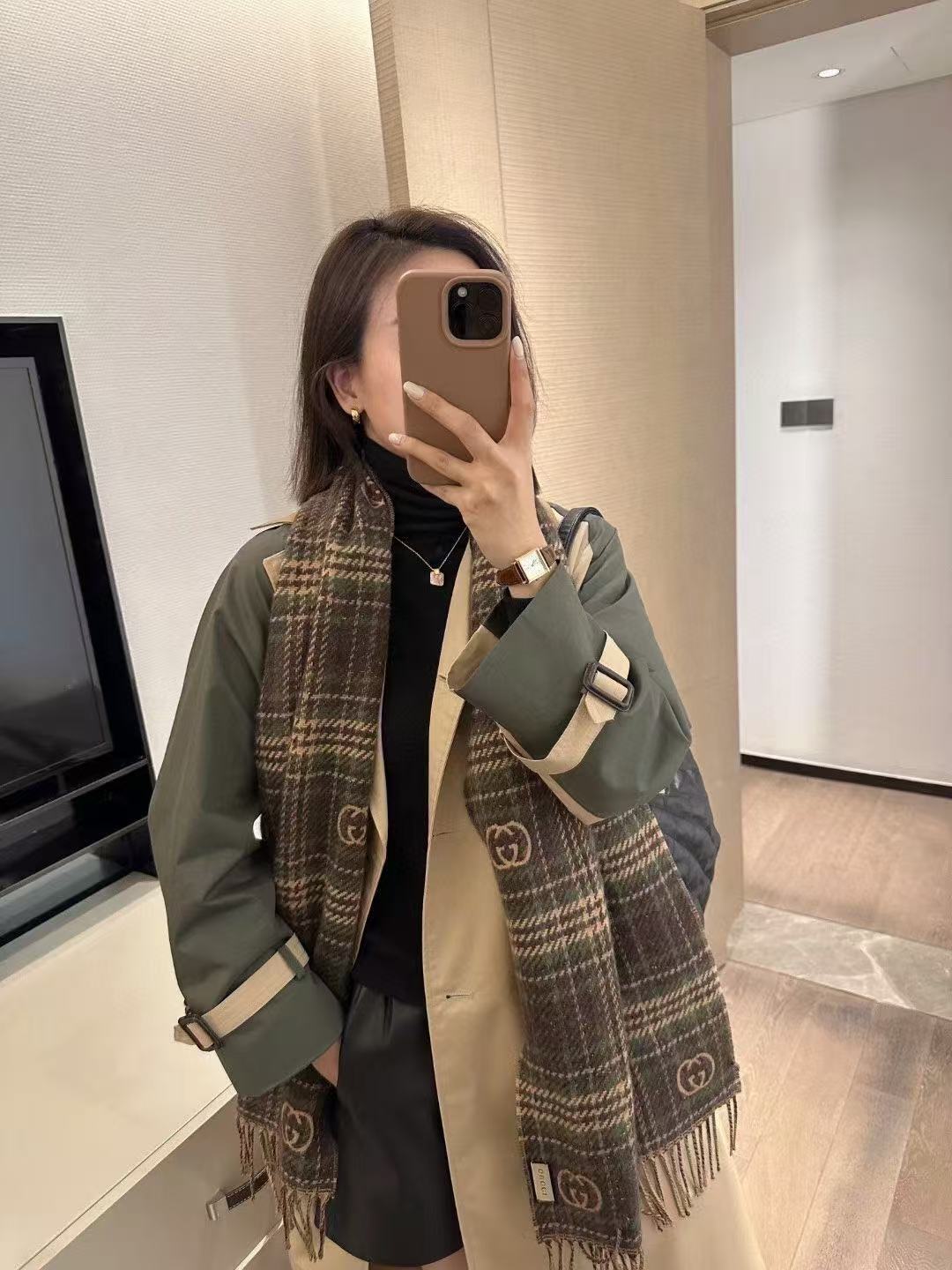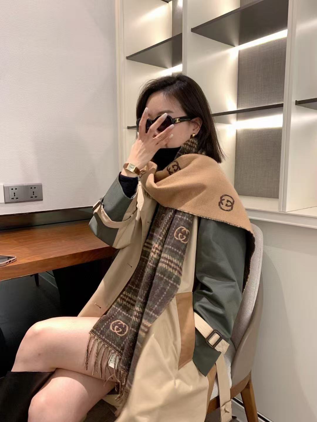 雙十一重磅特惠福利- Gucci 復古雙G格紋提花精品圍巾