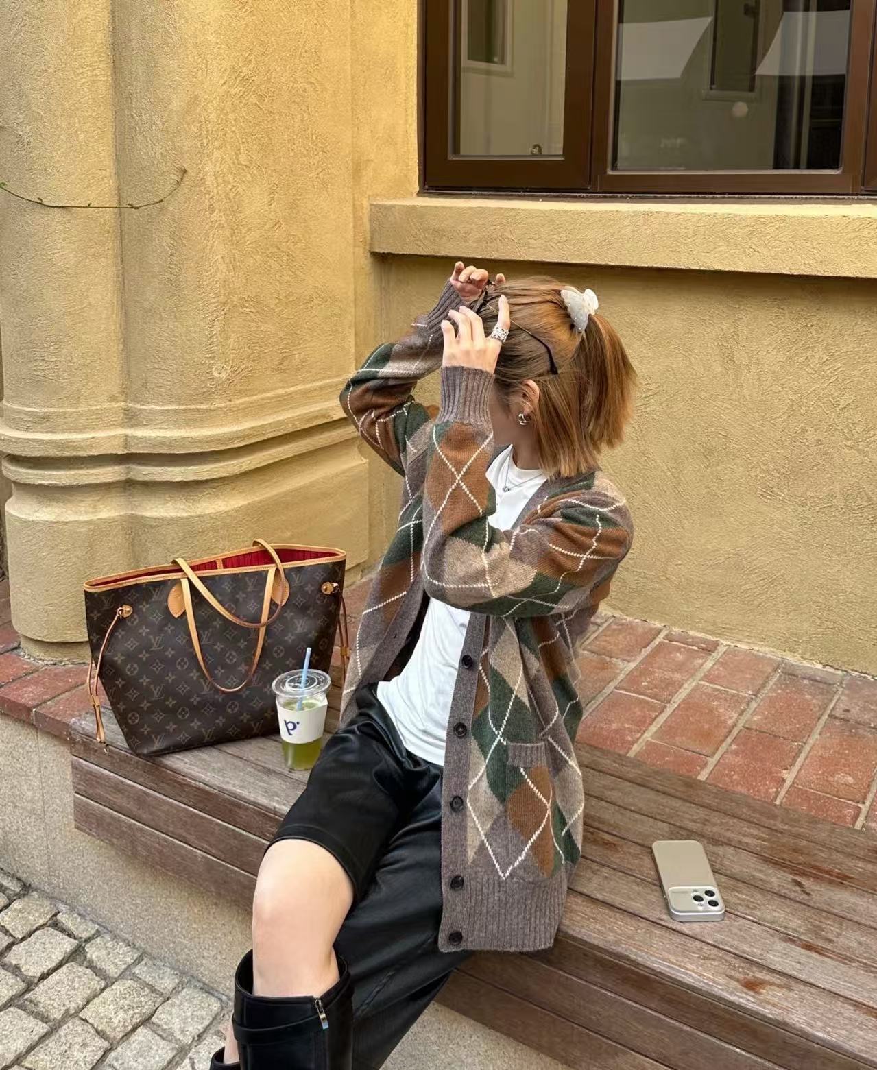 經典駝色夾花+菱格紋,復古又低調,陽光照下來層次超豐富,完全是那種靜靜站在那裡就很有故事感的單品,拍照真的無敵上鏡!因此,這件開衫不僅是一個奢侈品,更是時尚的選擇。