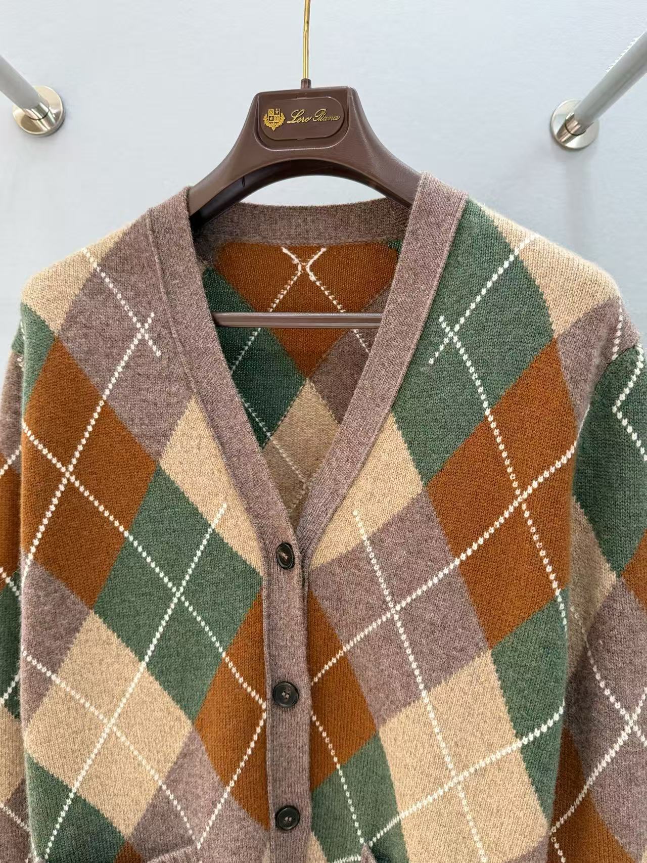 2025秋冬 Loro piana 彩色菱格羊絨開衫 精品 復刻