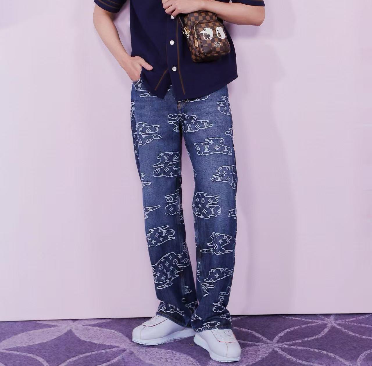 2025早秋新品 Louis Vuitton 雲朵提花精品牛仔長褲