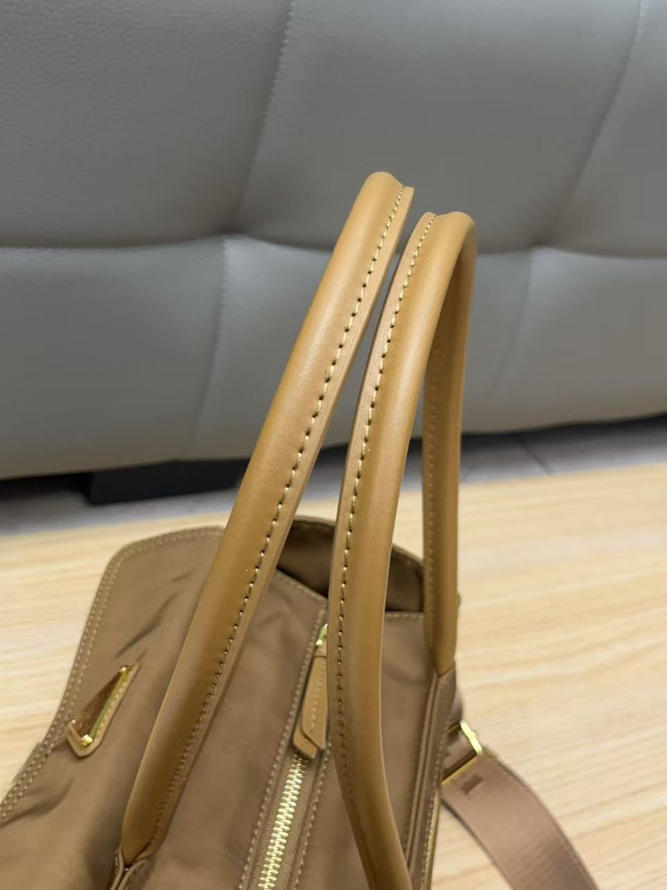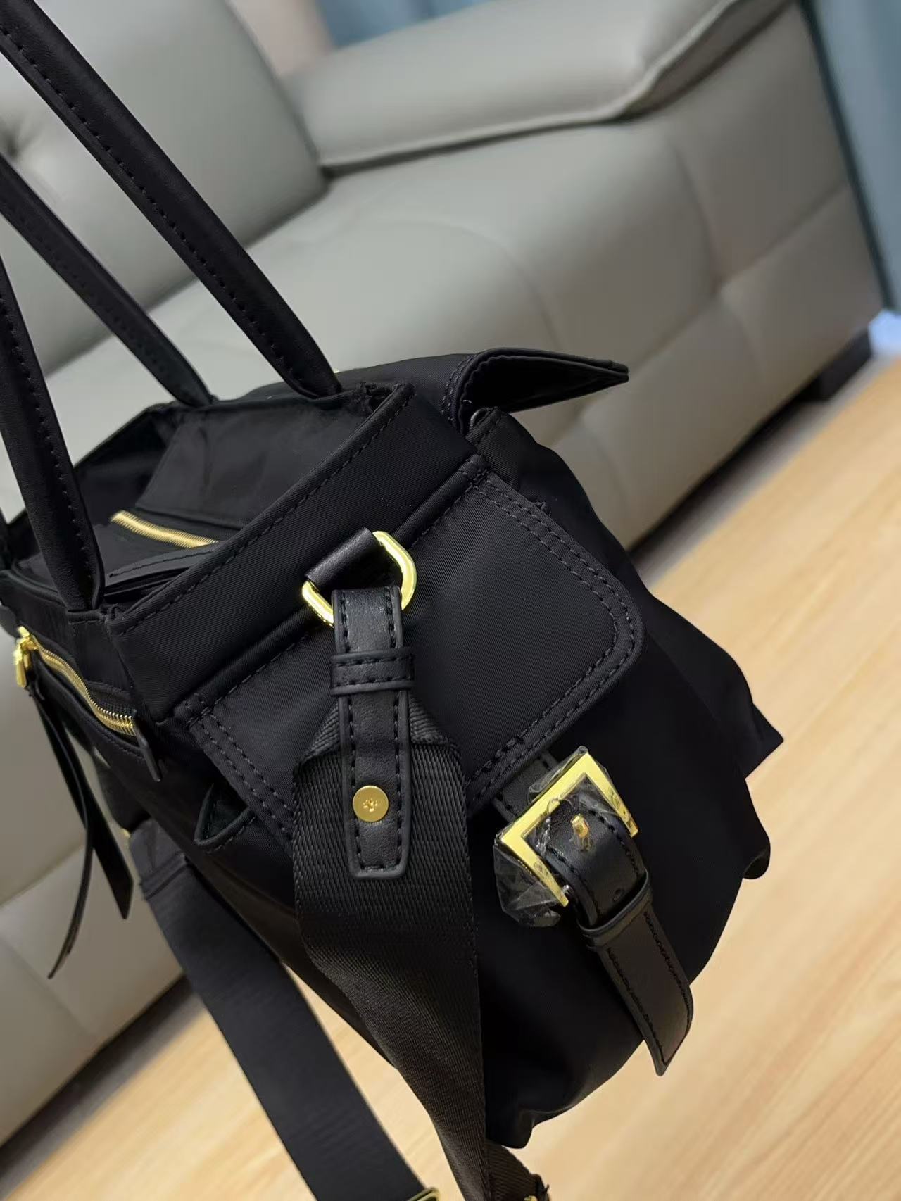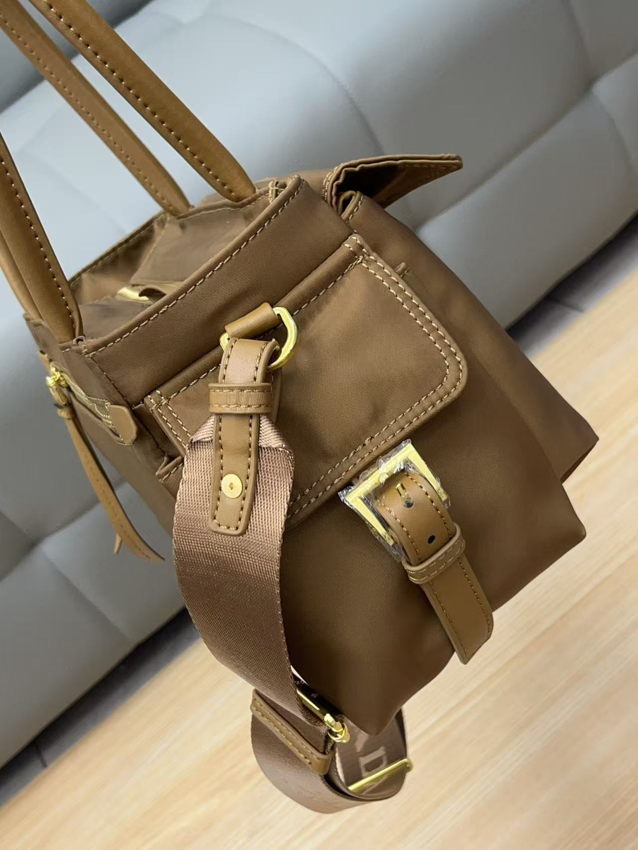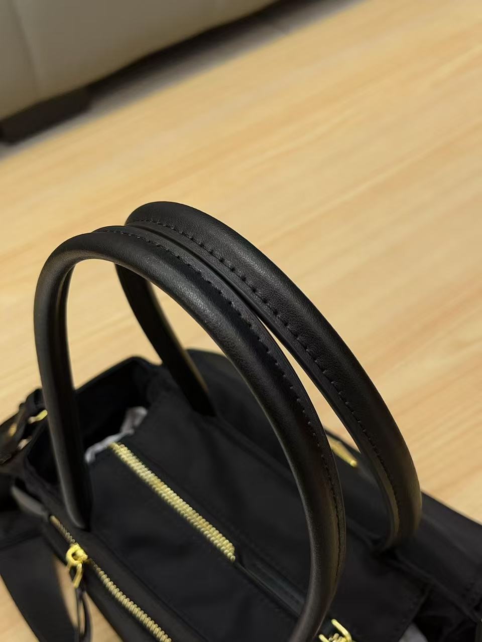 經典三角標,尼龍搭配小牛皮拼接,手提把全是小牛皮握感超舒適,還附贈可拆式長肩帶,隨手切換手提、肩背、斜跨三種玩法,實用度直接滿分!