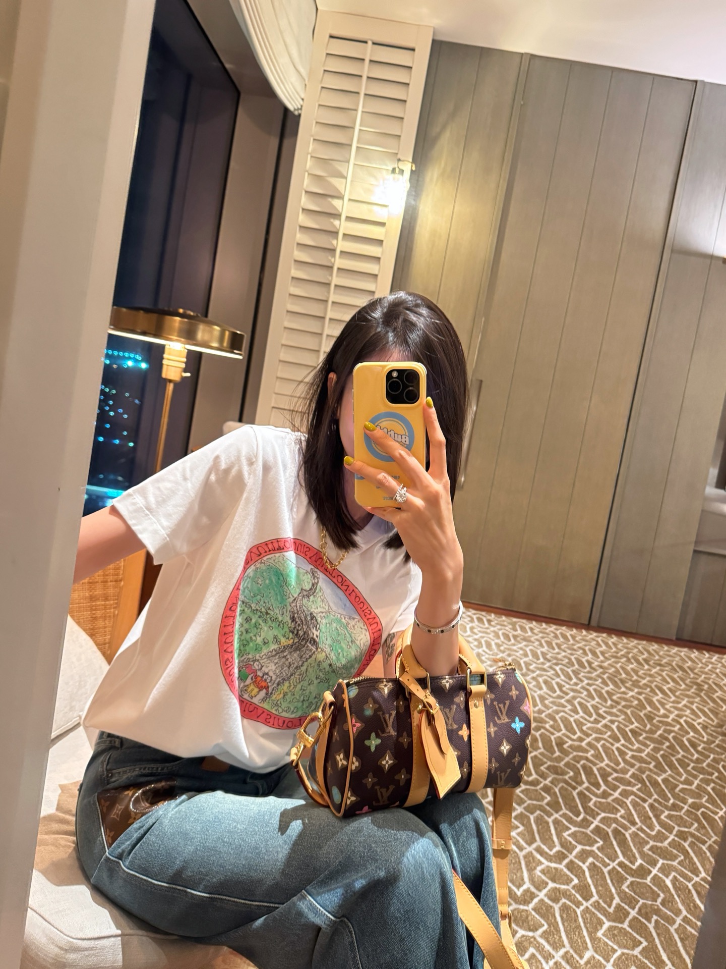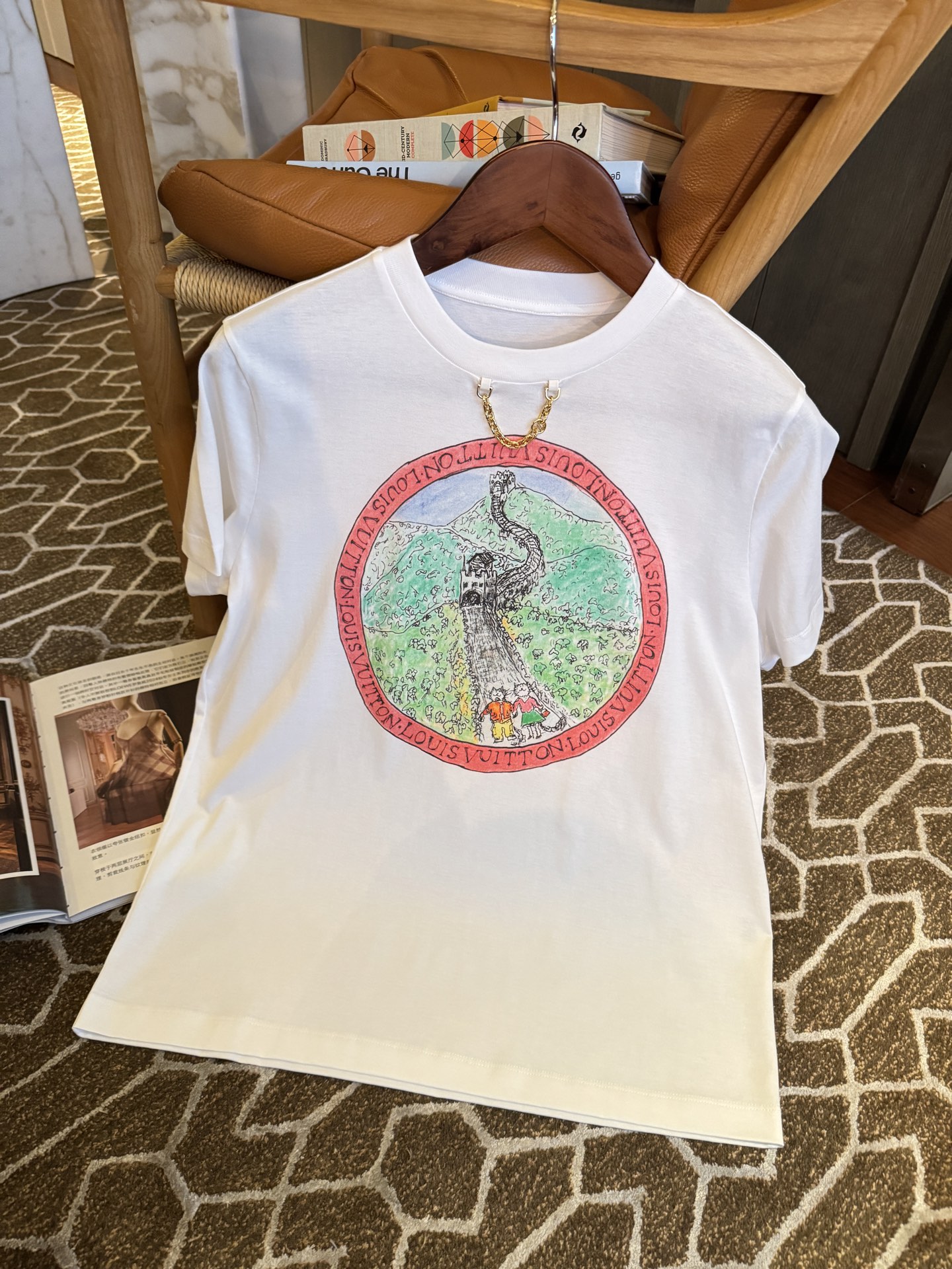 2025秋冬新品 Louis Vuitton 聯名GC貓咪系列白色印花短袖 精品 高仿
