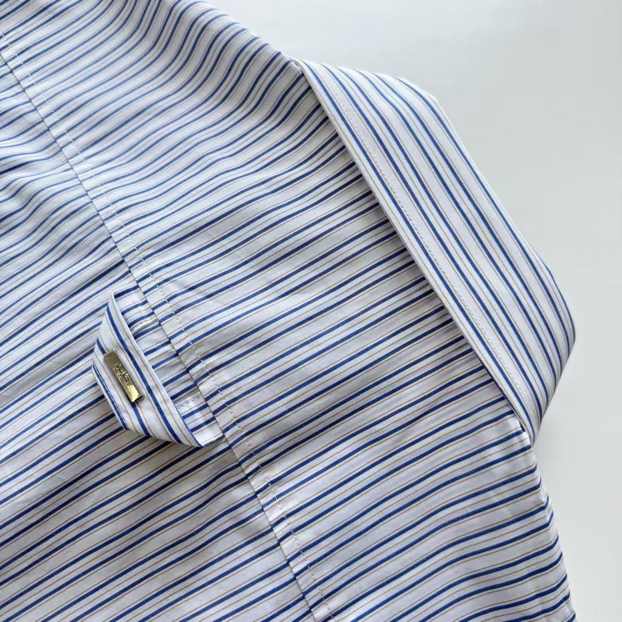 手縫鈕扣:鈕扣是手縫的白色鈕扣,這種精緻的細節,完美還原了專櫃的品質,為整件襯衫增添了一份奢華感。
