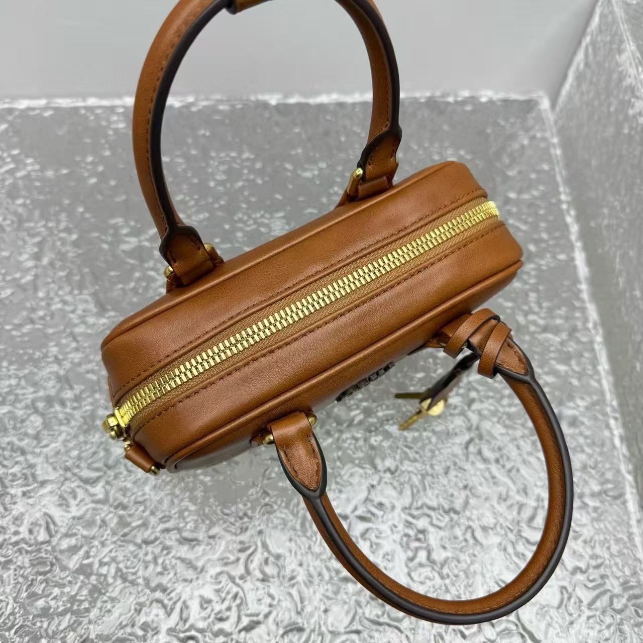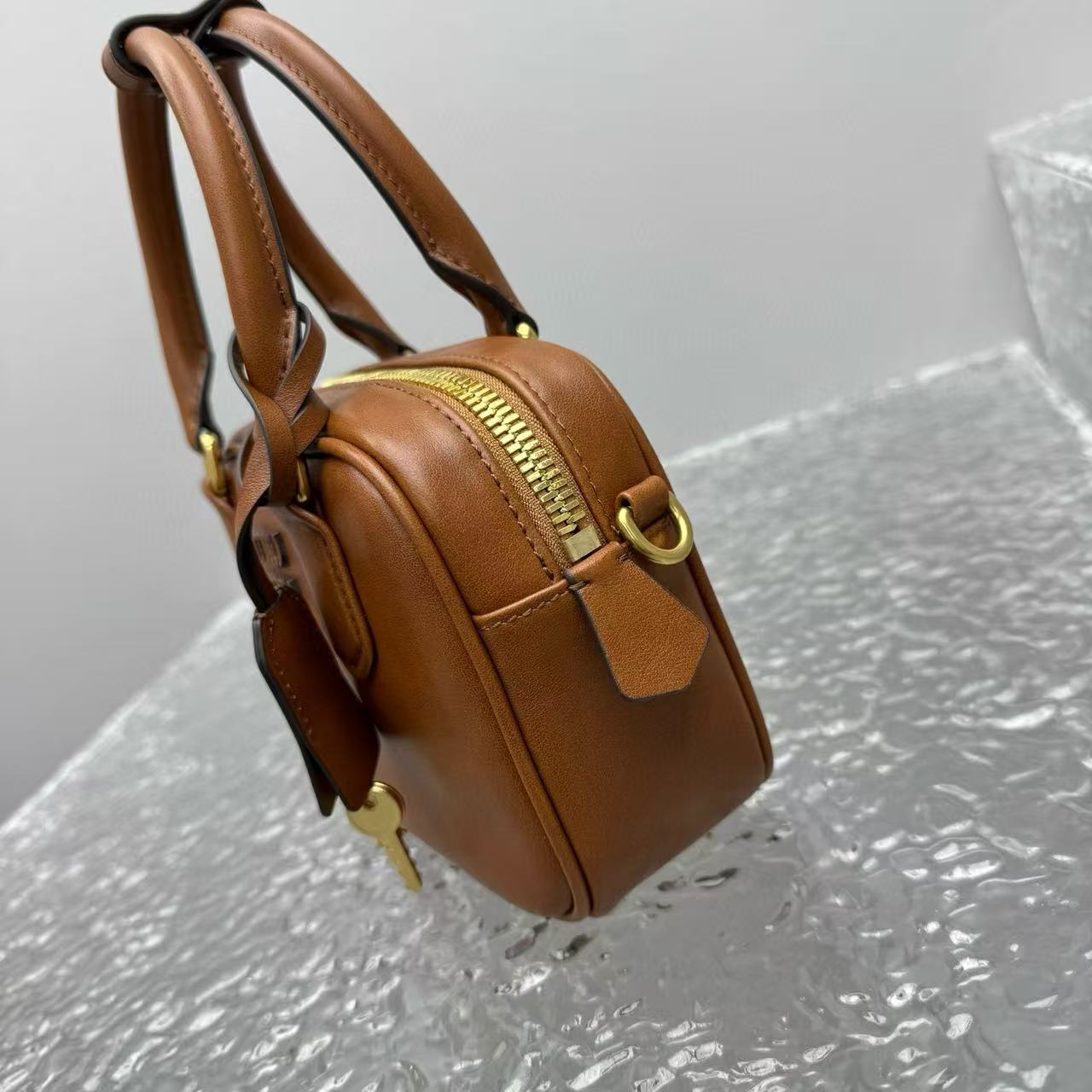 這款小方包採用焦糖色做舊皮革,質感細膩且帶有復古光澤。經過特殊處理的原廠皮革不僅耐用,還充滿高級質感,超A的設計令人無法抗拒。焦糖棕色調溫暖又百搭,完美融入秋冬穿搭,散發低調奢華的老錢風。