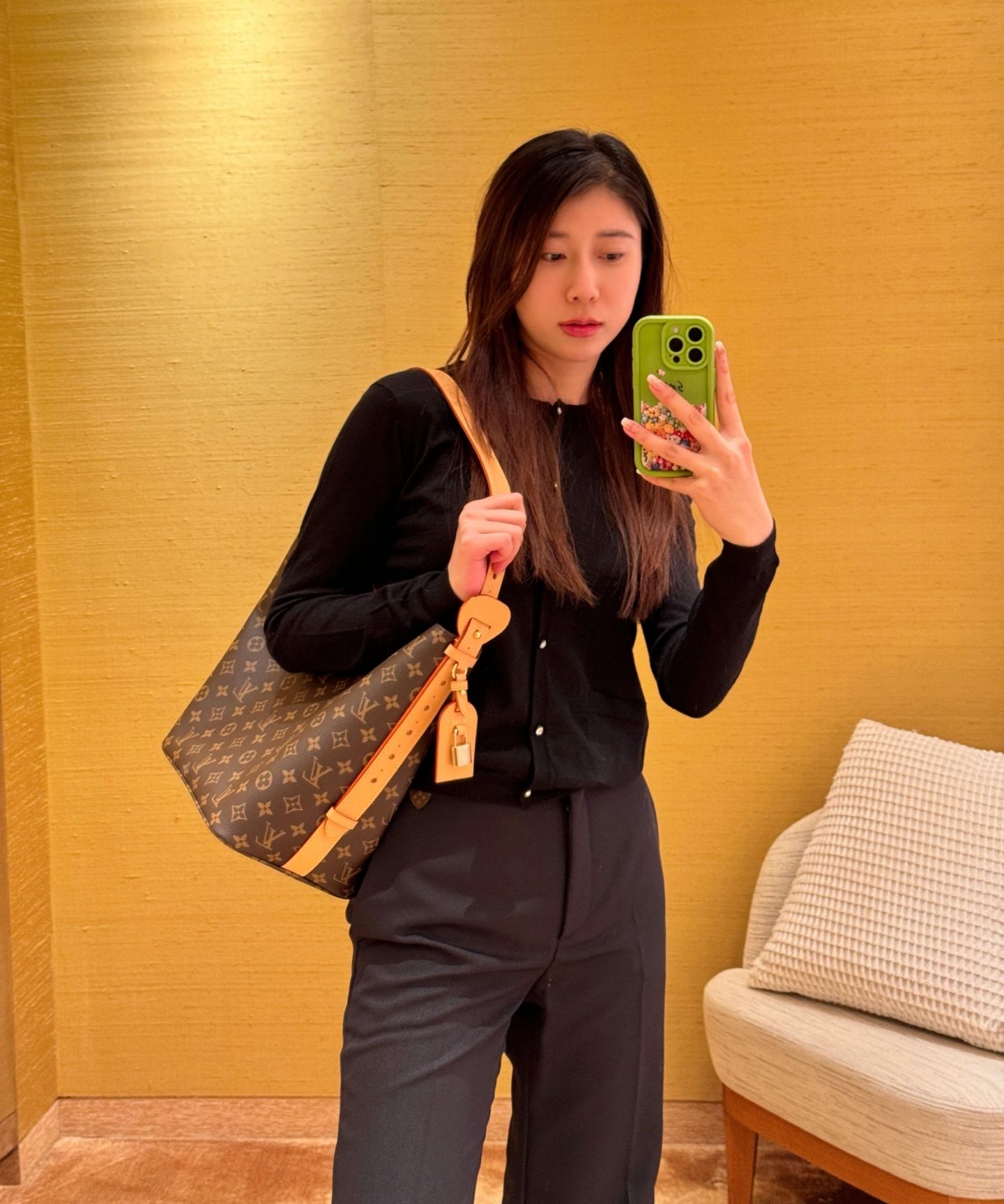 選用經典老花設計,搭配俐落大方的輪廓,無論單肩、斜挎還是手提,都能展現不同氛圍。大號尺寸少了些甜美的可愛感,但多了一份瀟灑俐落的帥氣感,尤其單肩或斜挎時更顯酷感與不羈氣息。