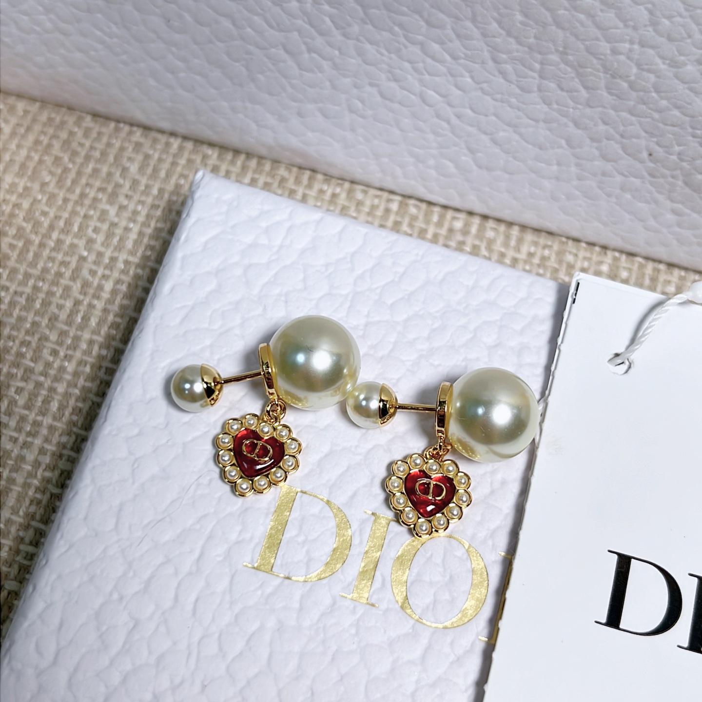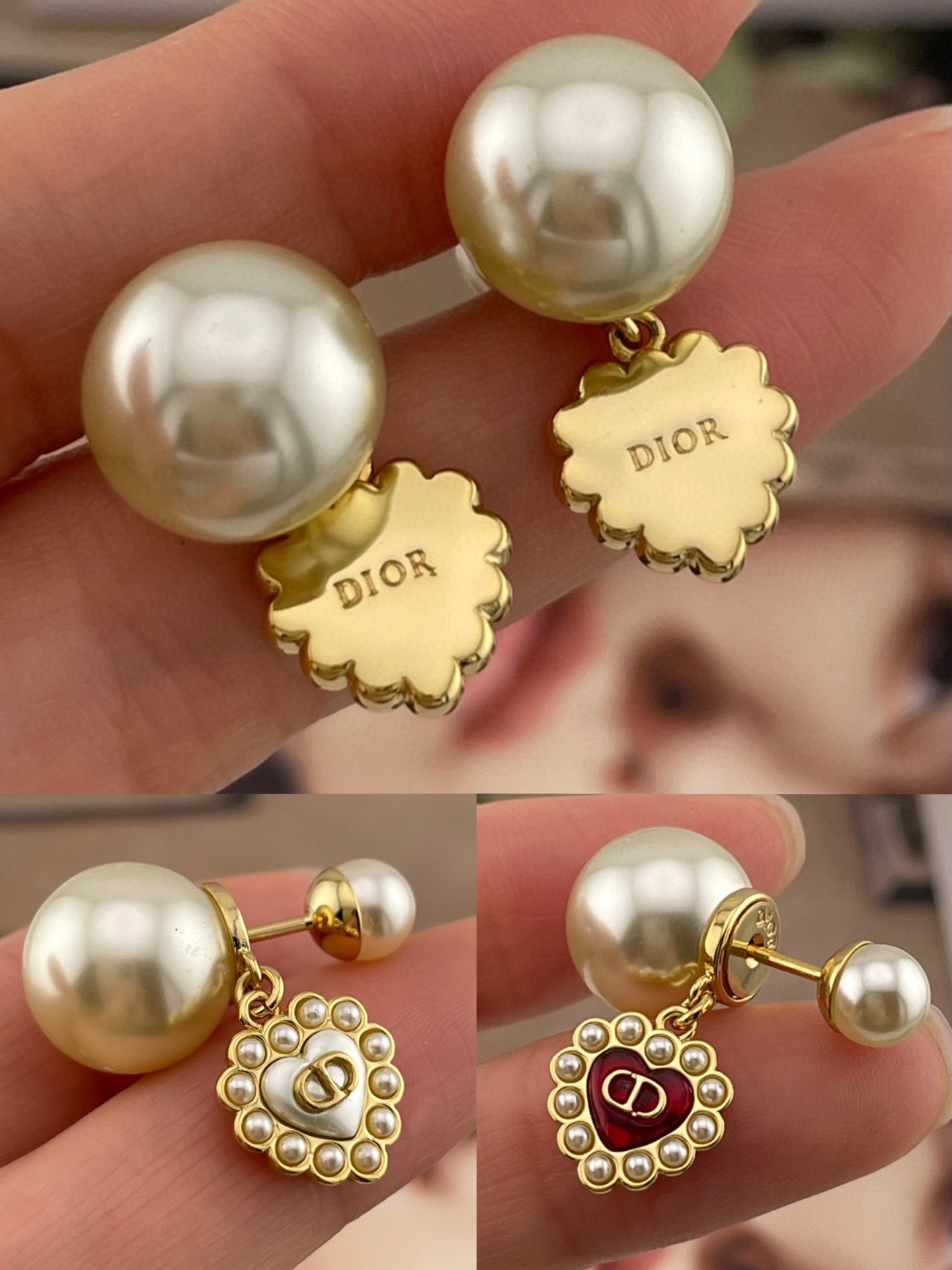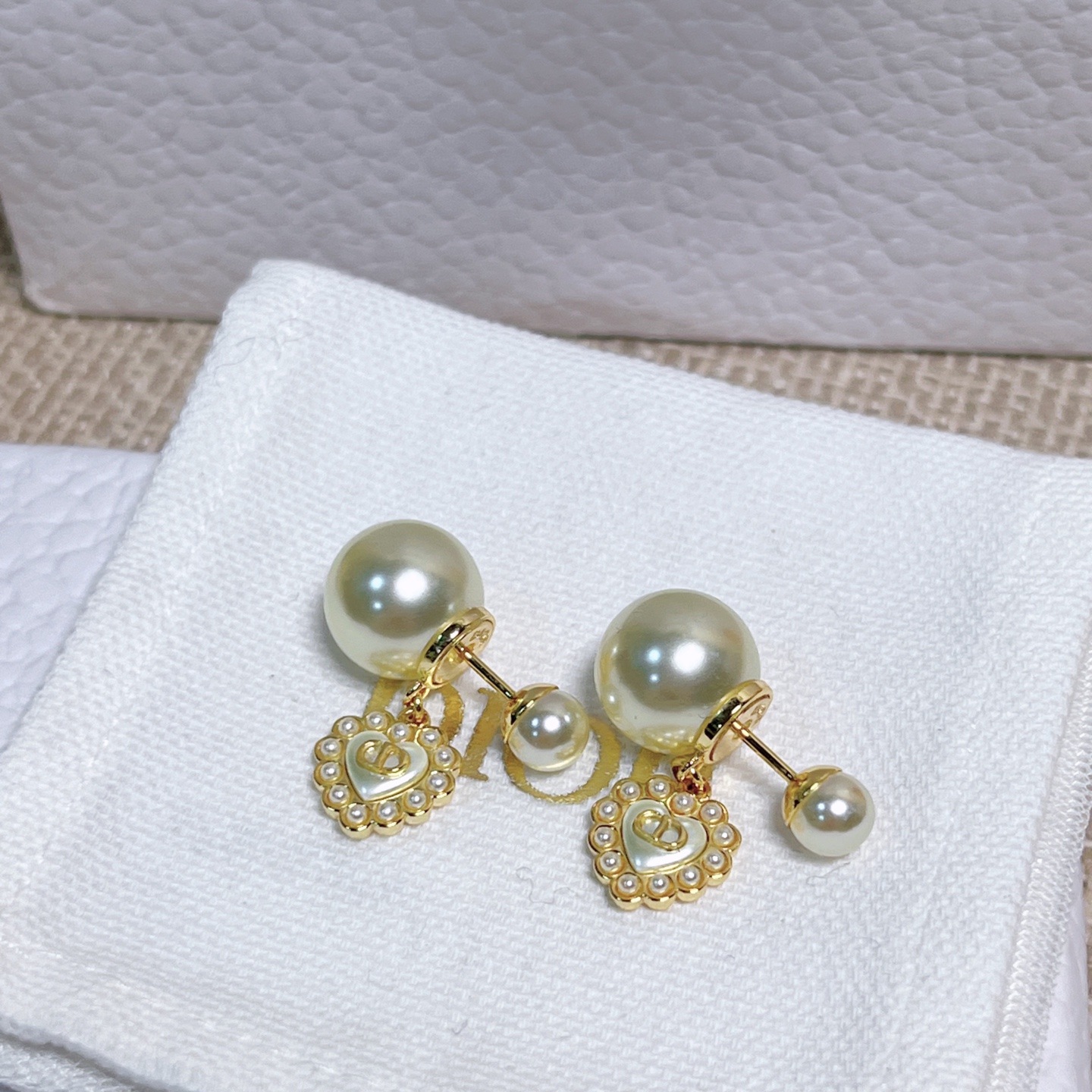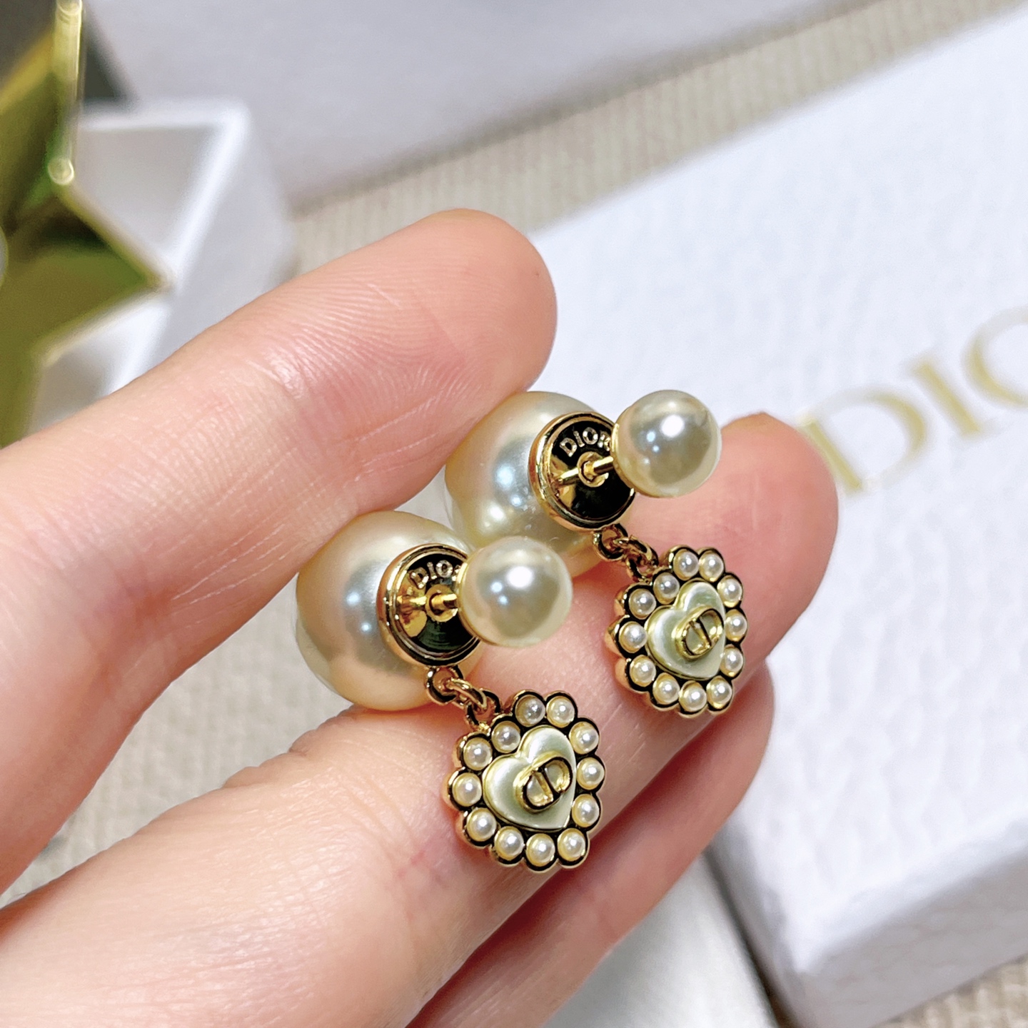 2025七夕限定 Dior 圍珠愛心雙珠耳釘 精品 高仿