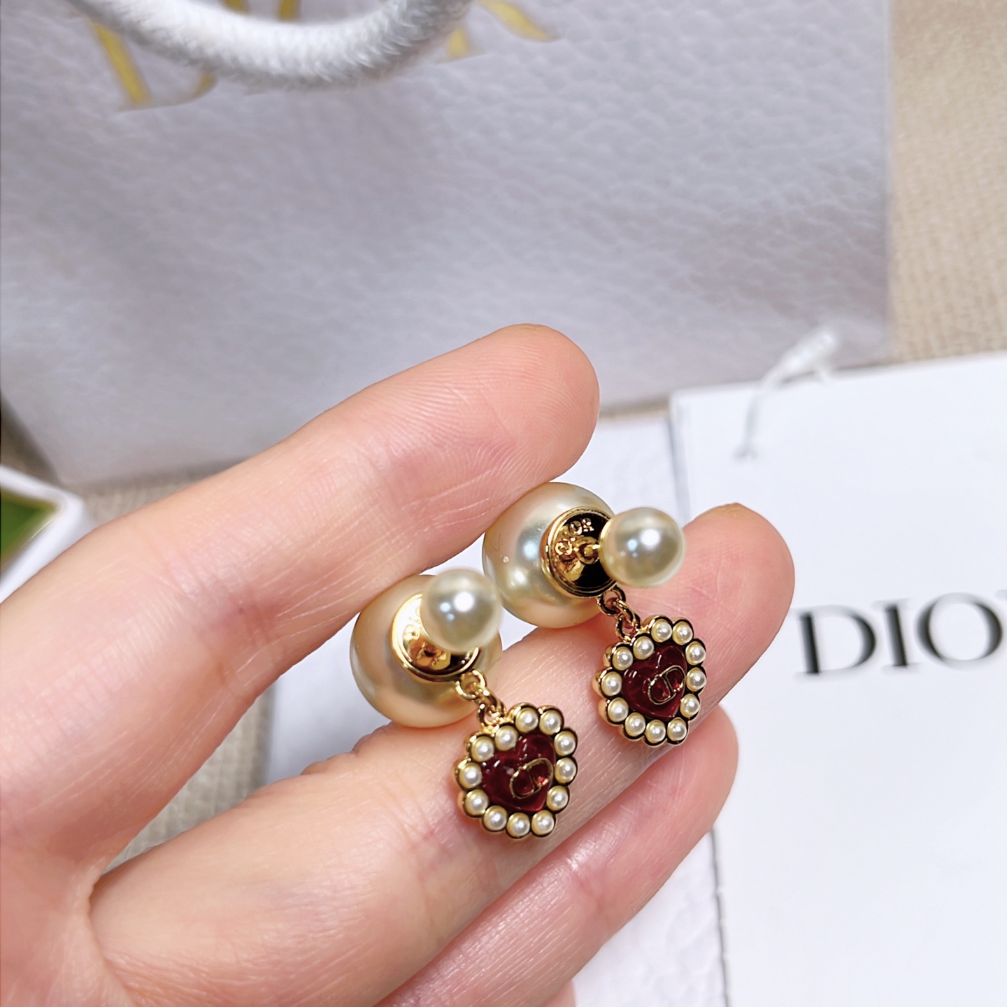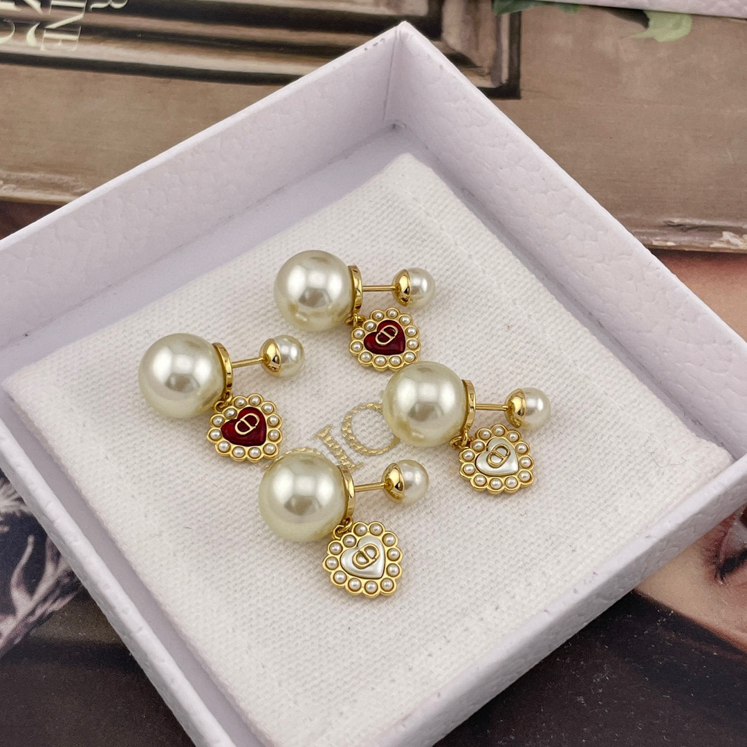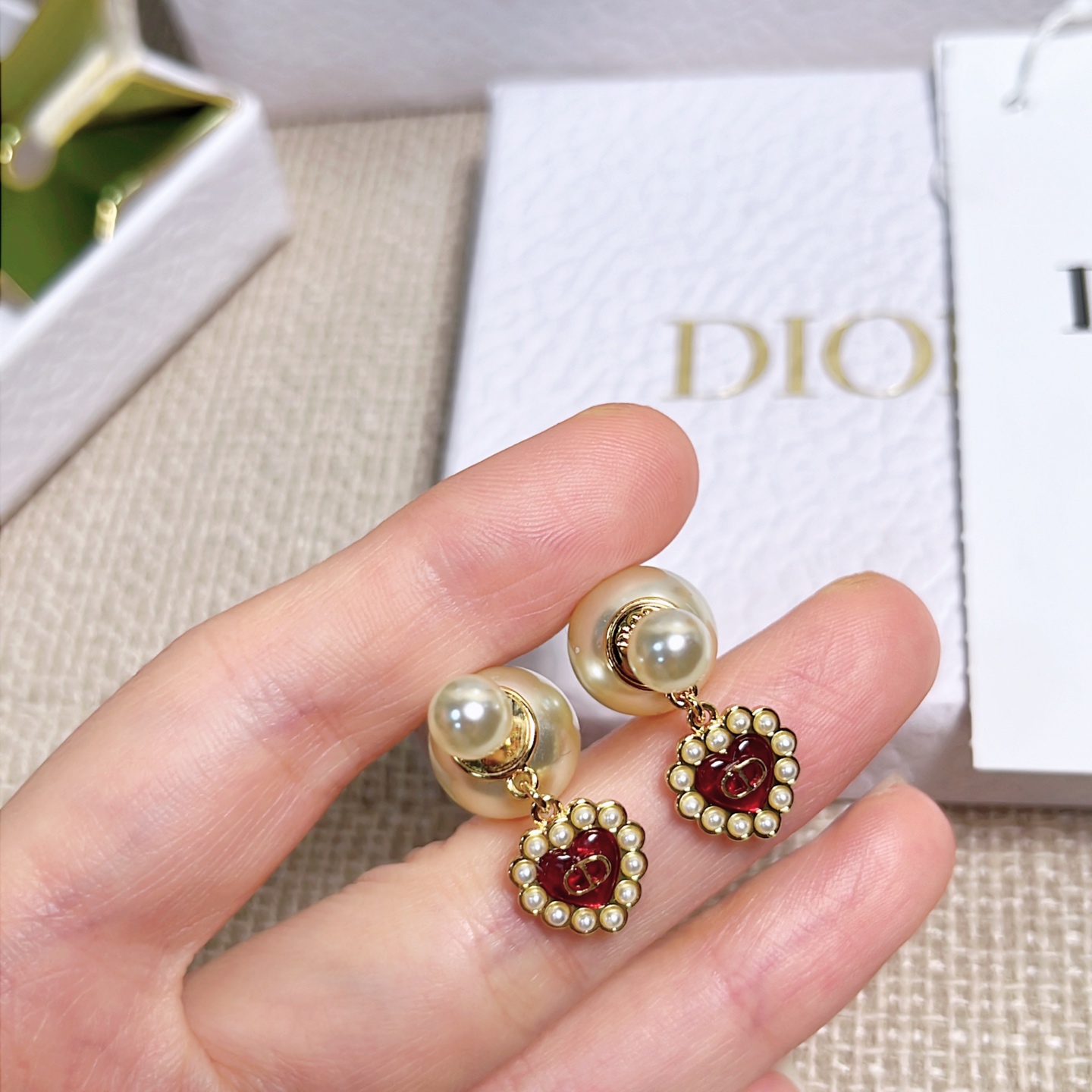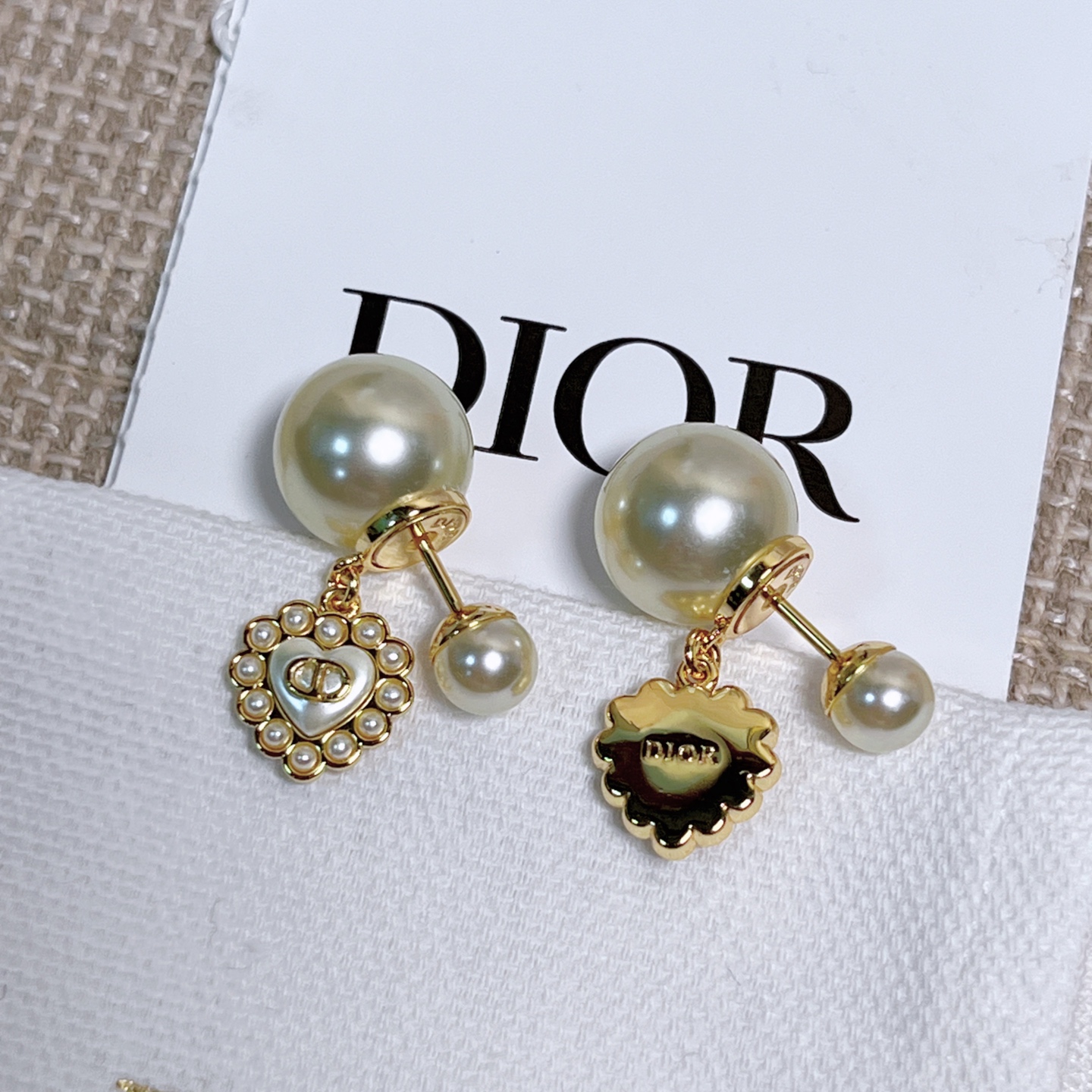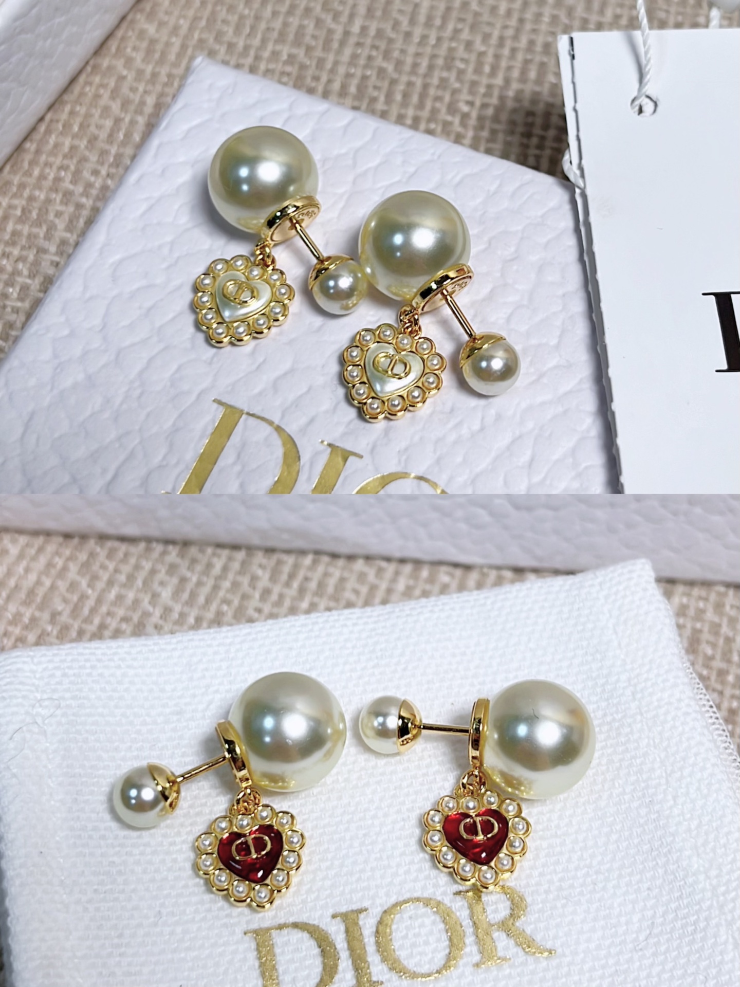 2025七夕限定 Dior 圍珠愛心雙珠耳釘 精品 高仿