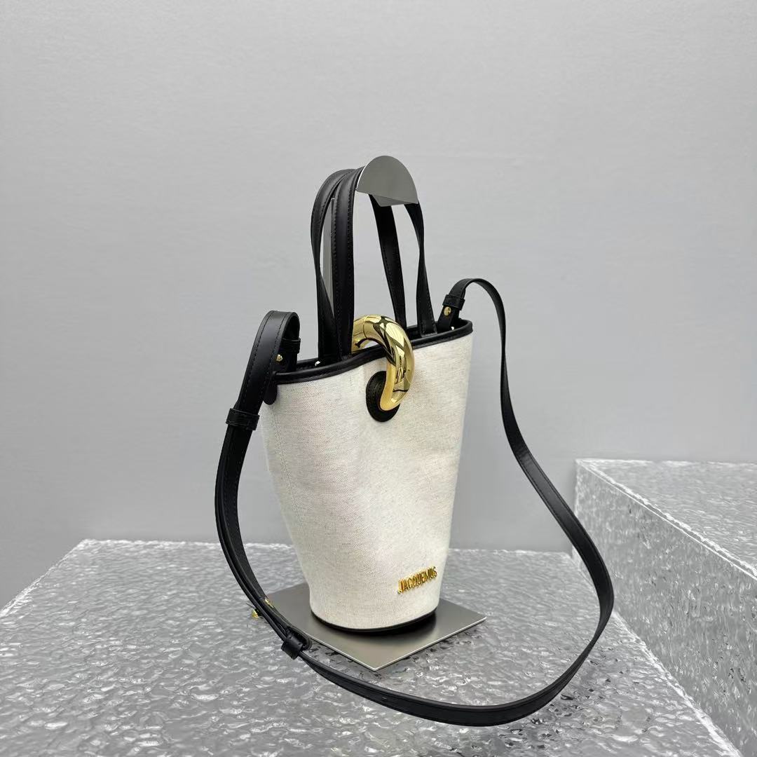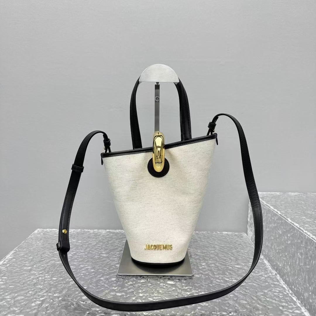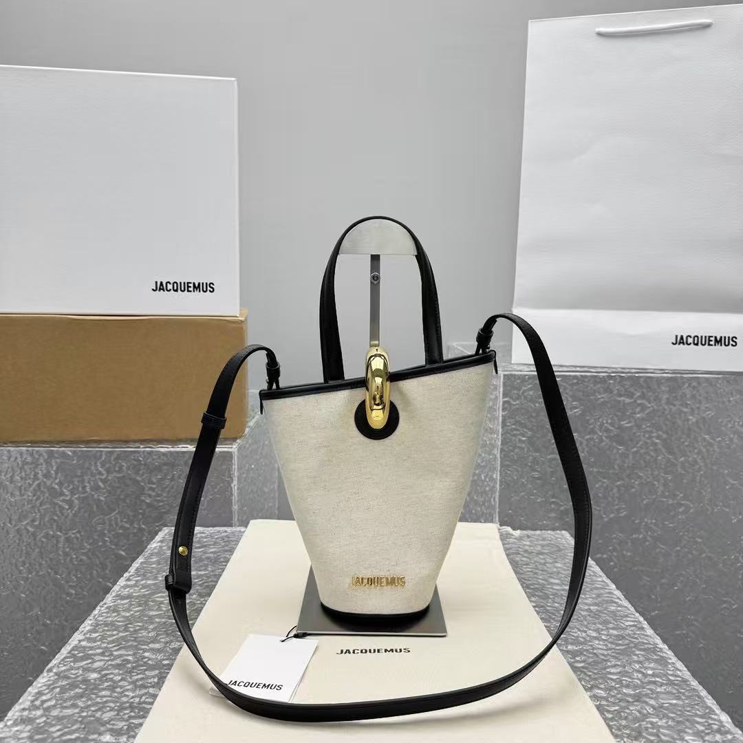 雙十一重磅福利款-Jacquemus Le Petit Bambo金扣帆布手提包(奢侈品, 精品)