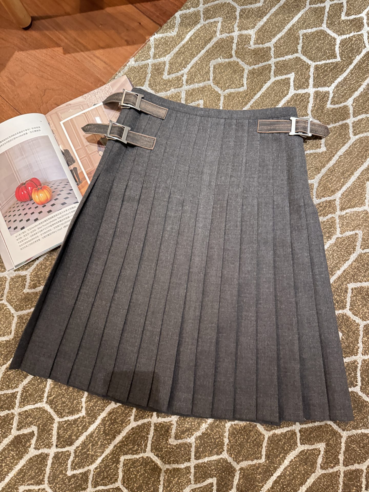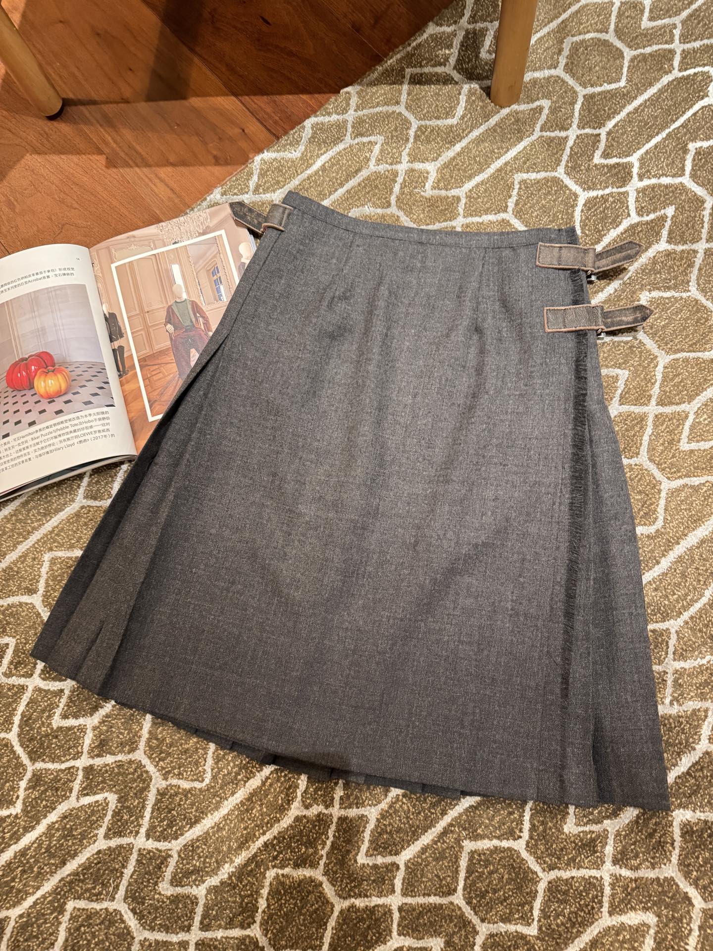 整體版型微A字、層次自然,隨步伐輕輕搖曳時,百褶線條超有節奏感,細節質感拉滿。腰部皮扣設計採用定製的小羊皮做舊處理,低調中又藏著高級氣息,完美平衡了復古與現代。