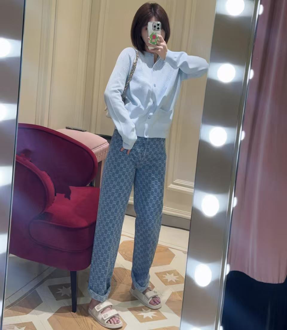 這條牛仔褲以標誌性的老花提花設計,融合復古與現代奢華感,完美展現品牌細膩工藝。不管你是街頭潮人還是質感穿搭控,這條褲子都能為你的造型注入滿滿個性!快來一起看看它的魅力吧!