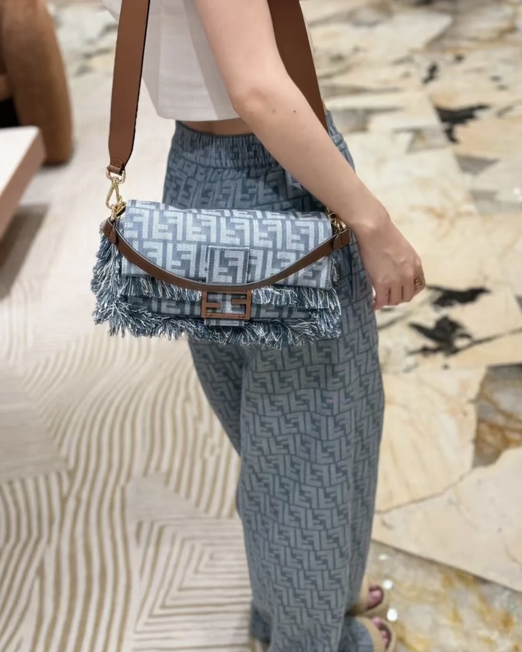 2025秋冬新品 Fendi 流蘇牛仔Baguette法棍包 精品 1:1